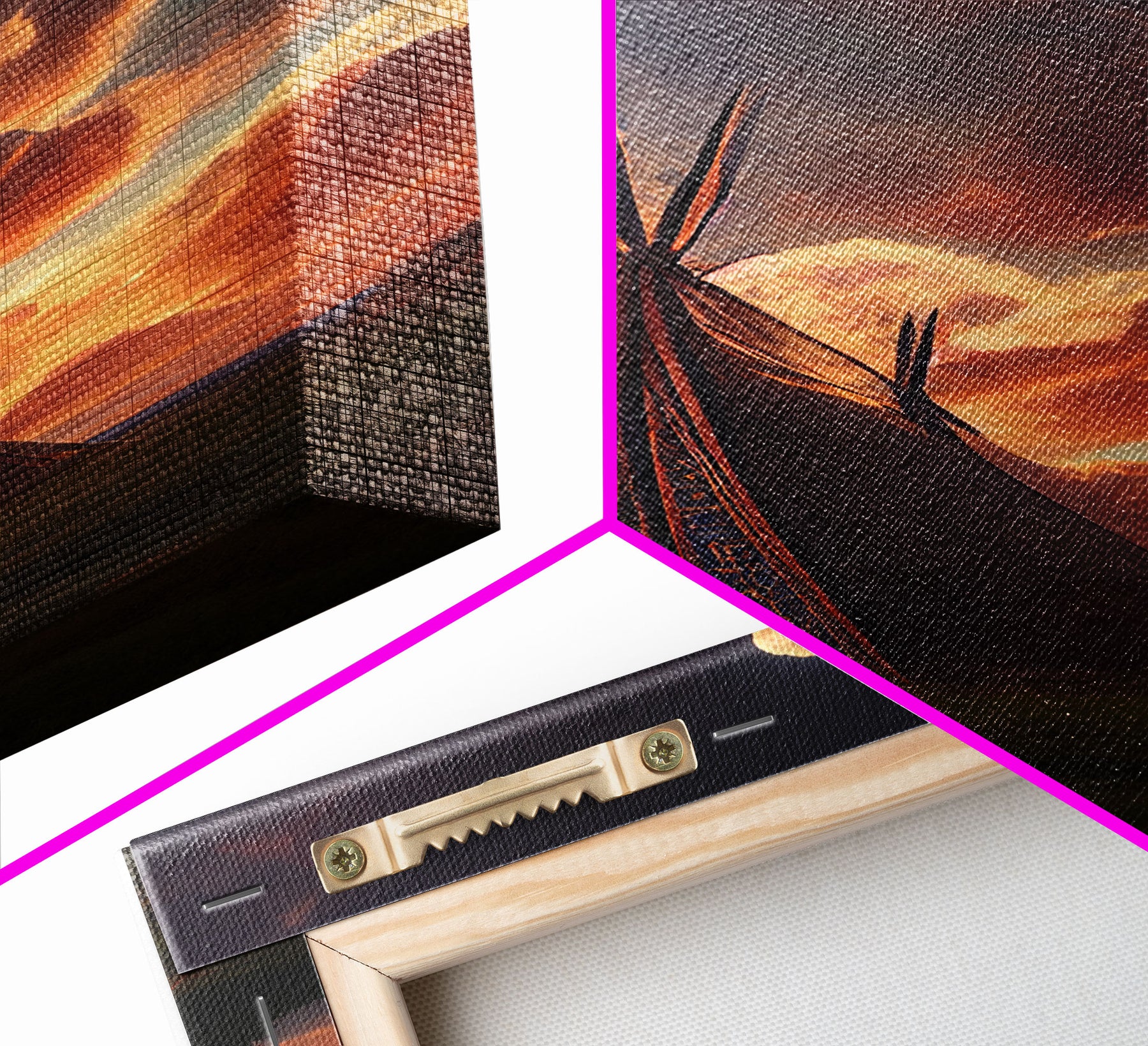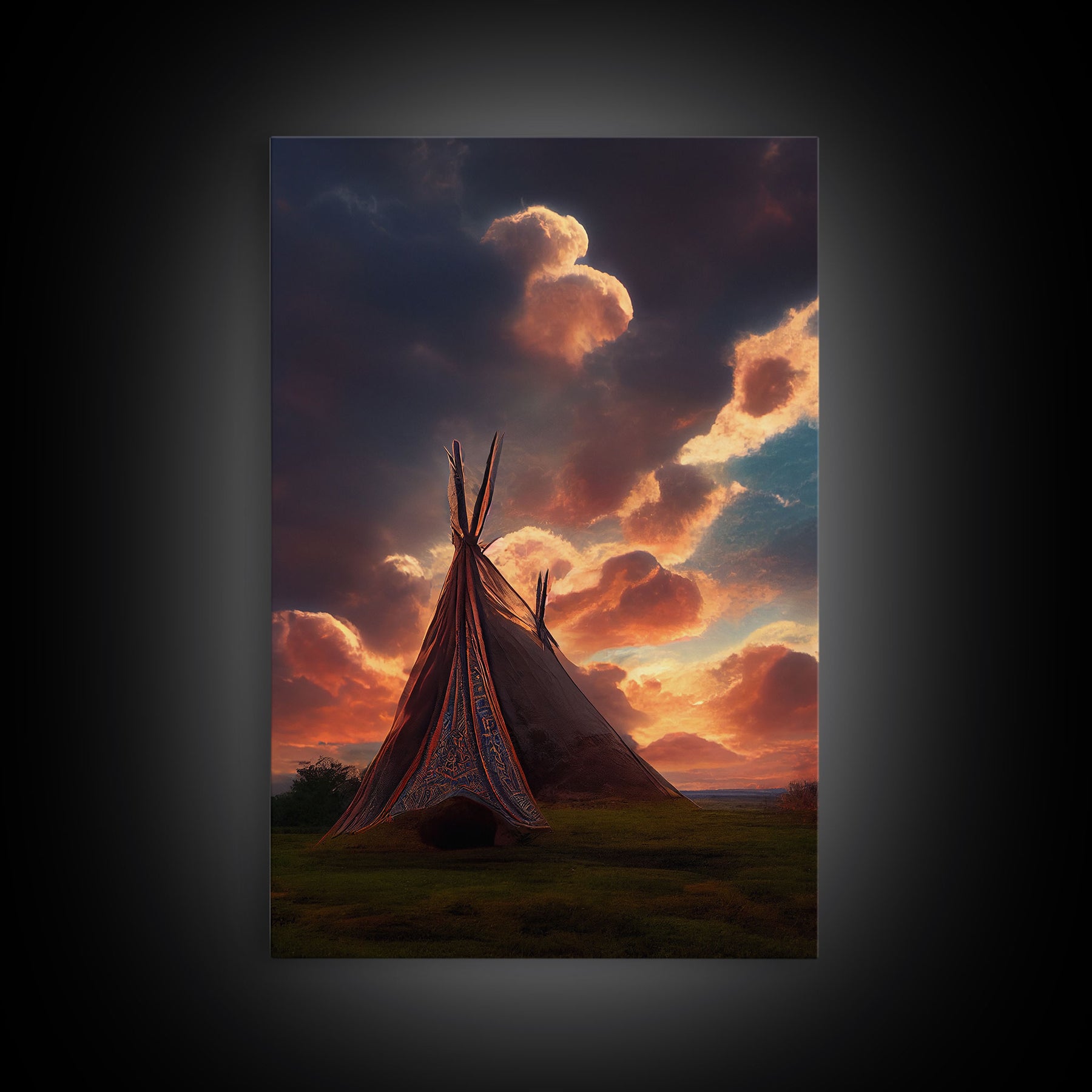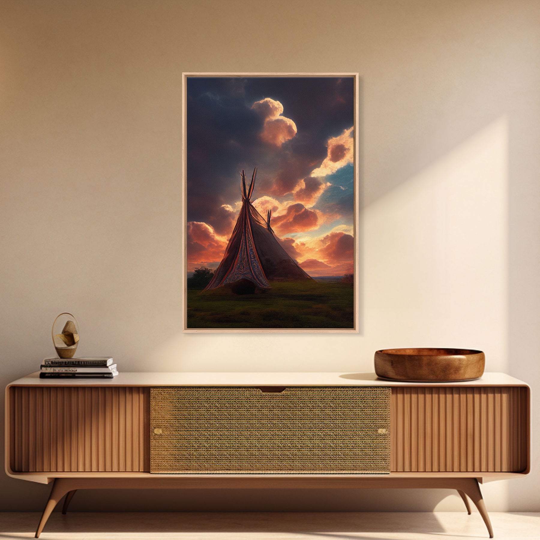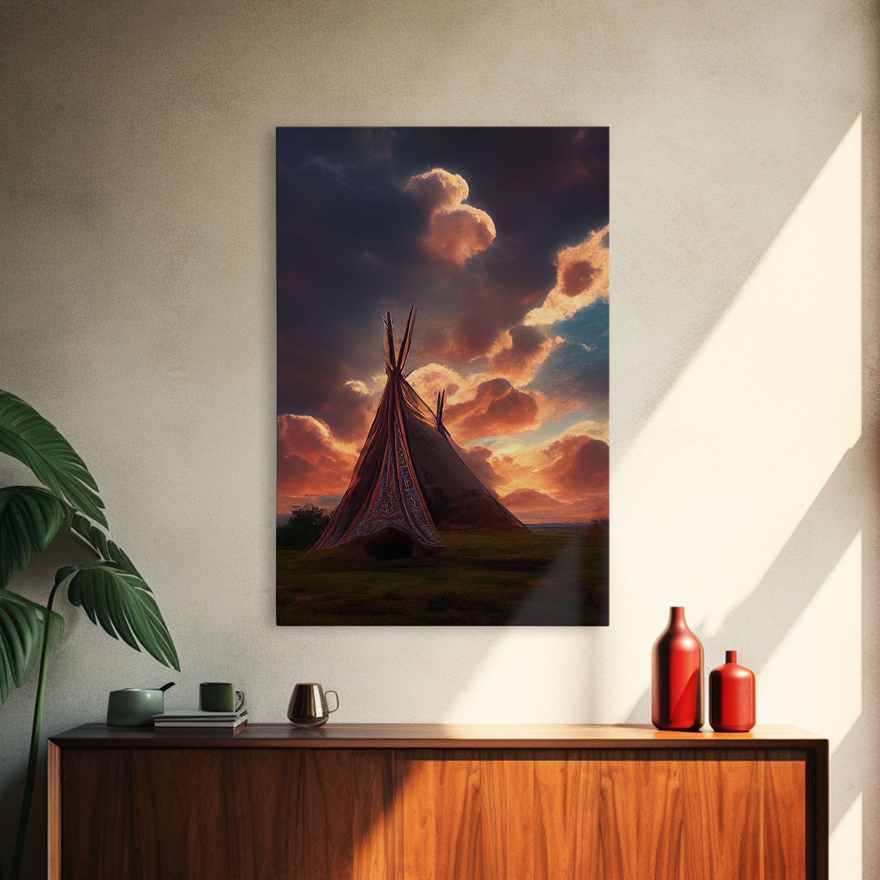 Native American Tipi Wall Art, Canvas Print, Early American Style Wall Decor