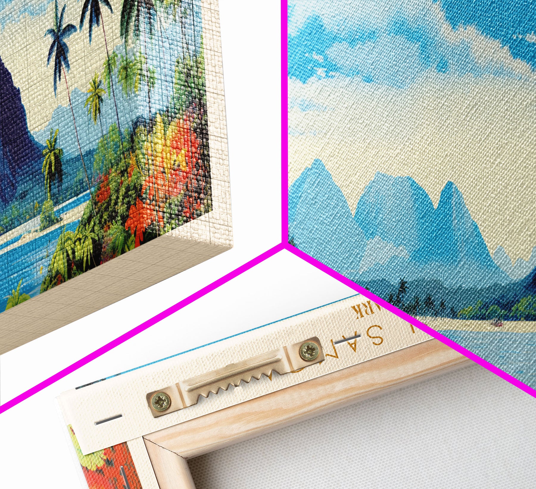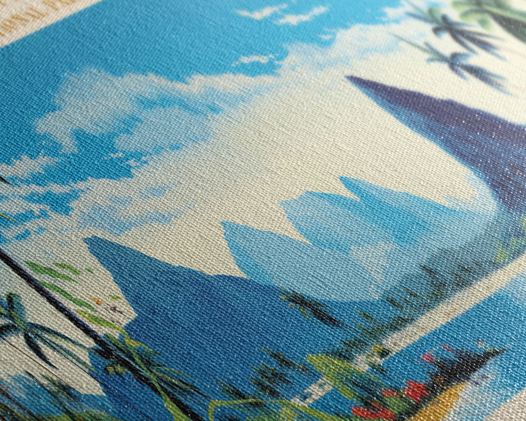 Most of our canvases are made in the USA, with the exception of canvases ordered with the light oak unstained frames, and any large canvases (24x48, 30x60, 16x48 and 20x60) ordered WITH a frame. These are temporarily made in and shipped from Europe, while we try to find a more consistent supplier in the USA.