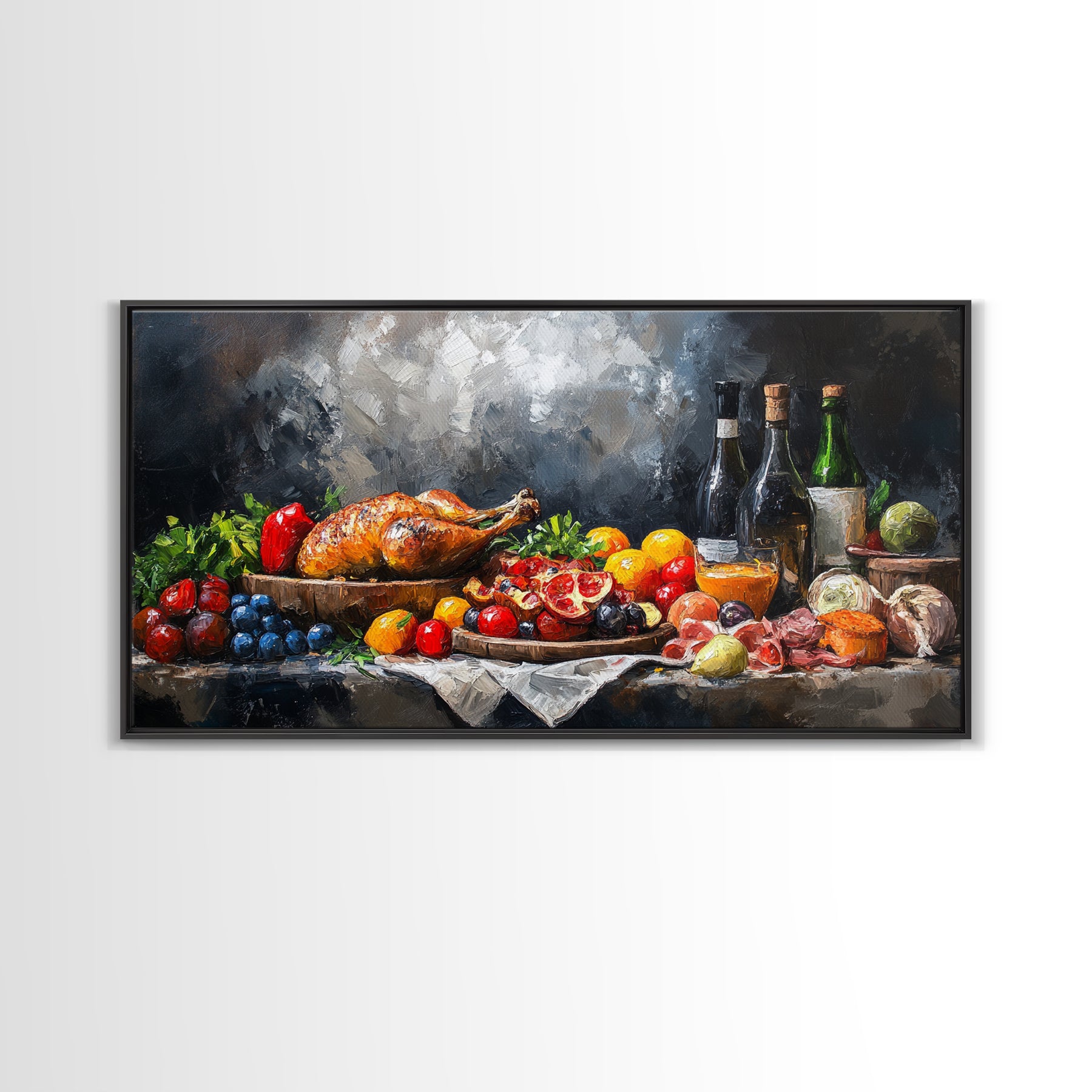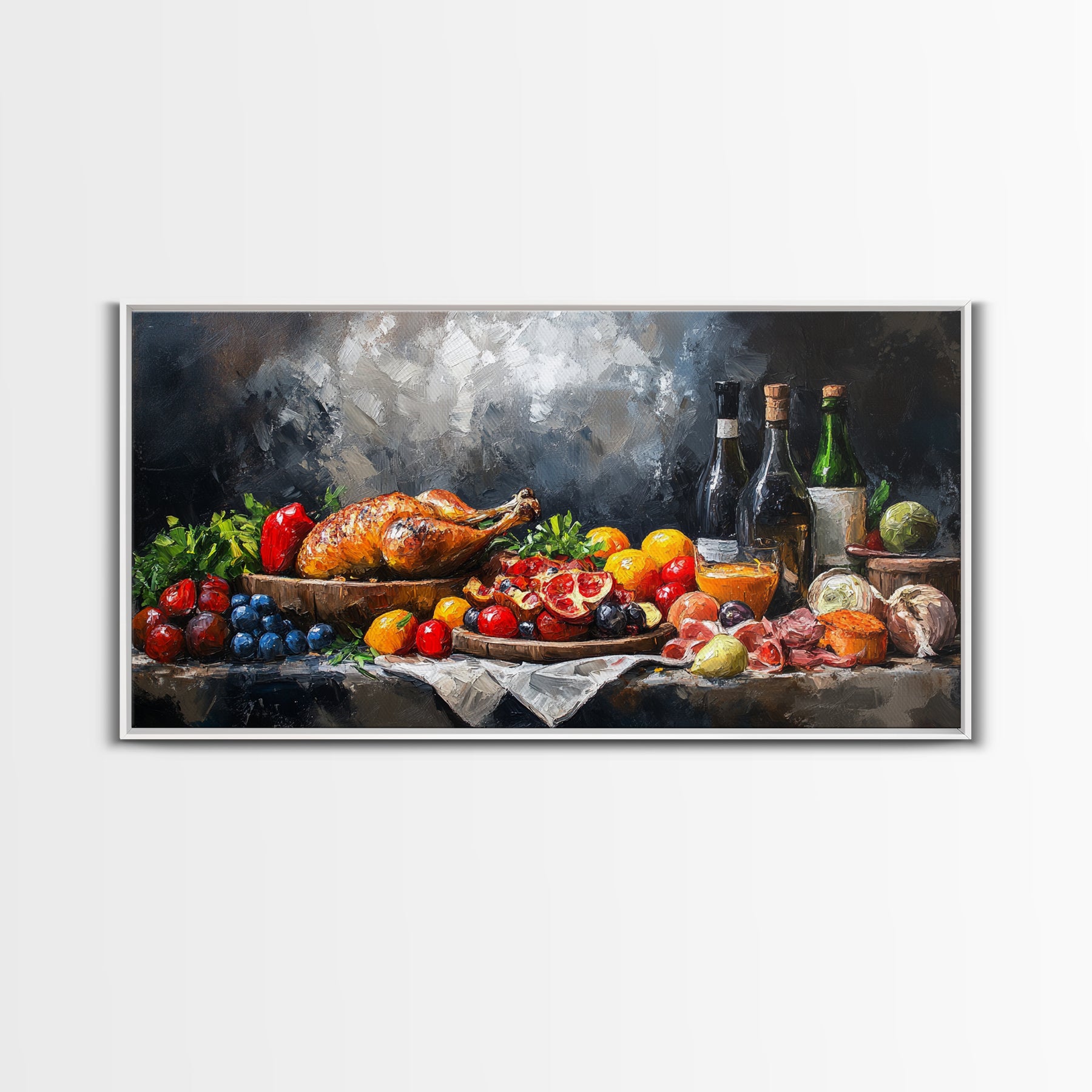 A Christmas Feast Canvas Print, Kitchen Wall Art, Thanksgiving Decor, Thanksgiving Turkey Painting, Food Painting, Diving Room Art