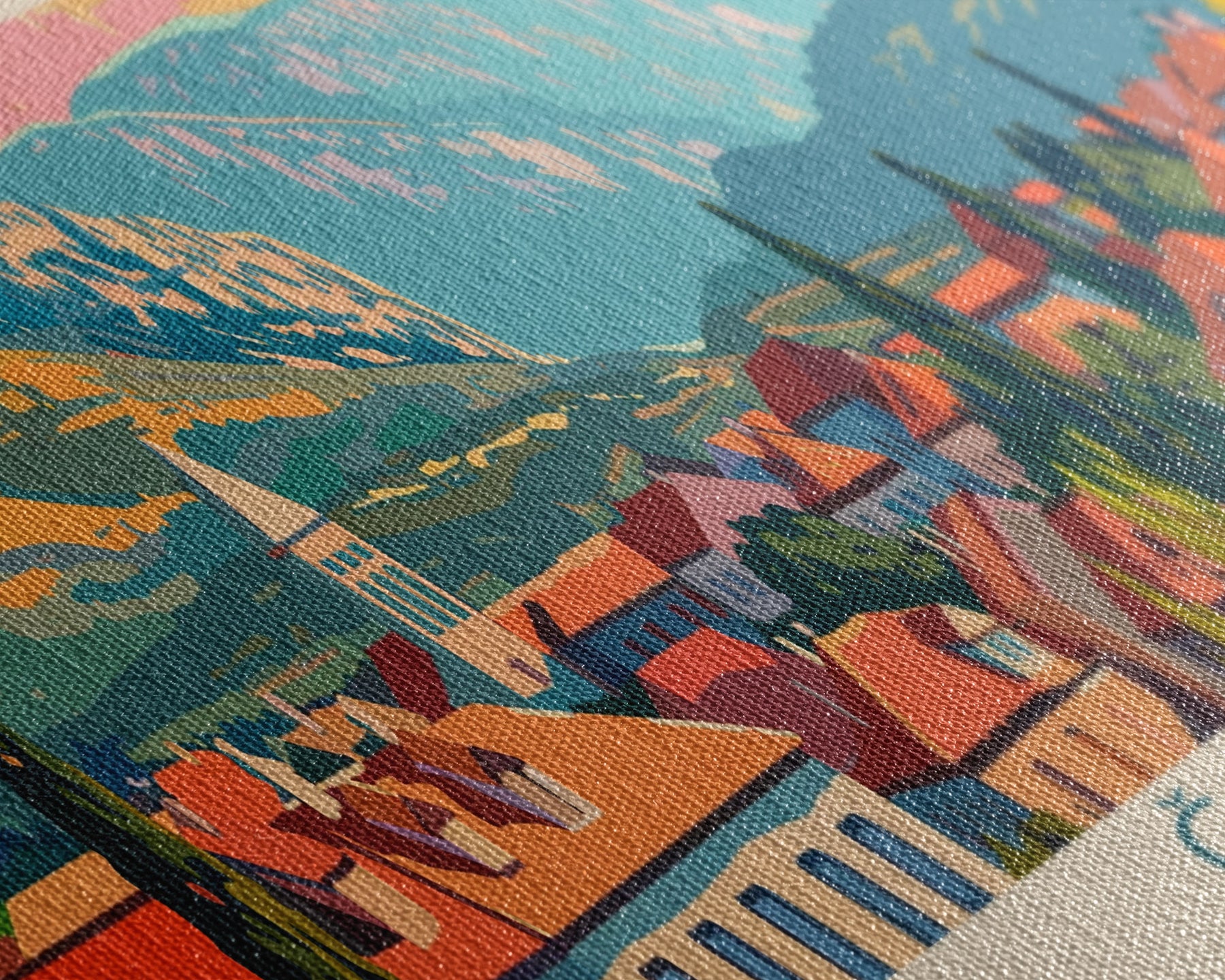 Most of our canvases are made in the USA, with the exception of canvases ordered with the light oak unstained frames, and any large canvases (24x48, 30x60, 16x48 and 20x60) ordered WITH a frame. These are temporarily made in and shipped from Europe, while we try to find a more consistent supplier in the USA.
