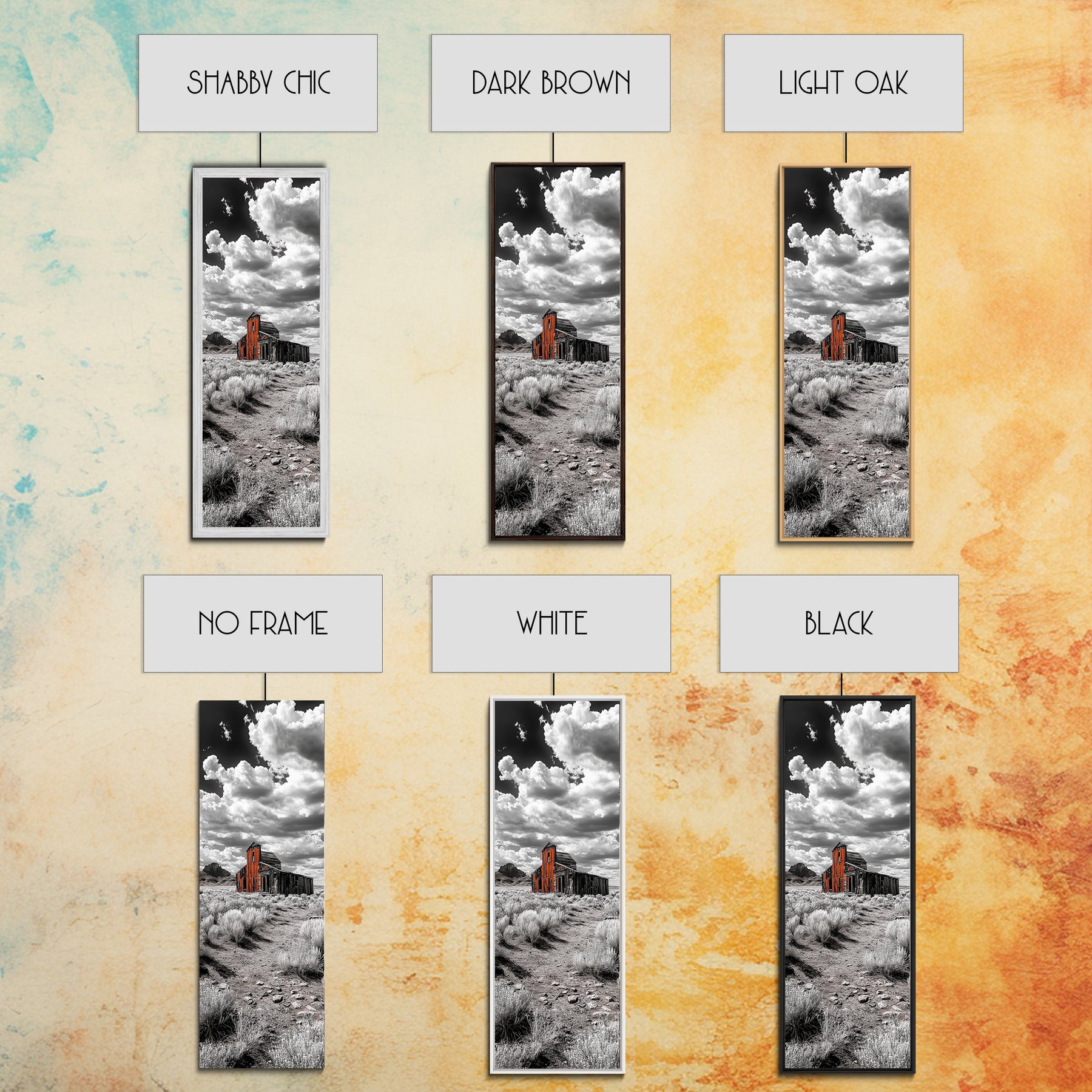 *Optional frames add a total of 1.5 inches to each dimension, for example a 10x20 canvas with a frame will be 11.5 by 21.5 inches total. All framed canvas are 1.5" total depth.
