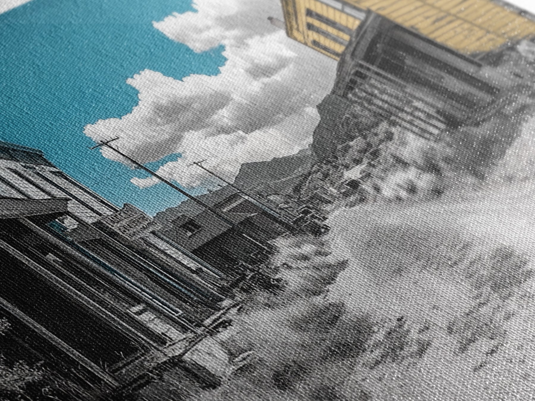 Most of our canvases are made in the USA, with the exception of canvases ordered with the light oak unstained frames, and any large canvases (24x48, 30x60, 16x48 and 20x60) ordered WITH a frame. These are temporarily made in and shipped from Europe, while we try to find a more consistent supplier in the USA.