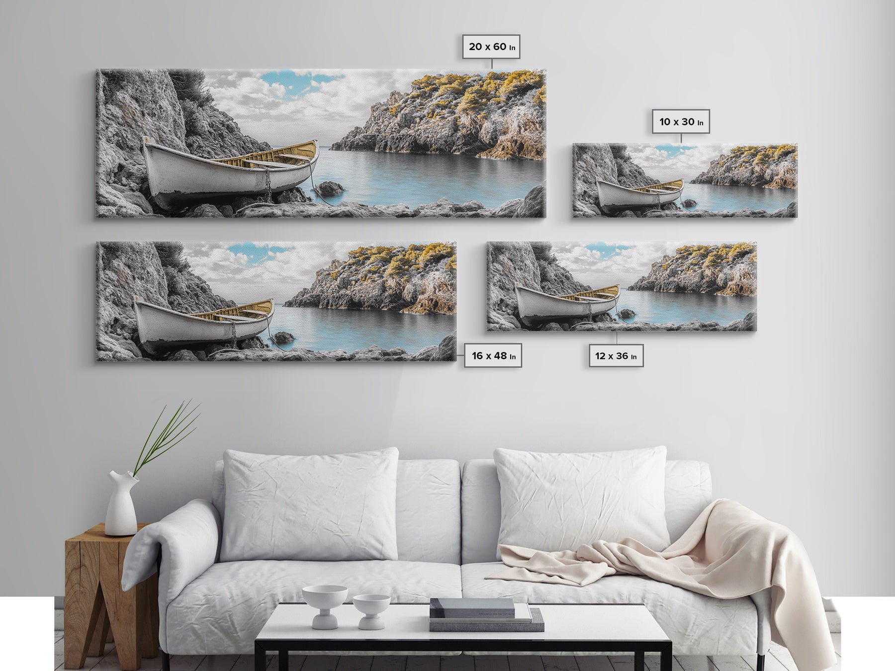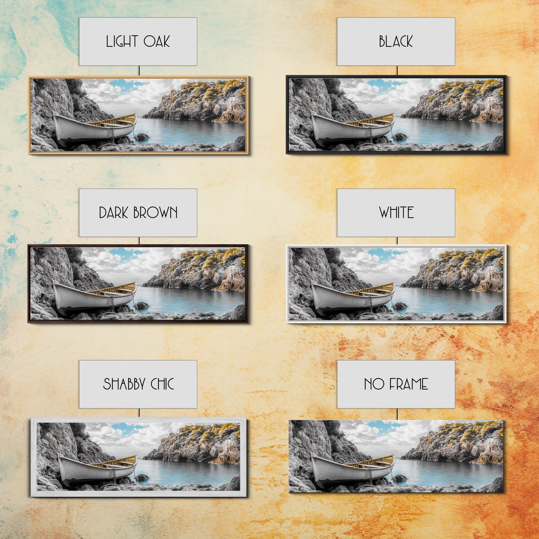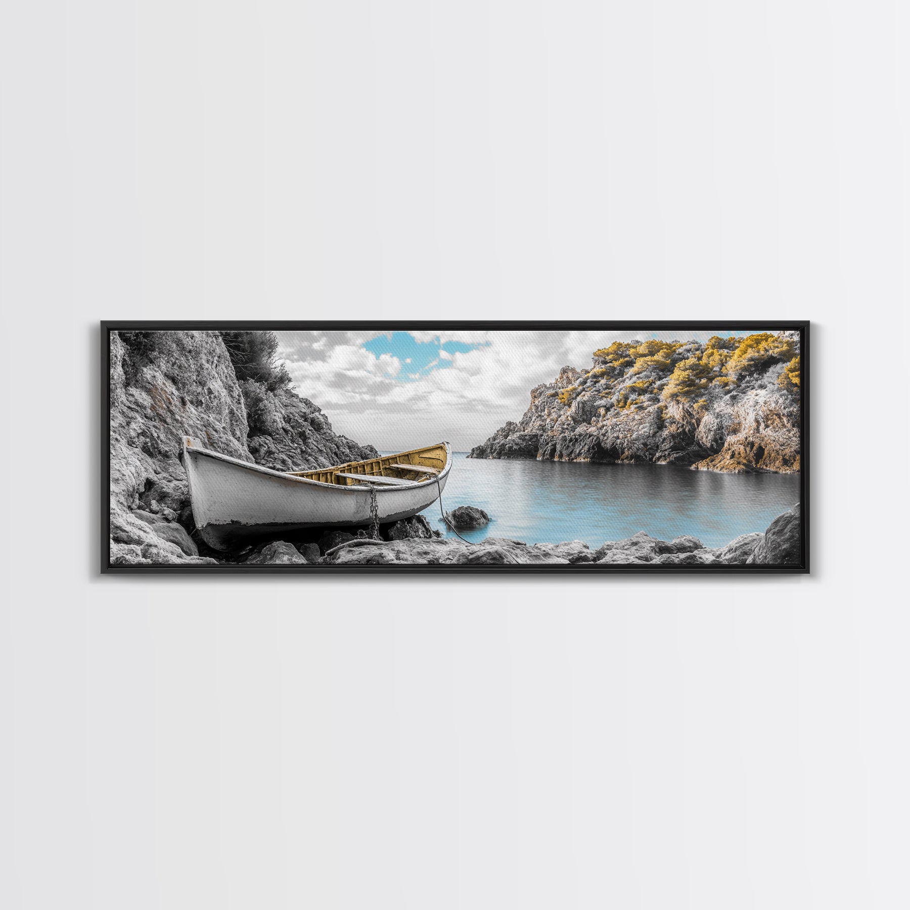 Abandoned Rowboat, Rustic Shore, Autumn Cove, Island Serenity, Framed Canvas Print, Lakehouse Decor, Coastal Wall Art, Nature Print