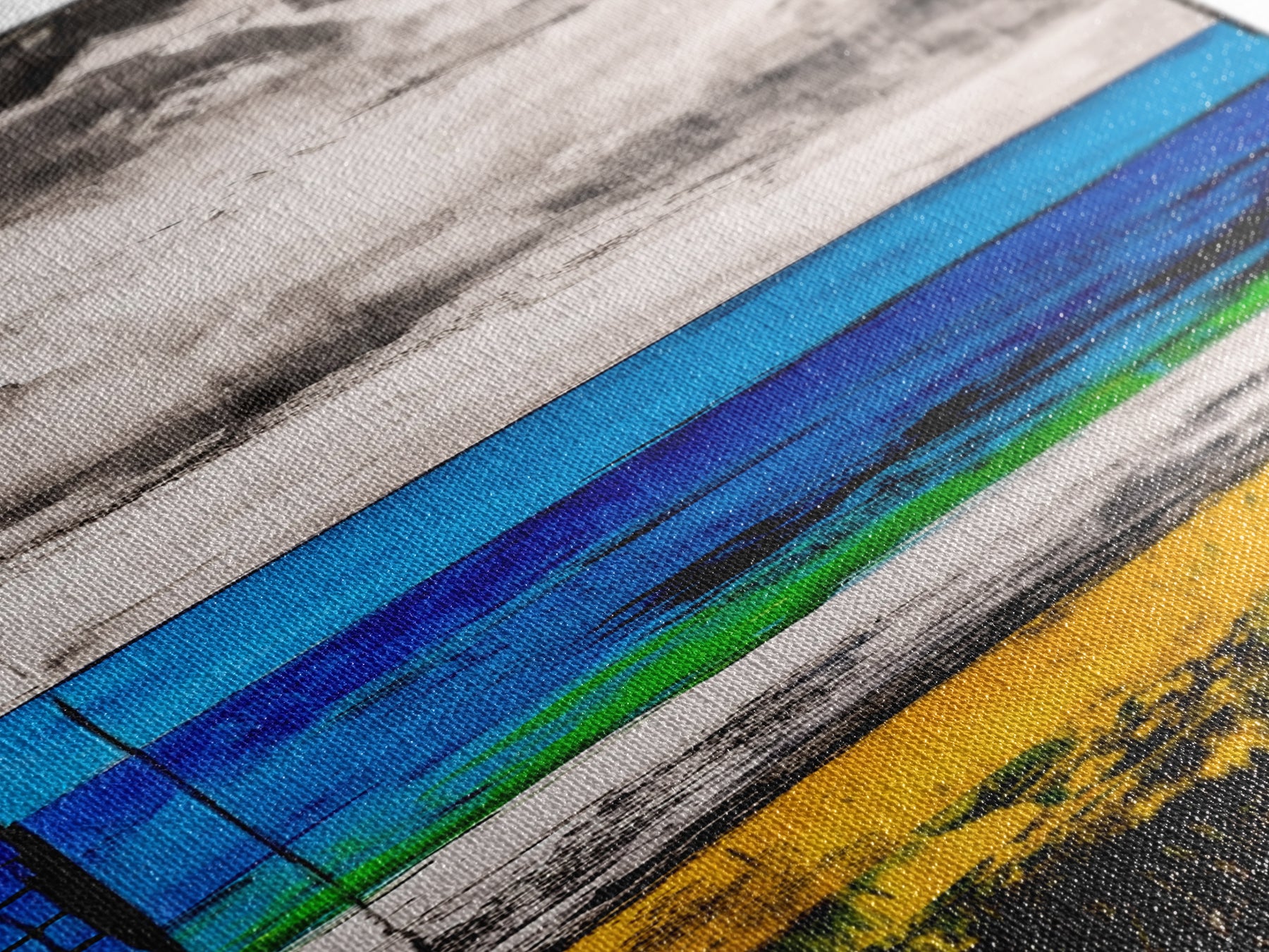 Most of our canvases are made in the USA, with the exception of canvases ordered with the light oak unstained frames, and any large canvases (24x48, 30x60, 16x48 and 20x60) ordered WITH a frame. These are temporarily made in and shipped from Europe, while we try to find a more consistent supplier in the USA.