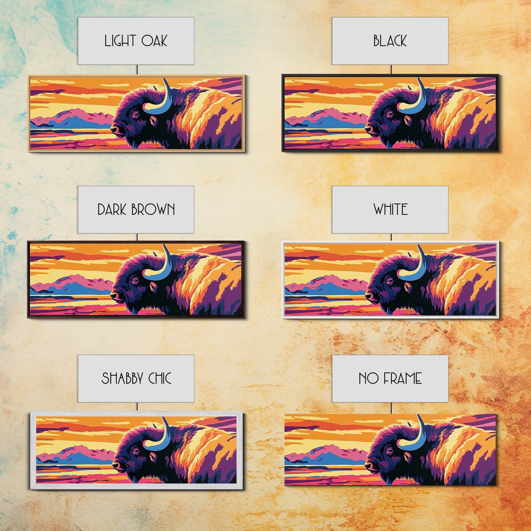 Abstract Buffalo, rustic wall art, southwestern painting, farmhouse decor, moody art, extra wide art, framed canvas print, above sofa art
