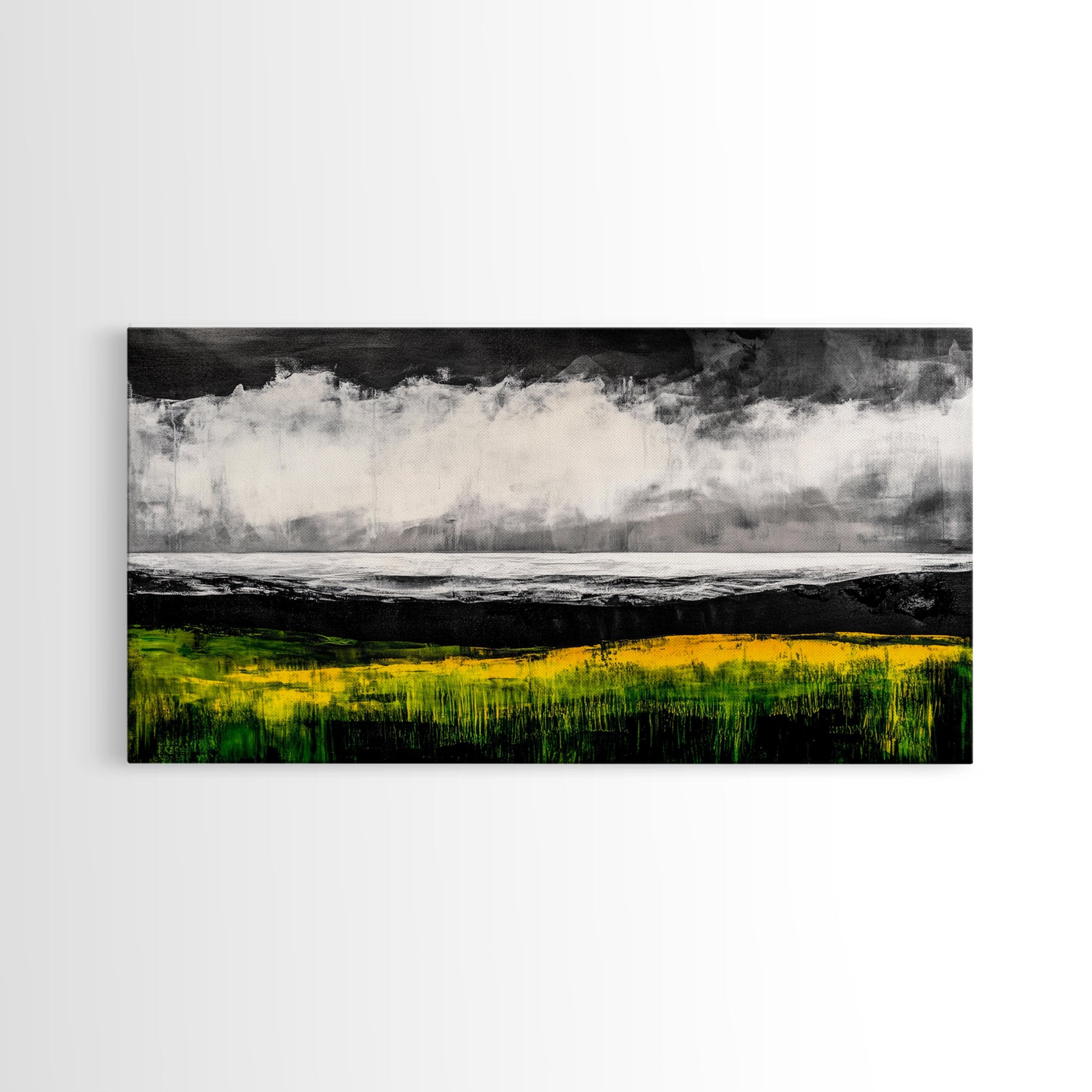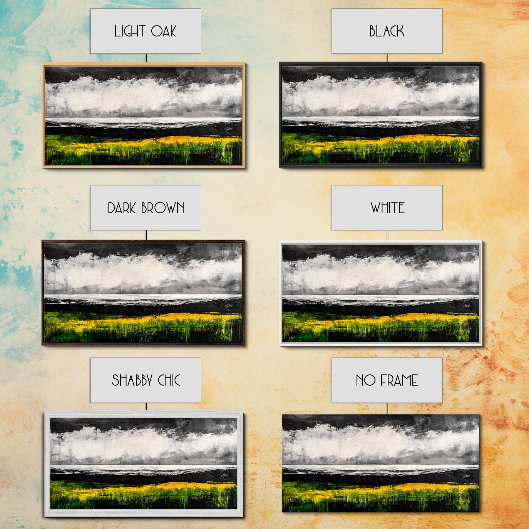 Abstract Coastal Art, Ocean Horizon, Dramatic Sky, Framed Canvas Print, Large Wall Art, Modern Living Room Decor, Beach House Art