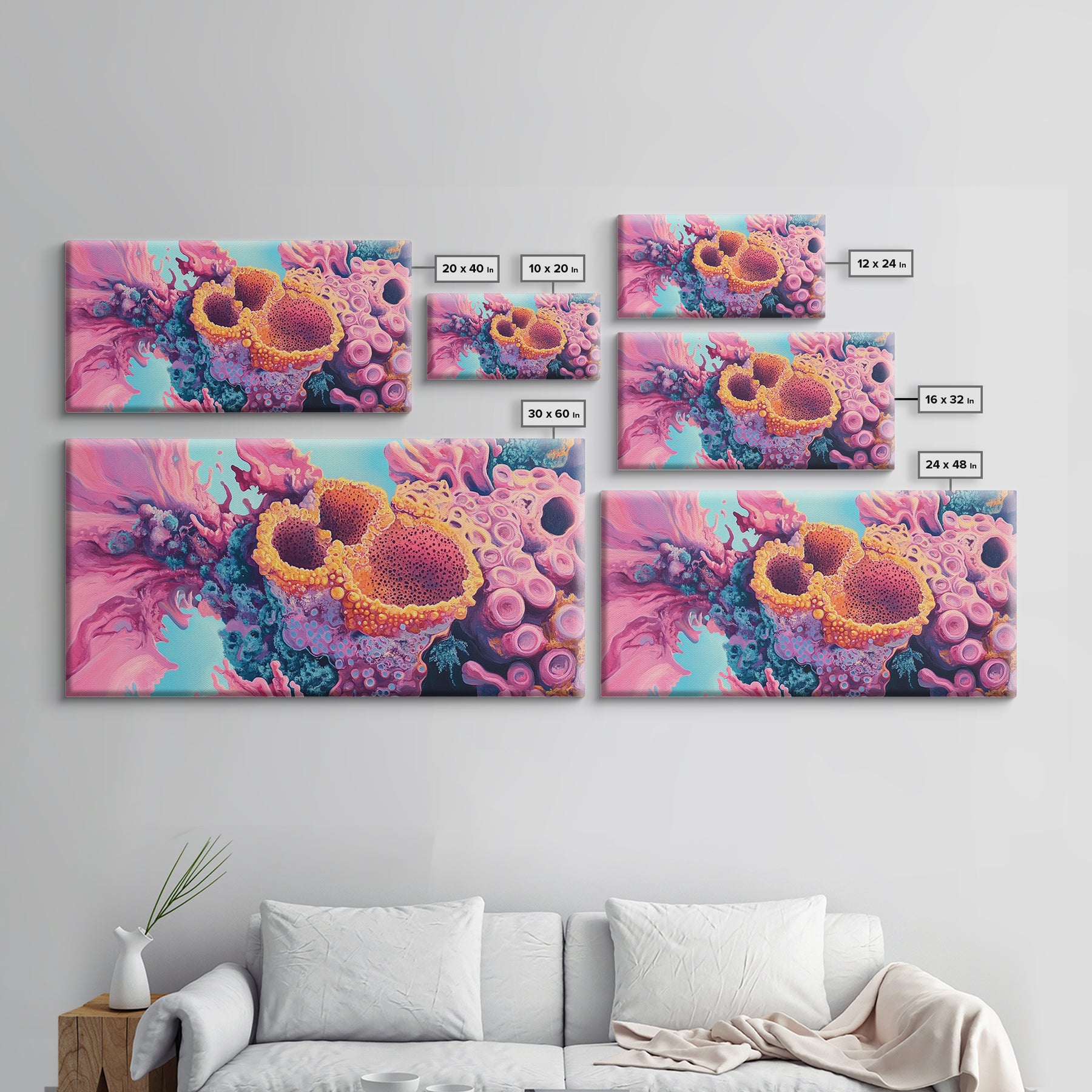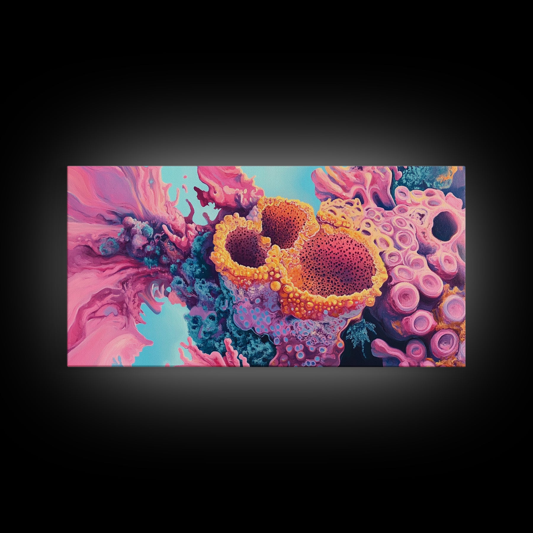Abstract Coral, pink abstract art, ocean painting, marine life art, contemporary art, blue and green wall art, Canvas Print