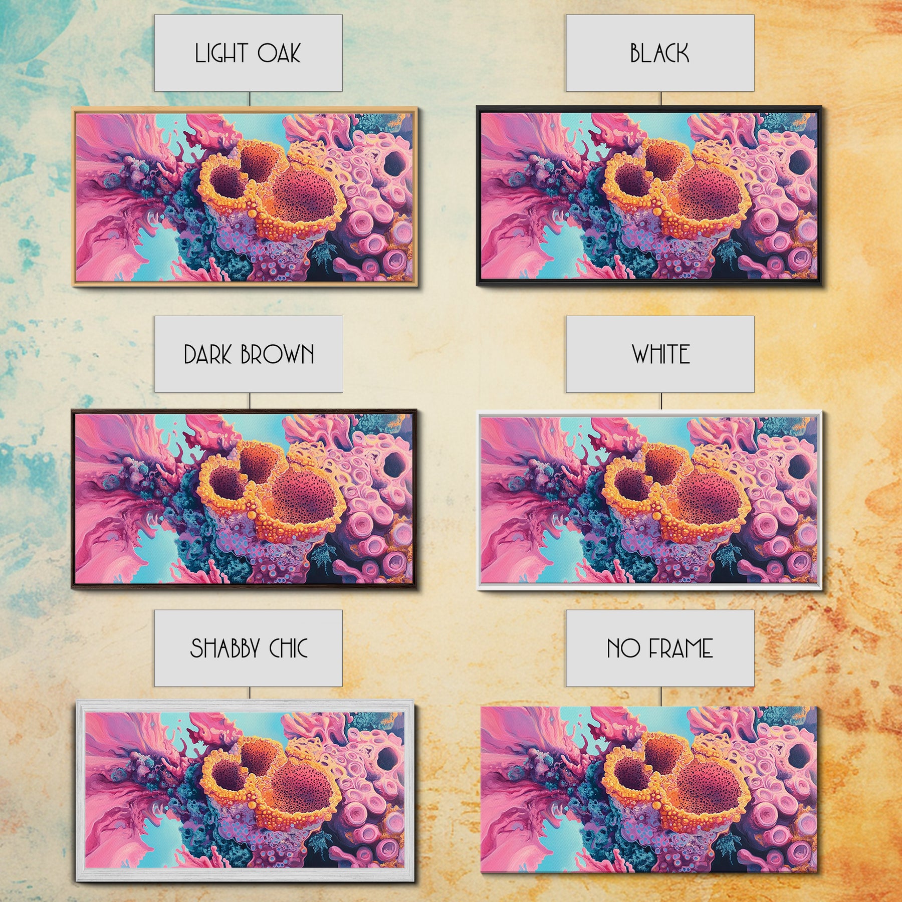 *Optional frames add a total of 1.5 inches to each dimension, for example a 10x20 canvas with a frame will be 11.5 by 21.5 inches total. All framed canvas are 1.5" total depth.
