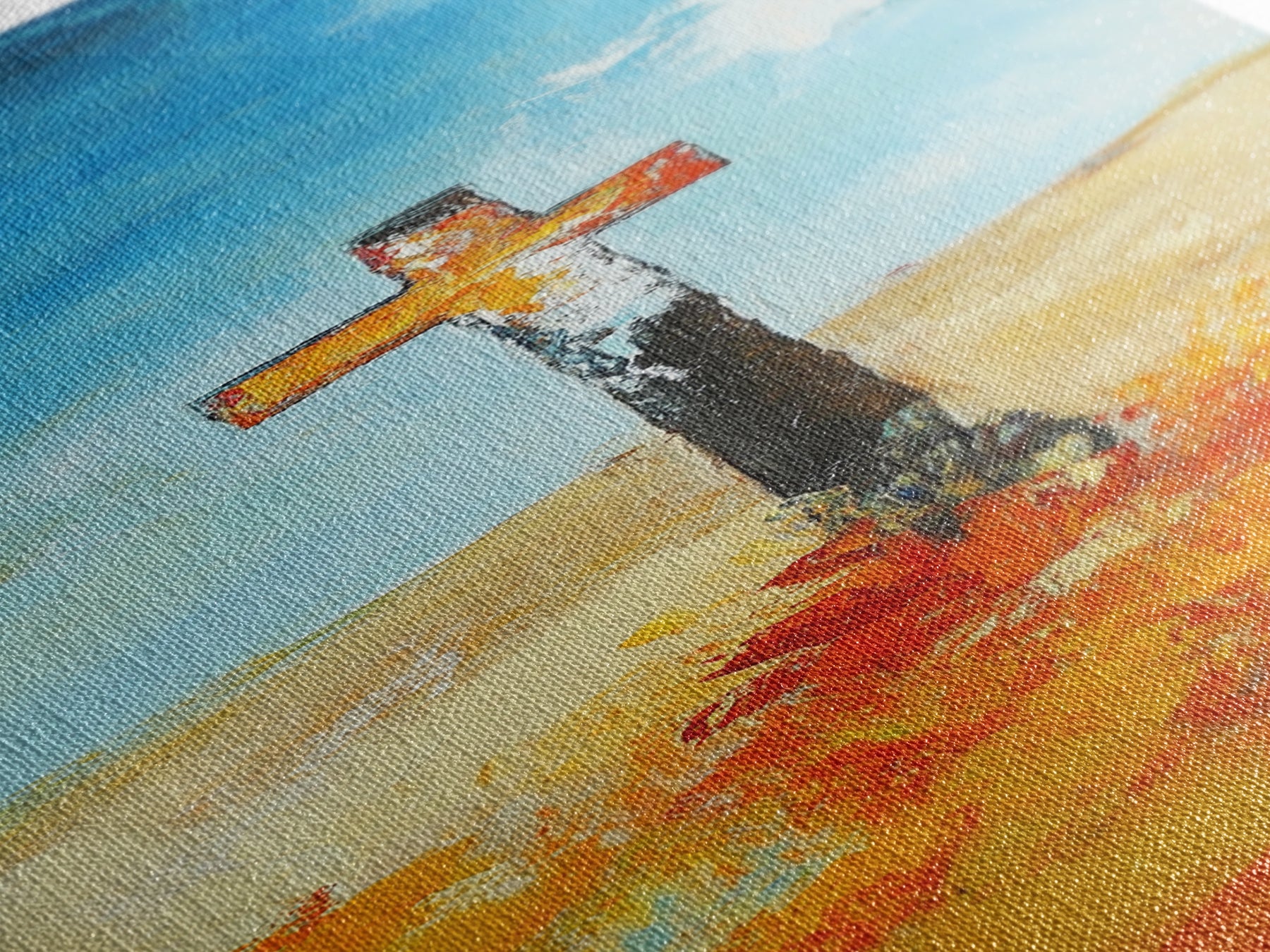 Most of our canvases are made in the USA, with the exception of canvases ordered with the light oak unstained frames, and any large canvases (24x48, 30x60, 16x48 and 20x60) ordered WITH a frame. These are temporarily made in and shipped from Europe, while we try to find a more consistent supplier in the USA.