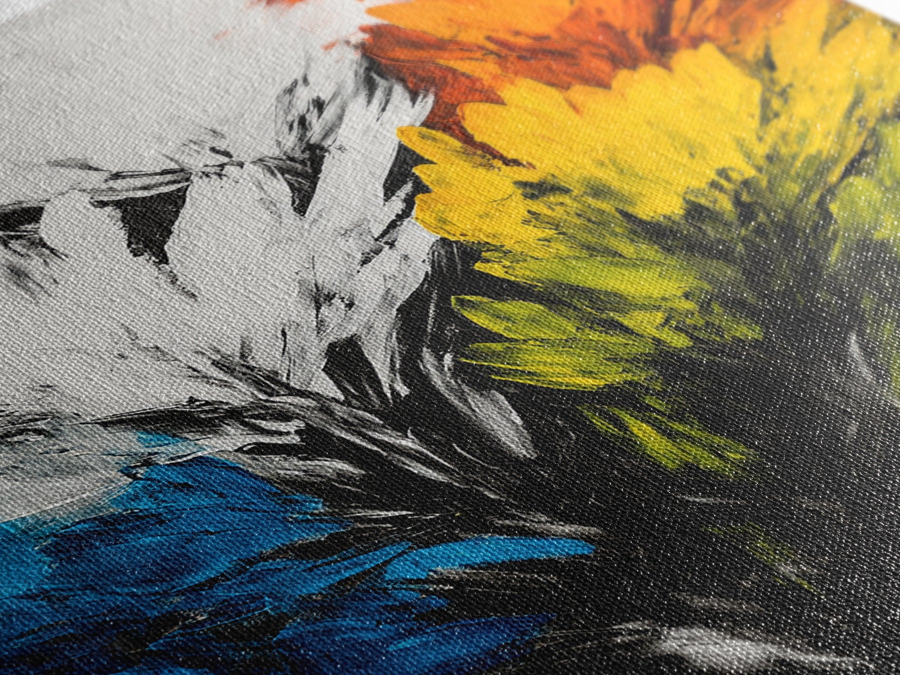 Most of our canvases are made in the USA, with the exception of canvases ordered with the light oak unstained frames, and any large canvases (24x48, 30x60, 16x48 and 20x60) ordered WITH a frame. These are temporarily made in and shipped from Europe, while we try to find a more consistent supplier in the USA.