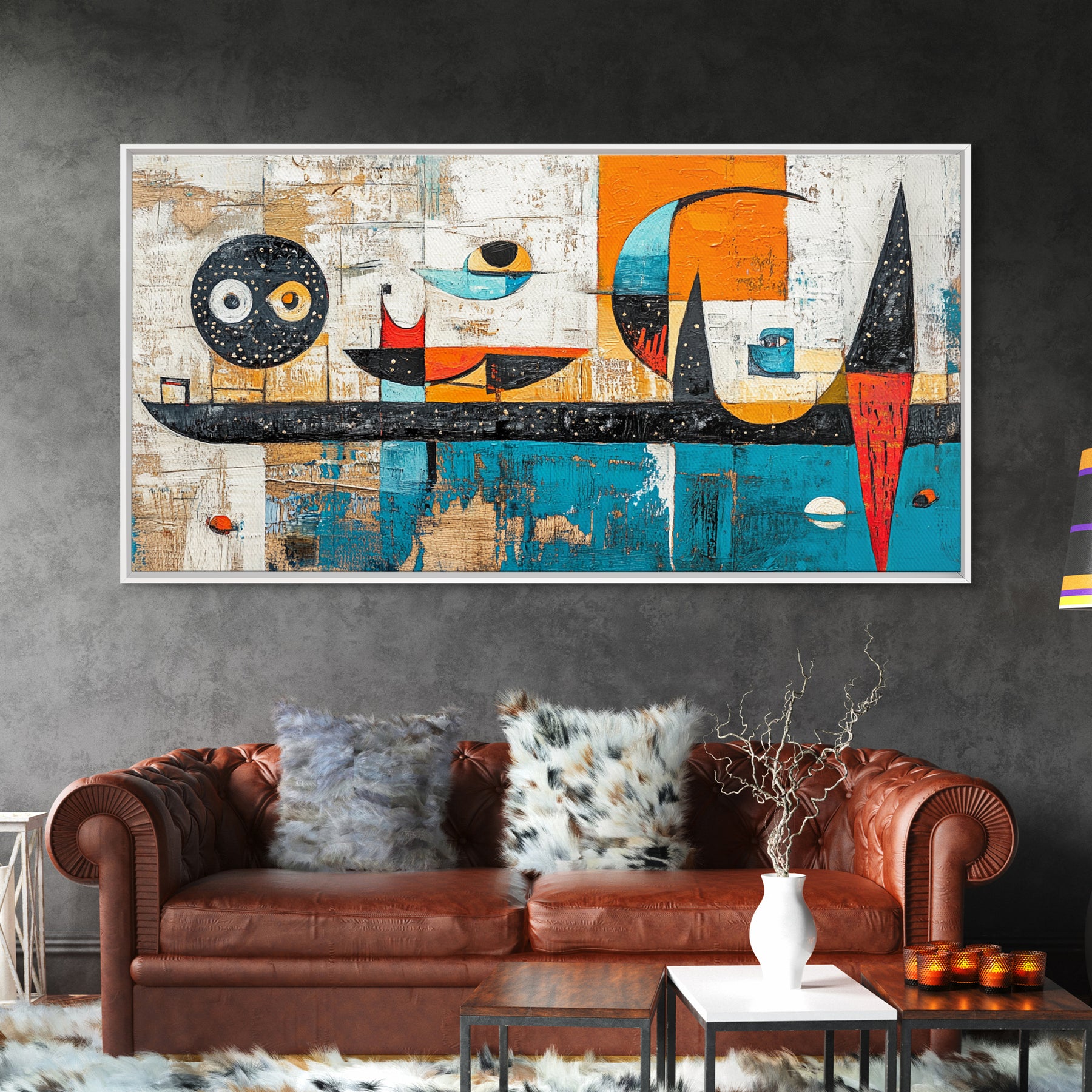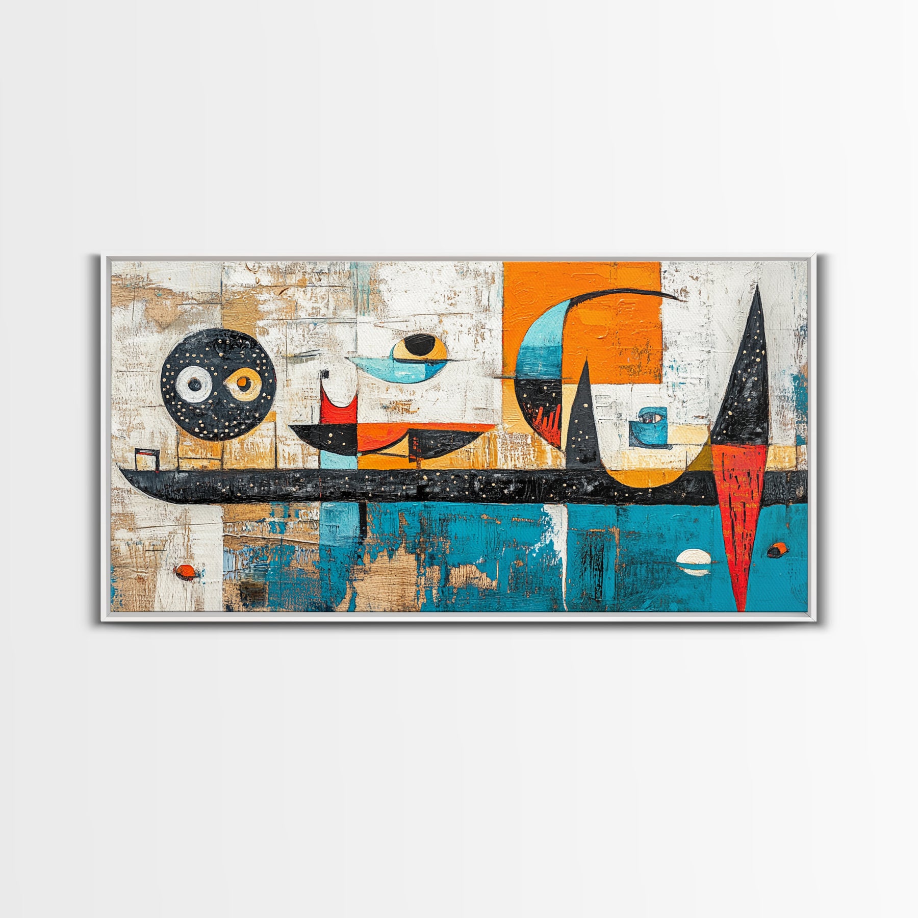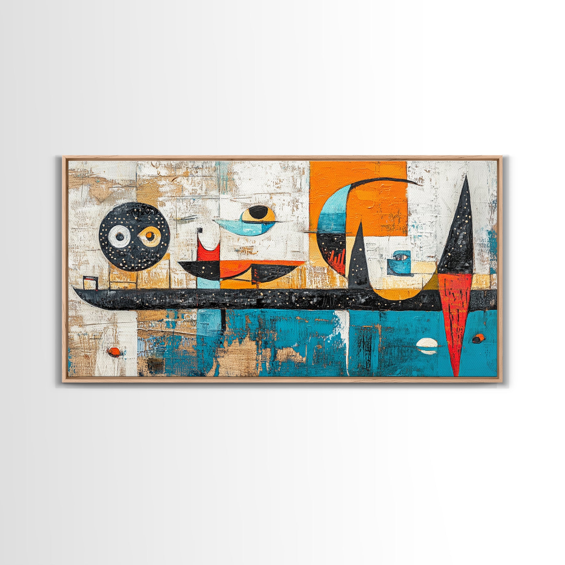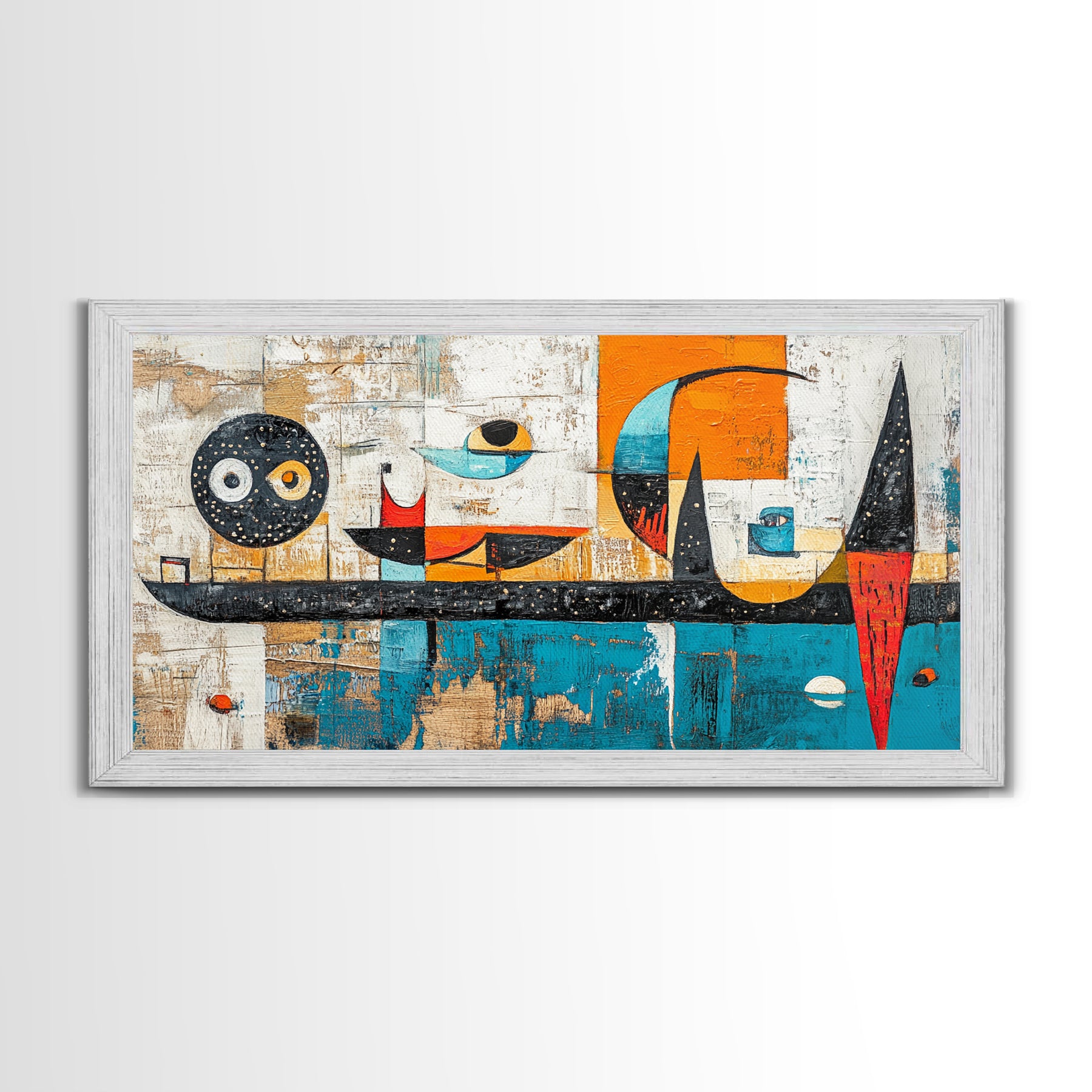 Abstract Geometric Art, mid-century modern art, sacred geometry wall art, framed canvas print, blue and green wall art, mosaic art