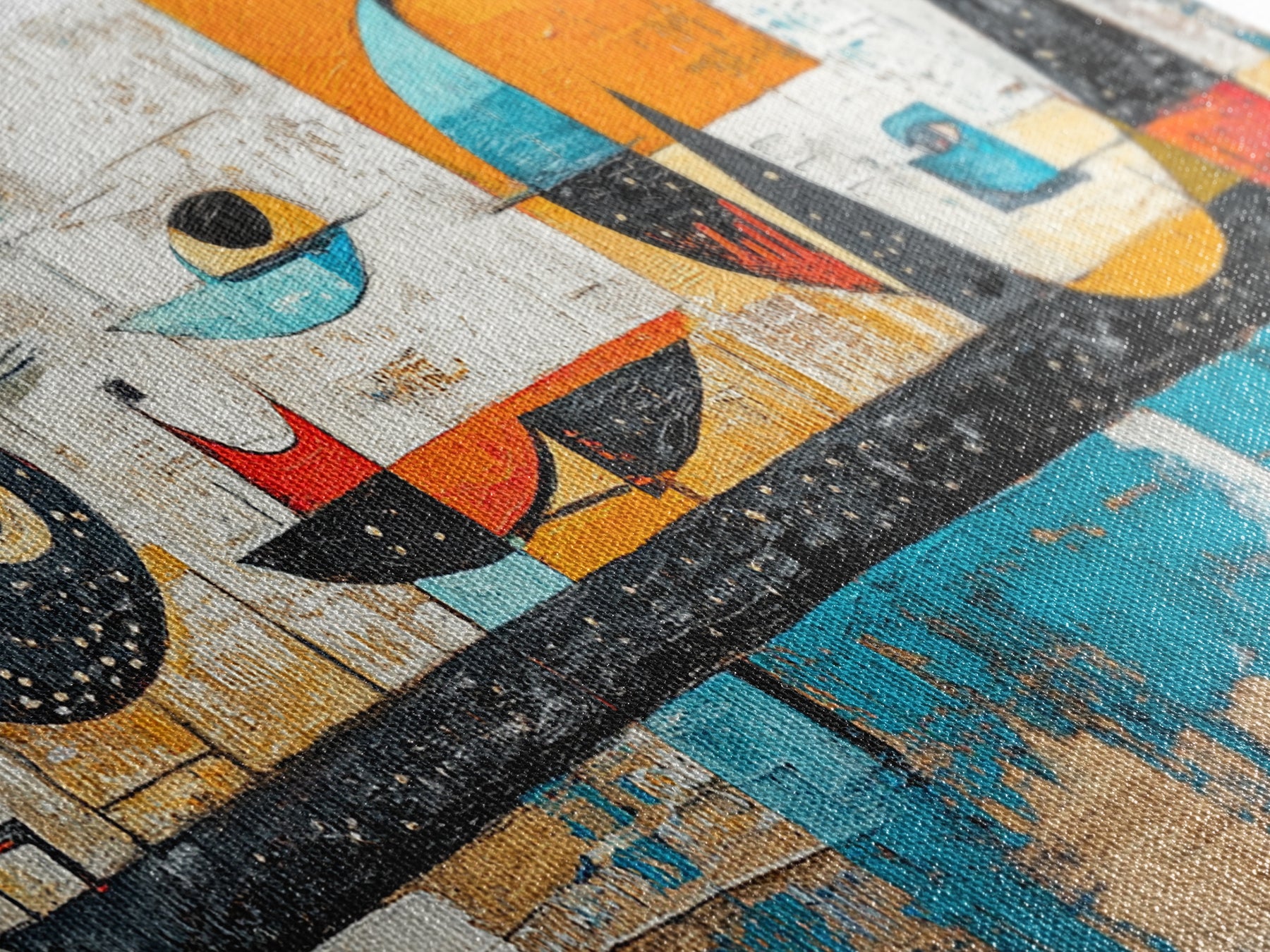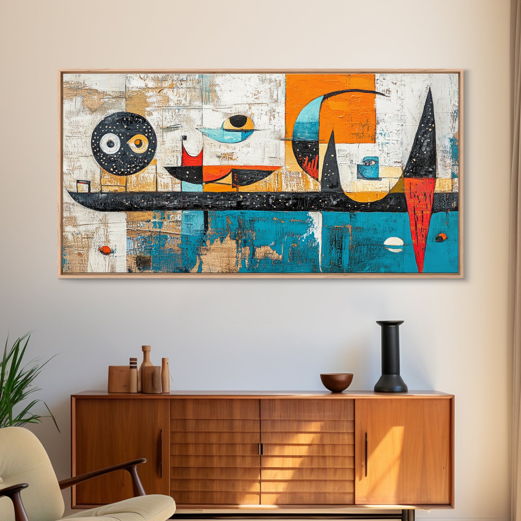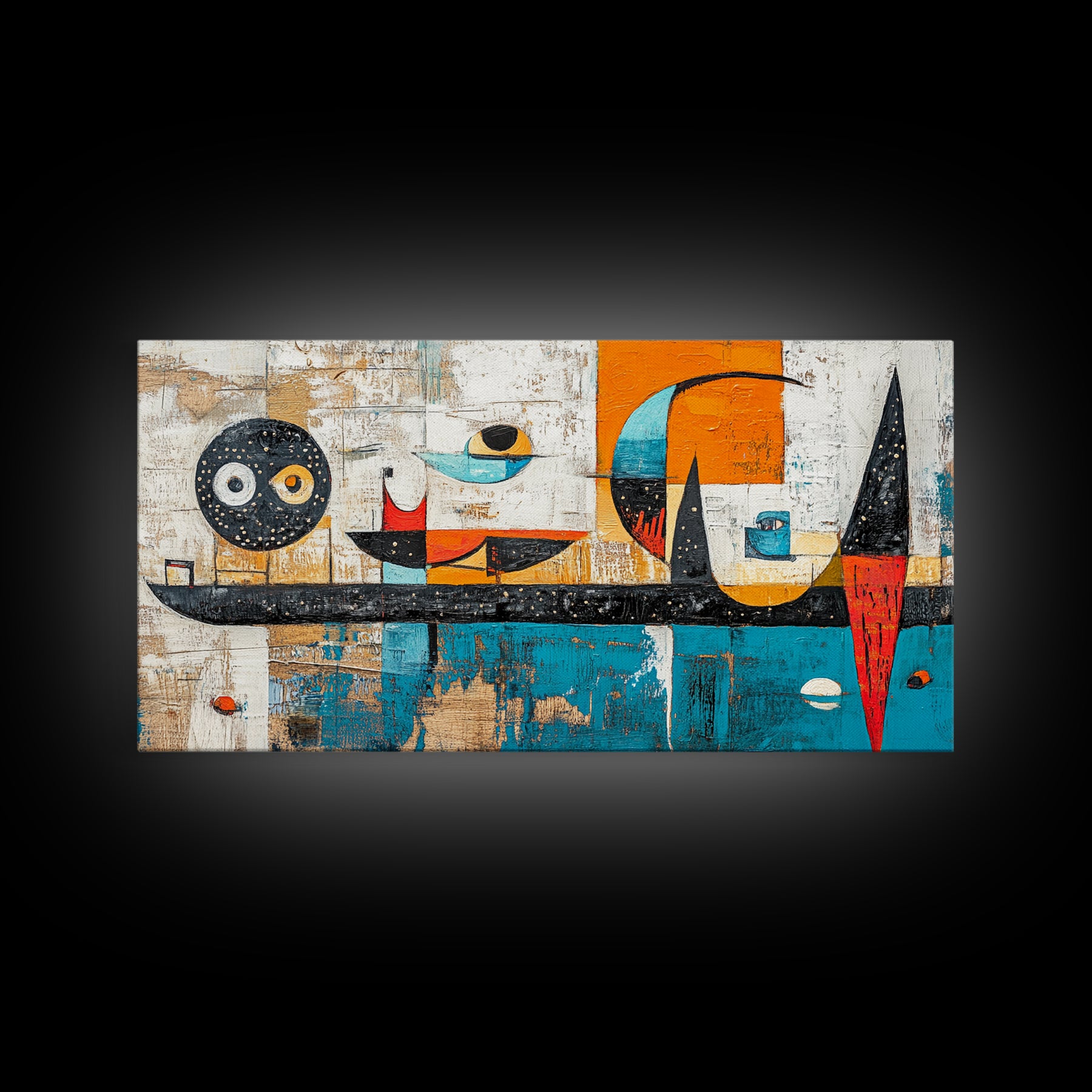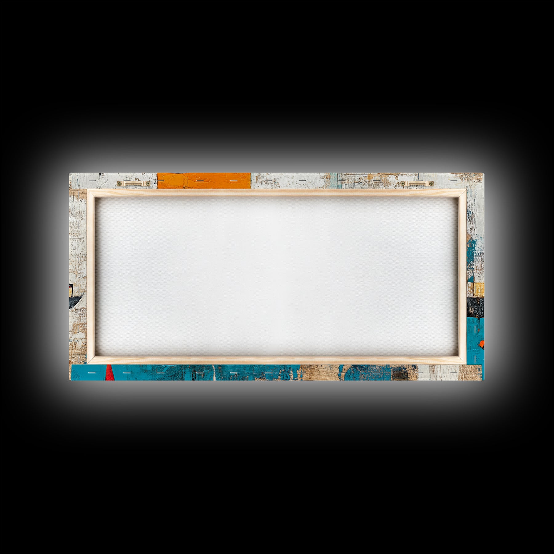 Abstract Geometric Art, mid-century modern art, sacred geometry wall art, framed canvas print, blue and green wall art, mosaic art
