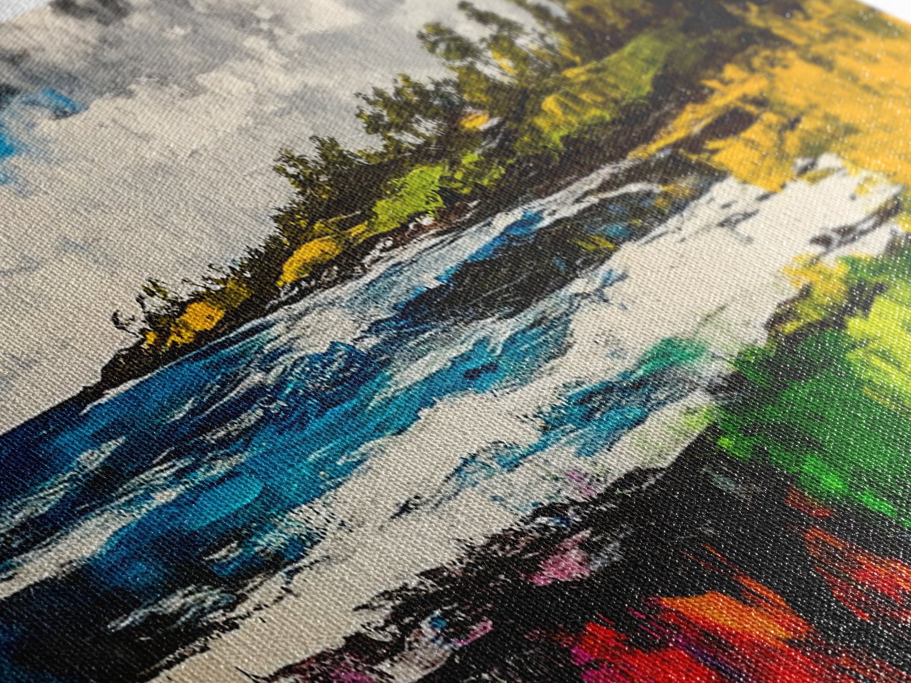 Most of our canvases are made in the USA, with the exception of canvases ordered with the light oak unstained frames, and any large canvases (24x48, 30x60, 16x48 and 20x60) ordered WITH a frame. These are temporarily made in and shipped from Europe, while we try to find a more consistent supplier in the USA.