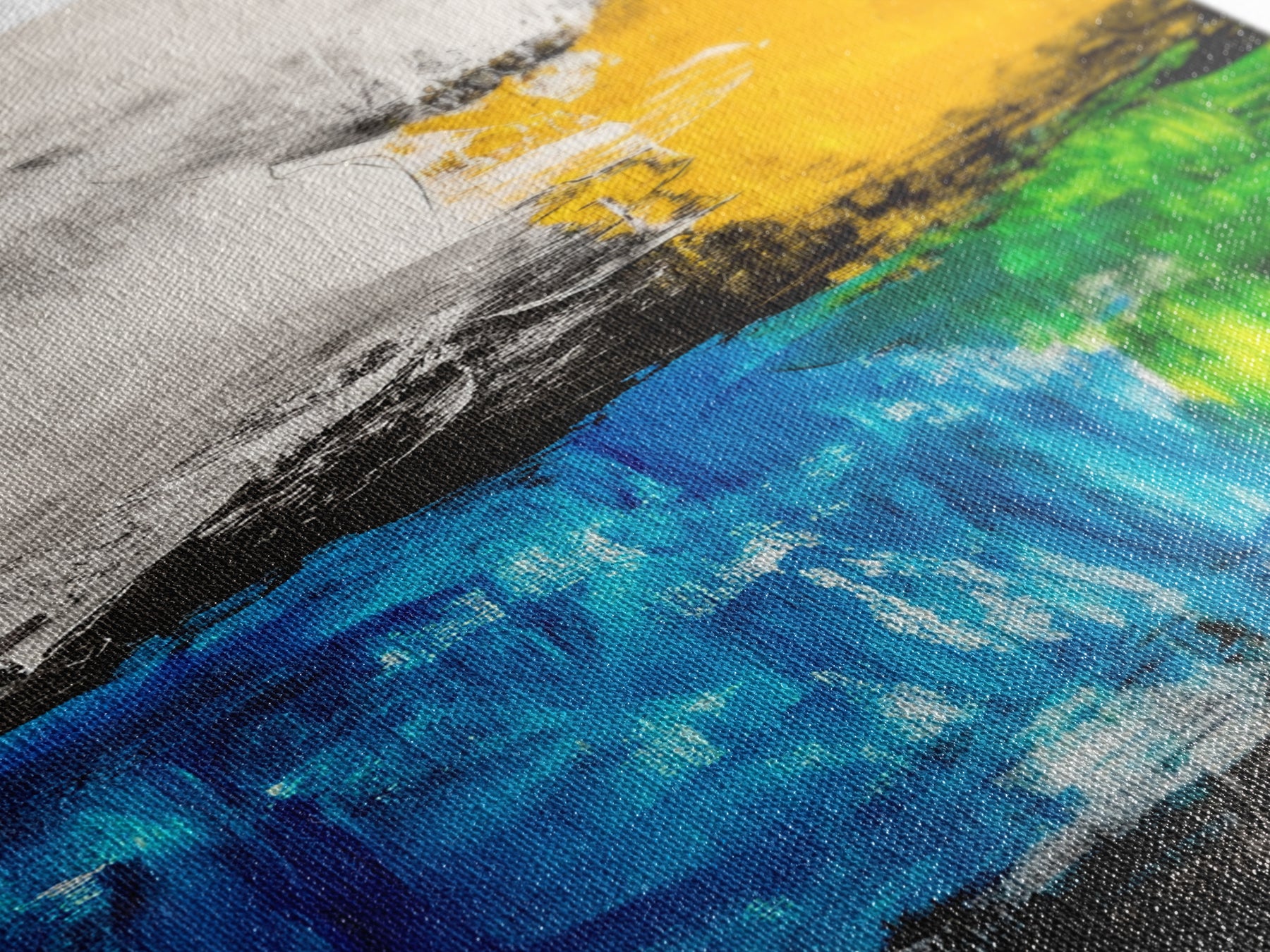 Most of our canvases are made in the USA, with the exception of canvases ordered with the light oak unstained frames, and any large canvases (24x48, 30x60, 16x48 and 20x60) ordered WITH a frame. These are temporarily made in and shipped from Europe, while we try to find a more consistent supplier in the USA.