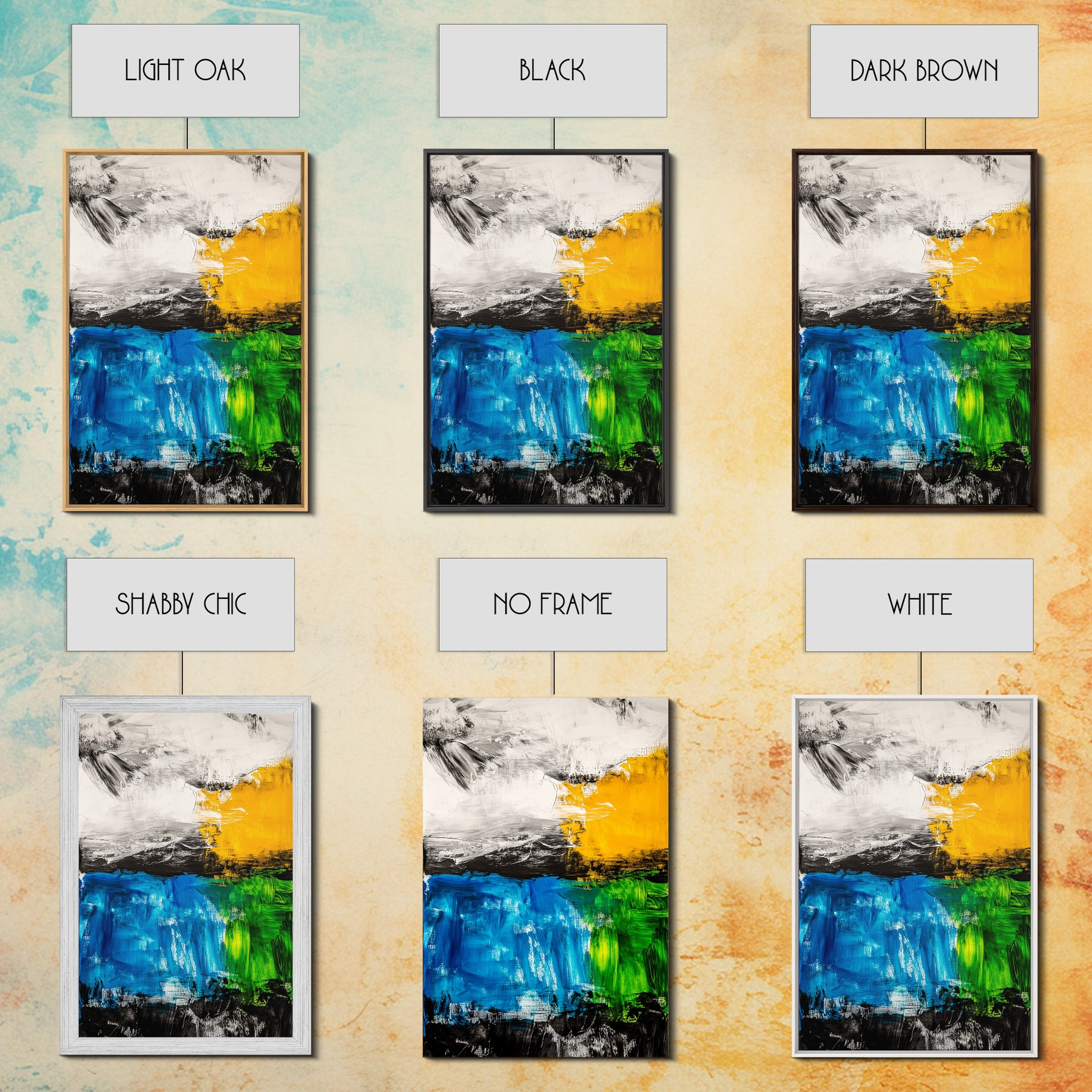 *Optional frames add a total of 1.5 inches to each dimension, for example a 10x20 canvas with a frame will be 11.5 by 21.5 inches total. All framed canvas are 1.5" total depth.