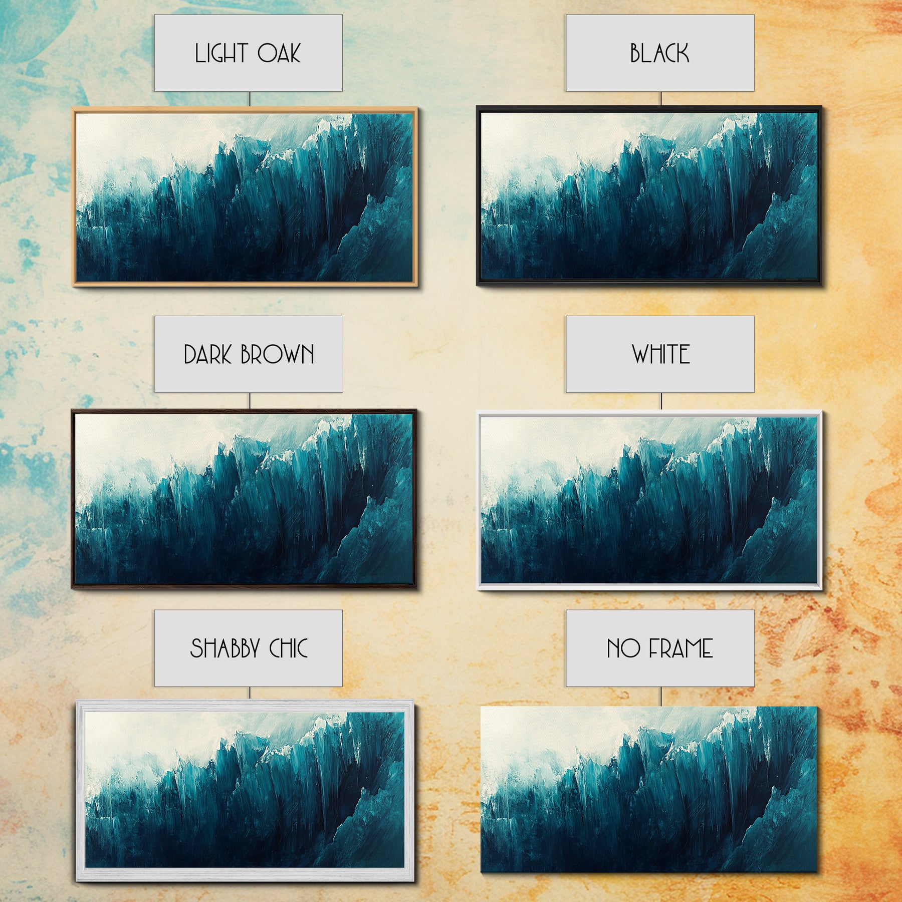 Abstract Ocean Painting, Teal Wall Art, Coastal Wall Art, Extra Wide Art, Framed Canvas Print, Nautical Decor, Wabi Sabi Art