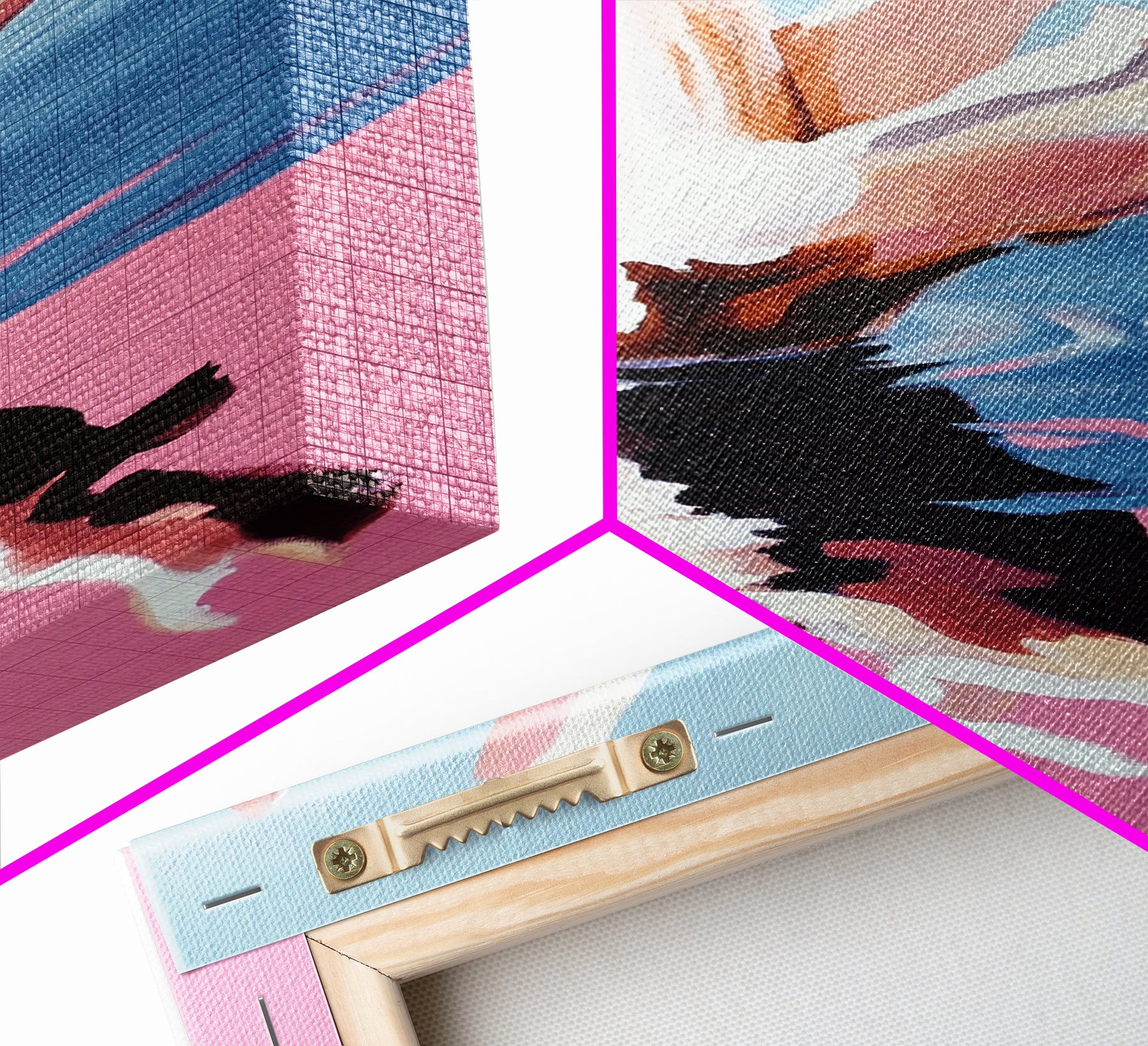 Hello and thank you for taking the time to view our modern high quality giclée artwork! We offer both posters and stretched canvas prints. Our posters are printed on Ultra Matte 60 lb / 230 GSM high quality photo paper, with a thickness of 10 mil. Our canvases are printed on museum grade 350 GSM canvas material with ECO friendly archival grade ink, then hand stretched and stapled over premium, FSC certified and shrink resistant frames. Designed and built to last a lifetime.