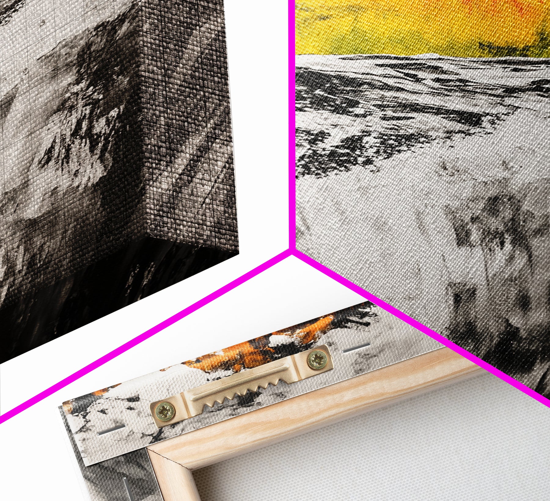 Hello and thank you for taking the time to view our modern high quality giclée artwork! We offer both posters and stretched canvas prints. Our posters are printed on Ultra Matte 60 lb / 230 GSM high quality photo paper, with a thickness of 10 mil. Our canvases are printed on museum grade 350 GSM canvas material with ECO friendly archival grade ink, then hand stretched and stapled over premium, FSC certified and shrink resistant frames. Designed and built to last a lifetime.