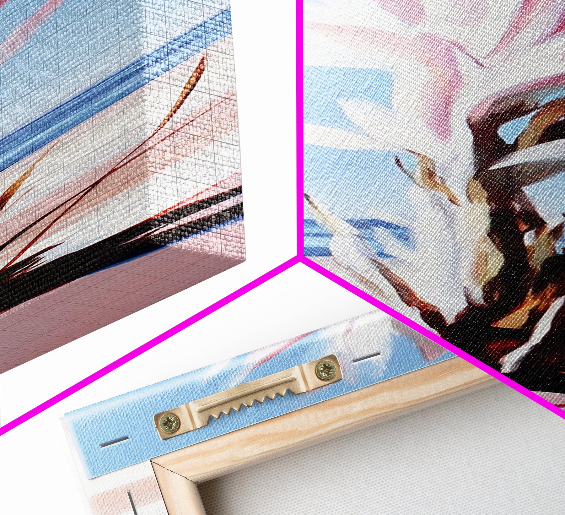Hello and thank you for taking the time to view our modern high quality giclée artwork! We offer both posters and stretched canvas prints. Our posters are printed on Ultra Matte 60 lb / 230 GSM high quality photo paper, with a thickness of 10 mil. Our canvases are printed on museum grade 350 GSM canvas material with ECO friendly archival grade ink, then hand stretched and stapled over premium, FSC certified and shrink resistant frames. Designed and built to last a lifetime.