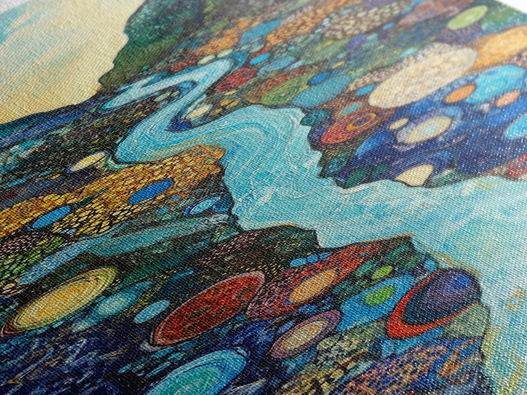 Most of our canvases are made in the USA, with the exception of canvases ordered with the light oak unstained frames, and any large canvases (24x48, 30x60, 16x48 and 20x60) ordered WITH a frame. These are temporarily made in and shipped from Europe, while we try to find a more consistent supplier in the USA.