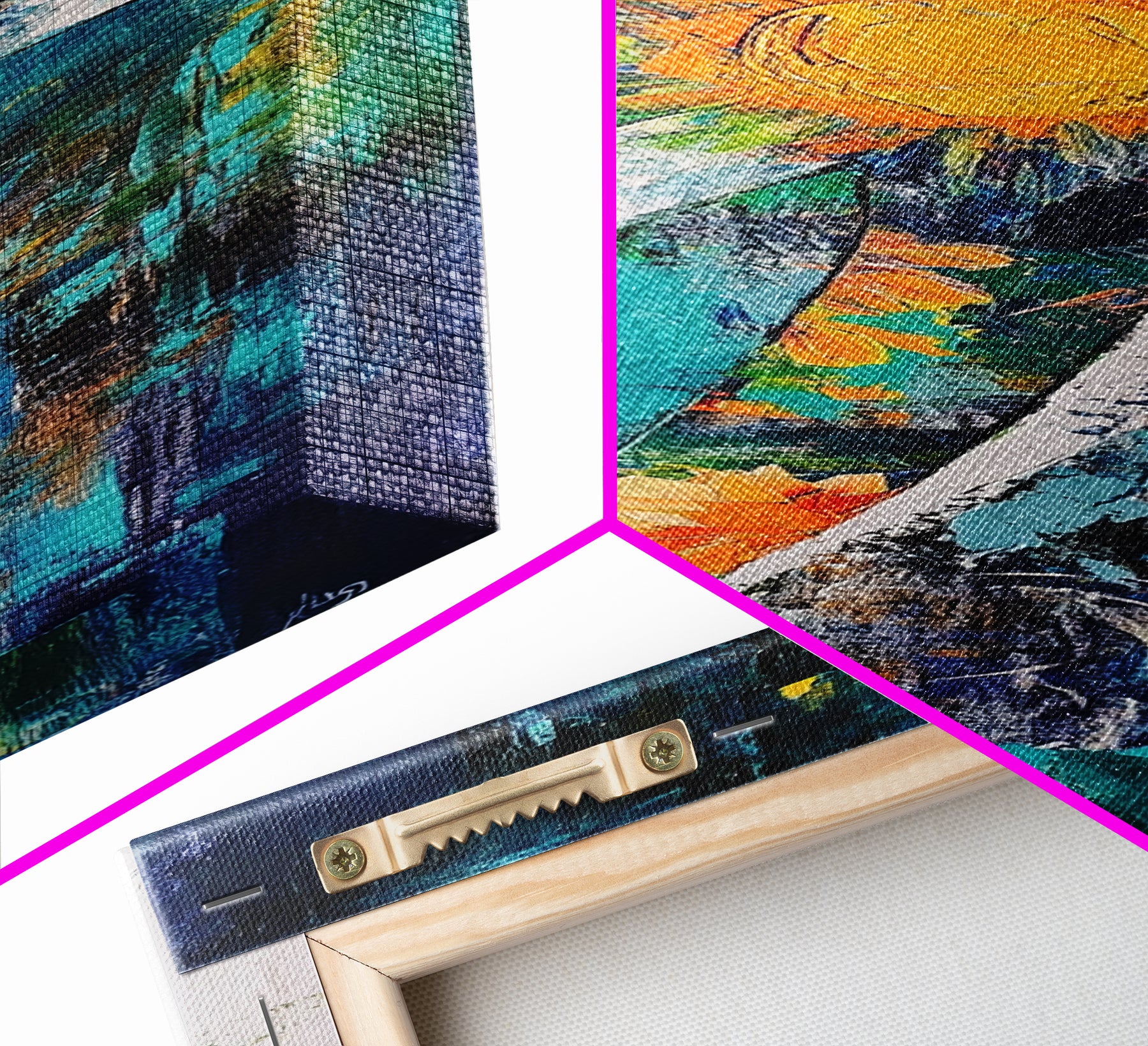 Hello and thank you for taking the time to view our modern high quality giclée artwork! We offer both posters and stretched canvas prints. Our posters are printed on Ultra Matte 60 lb / 230 GSM high quality photo paper, with a thickness of 10 mil. Our canvases are printed on museum grade 350 GSM canvas material with ECO friendly archival grade ink, then hand stretched and stapled over premium, FSC certified and shrink resistant frames. Designed and built to last a lifetime.