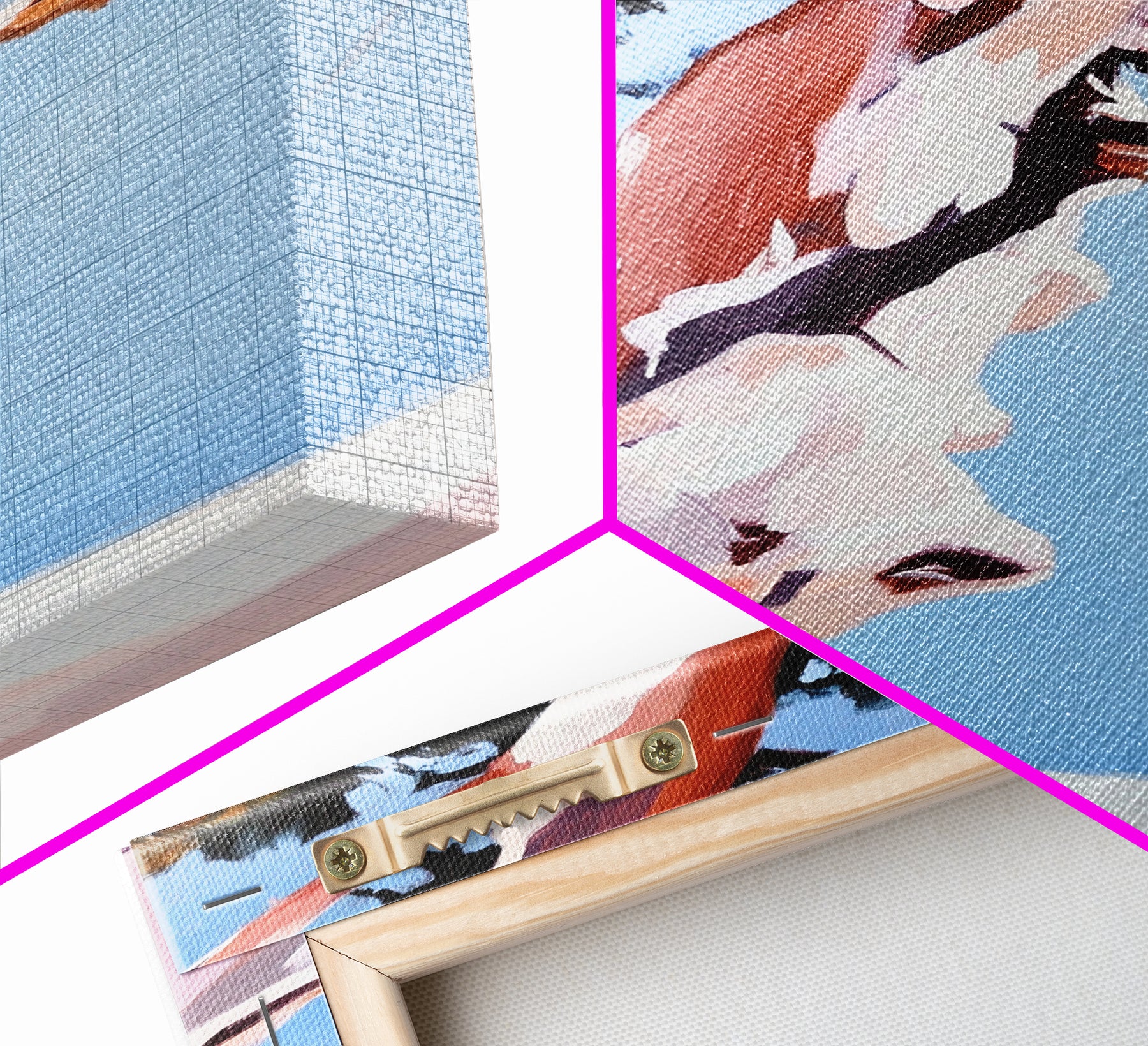 Hello and thank you for taking the time to view our modern high quality giclée artwork! We offer both posters and stretched canvas prints. Our posters are printed on Ultra Matte 60 lb / 230 GSM high quality photo paper, with a thickness of 10 mil. Our canvases are printed on museum grade 350 GSM canvas material with ECO friendly archival grade ink, then hand stretched and stapled over premium, FSC certified and shrink resistant frames. Designed and built to last a lifetime.