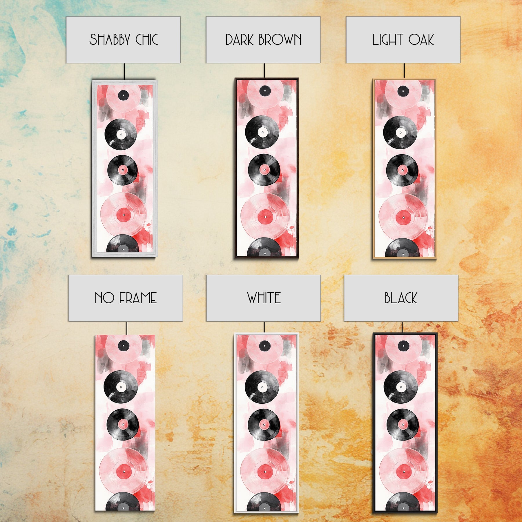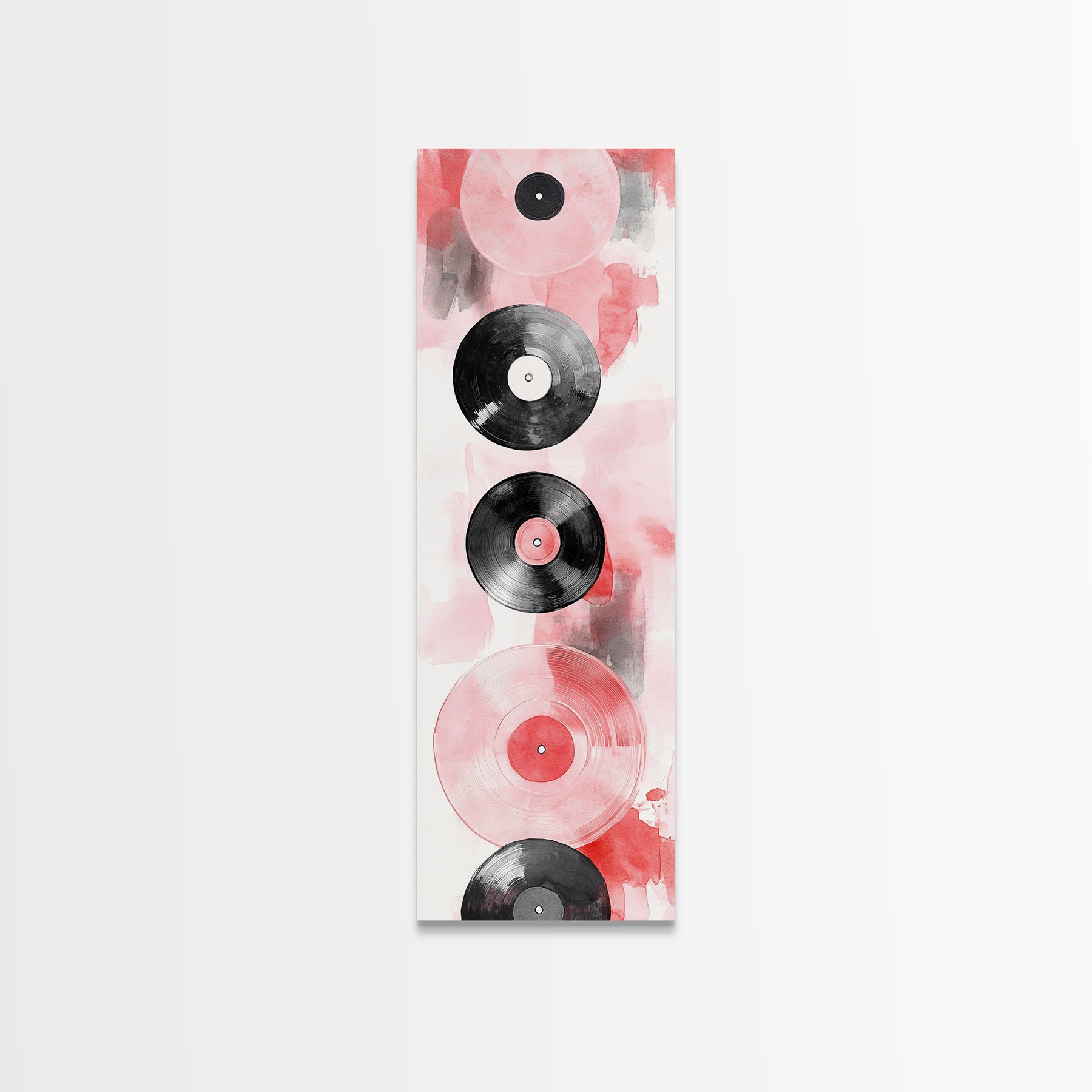 Abstract Vinyl Records Canvas Print, Retro Music Lover Wall Art, Light Pink Minimalist Art, Vertical Skinny Living Room Decor