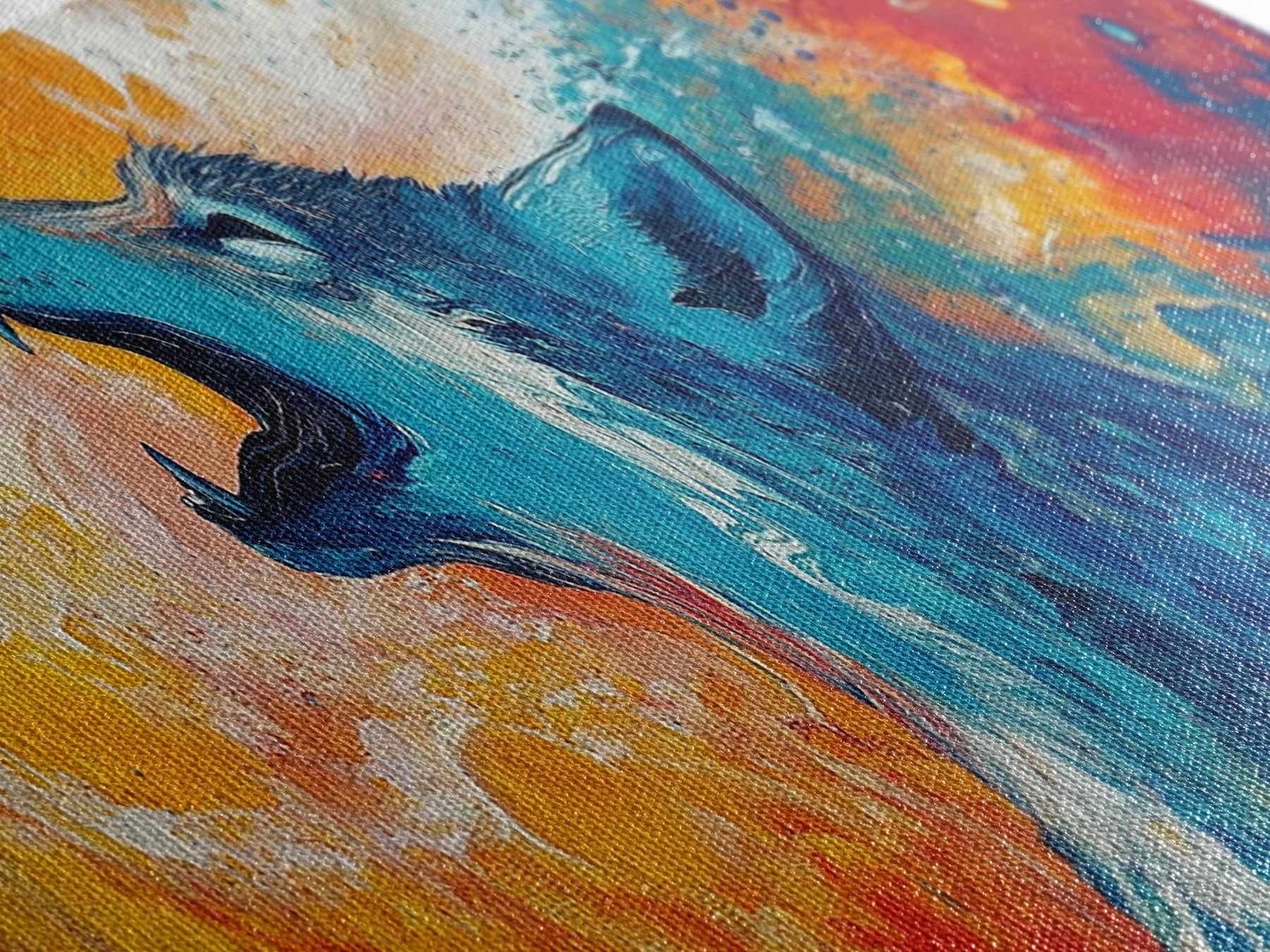 Abstract Wolf Art, moody art, blue and green wall art, extra wide art, framed canvas print, panoramic painting, rustic decor, southwest wall art