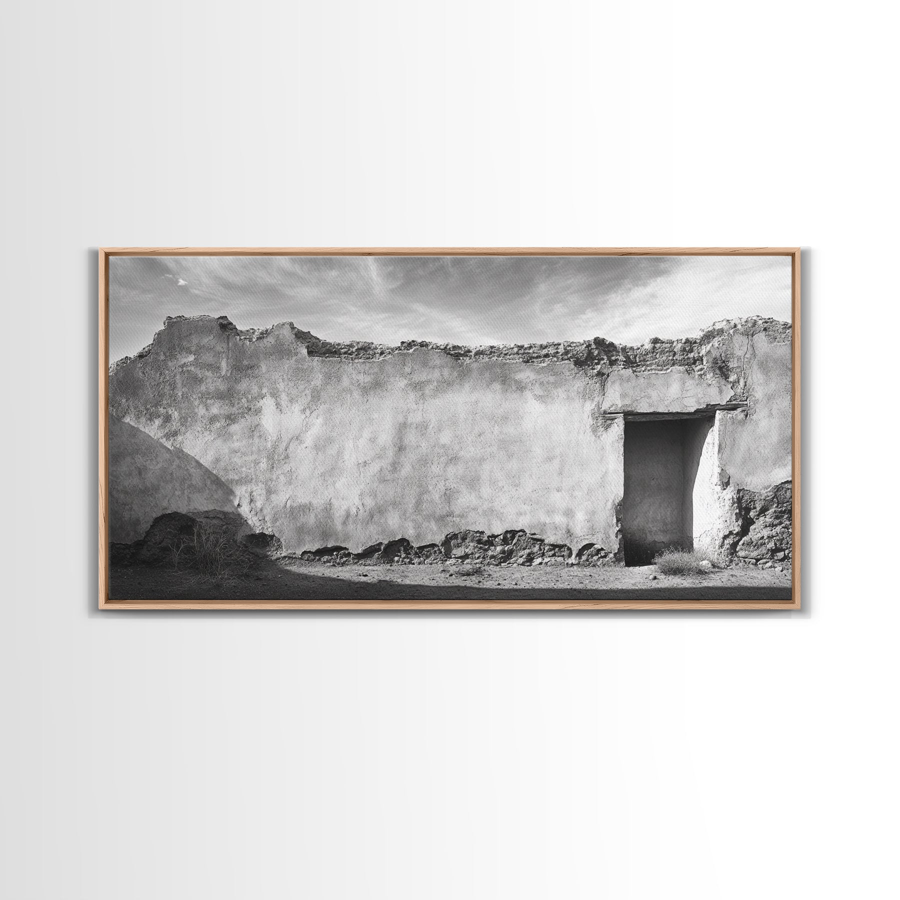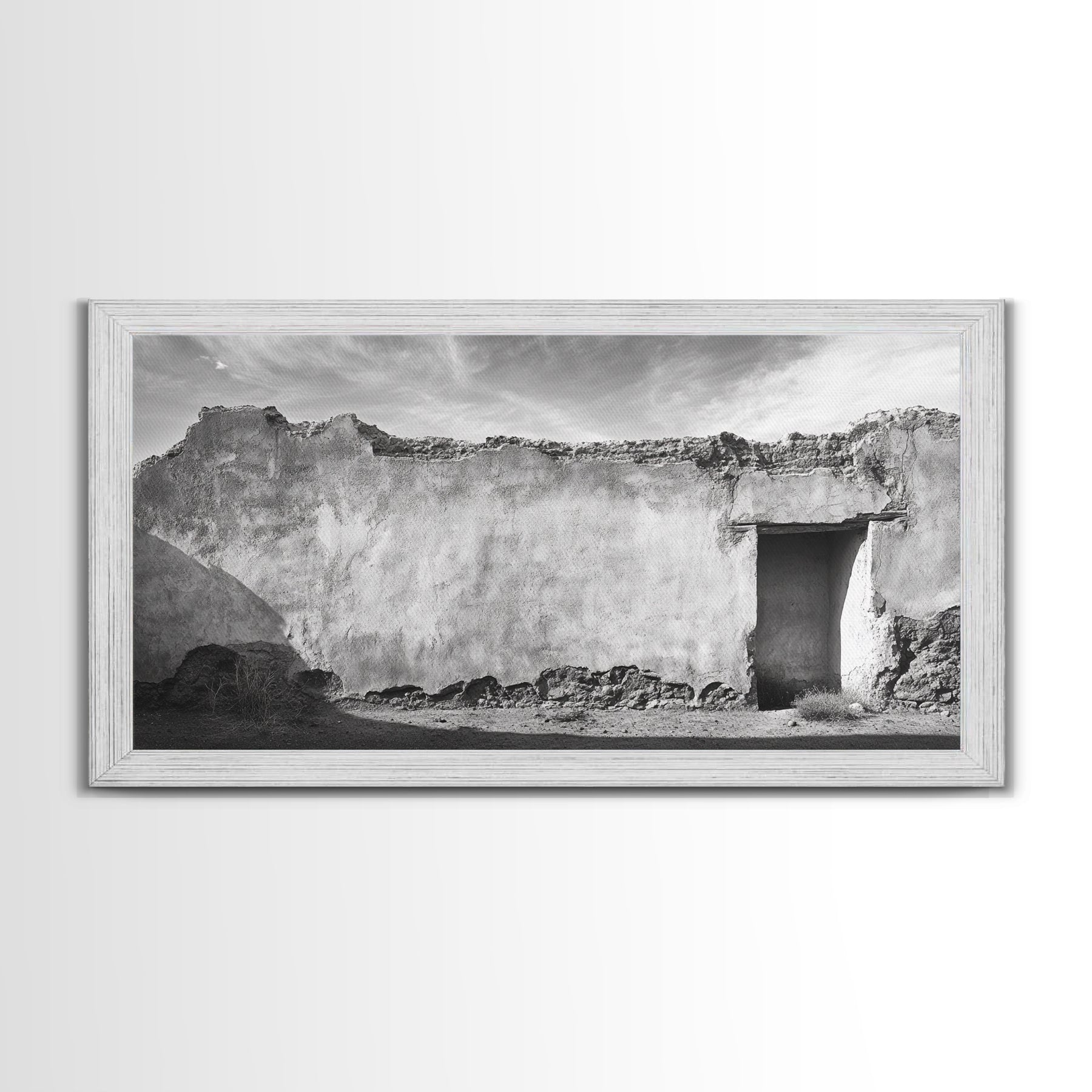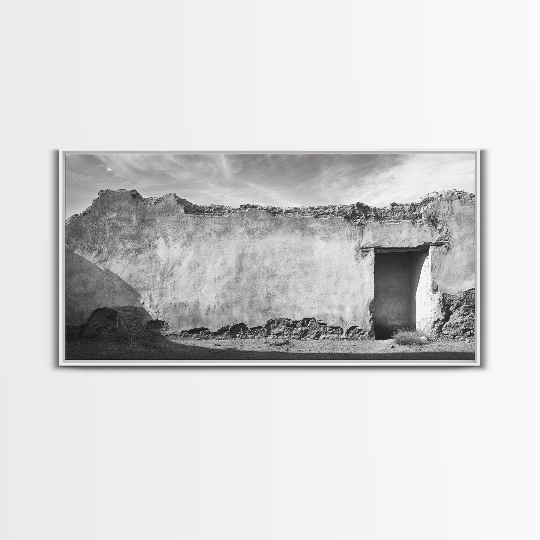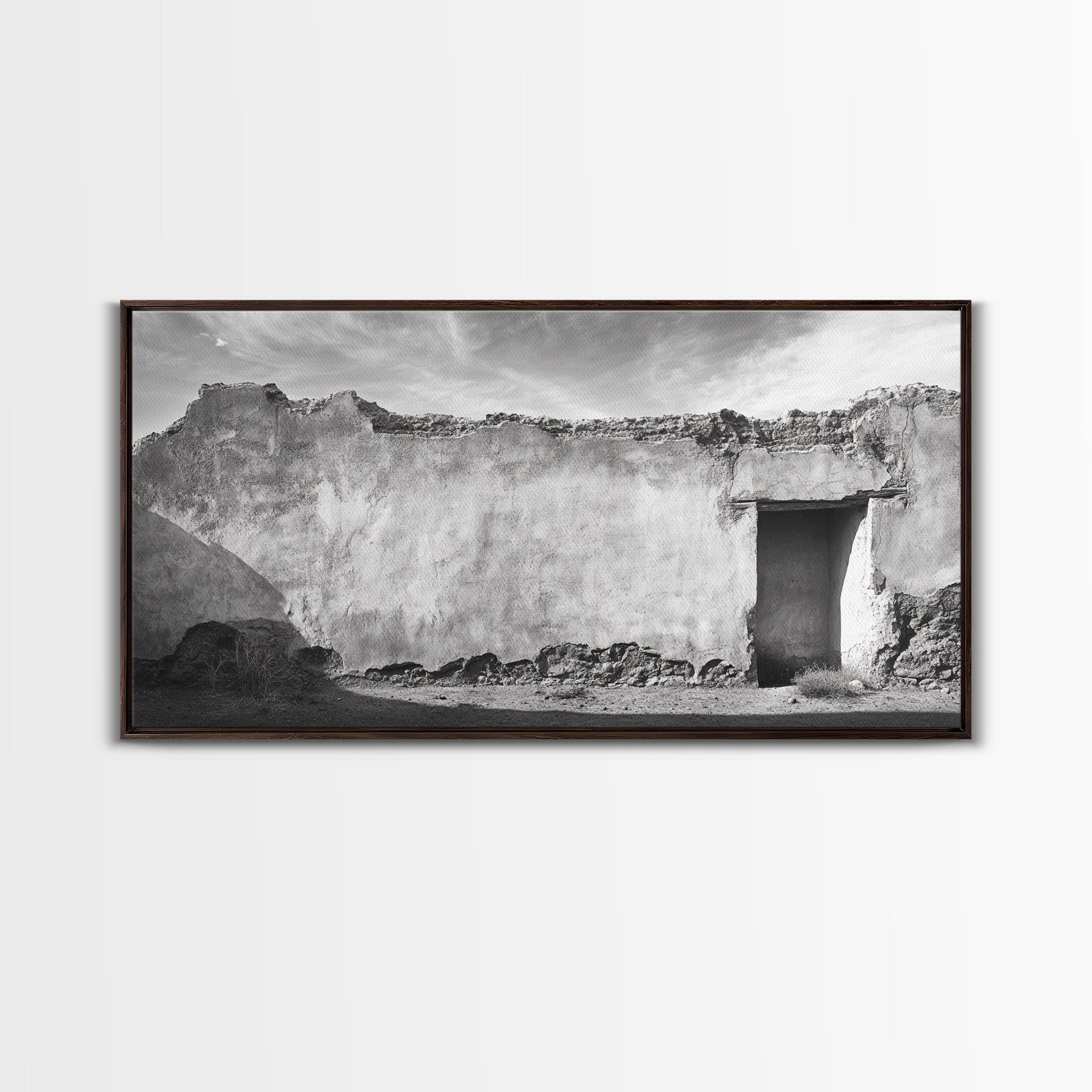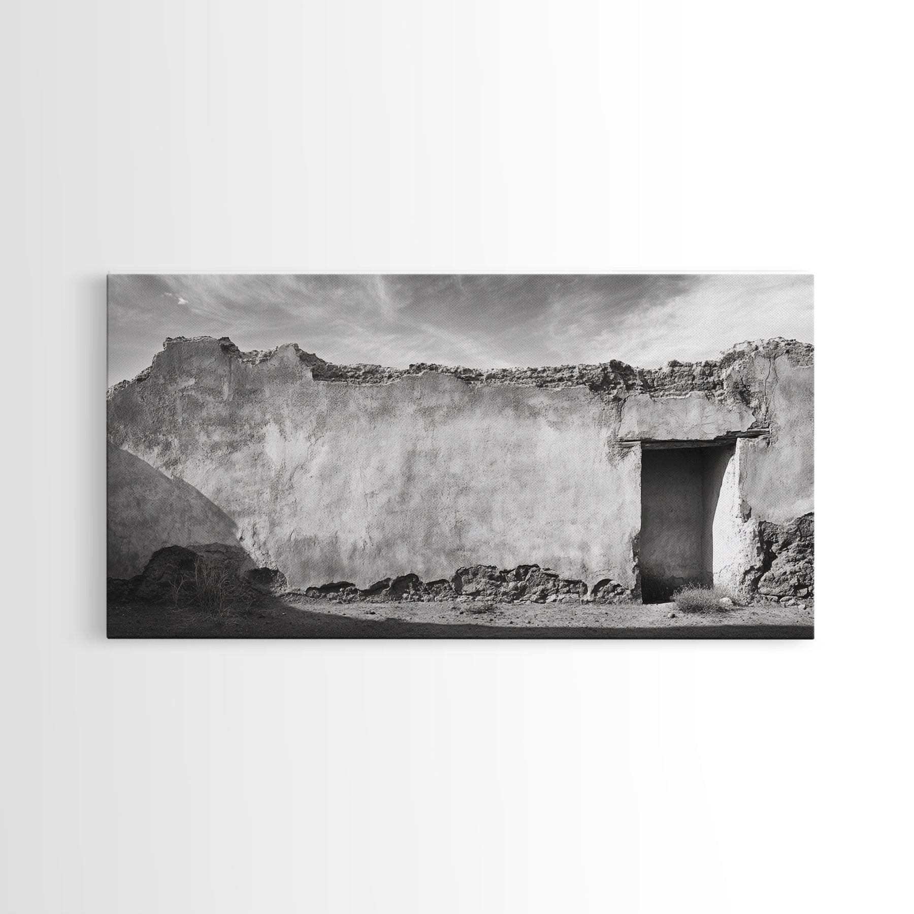 Adobe Wall, Desert Door, Rustic Texture, Framed Canvas Print, Southwest Wall Art, Neutral Earth Tones, Boho Western Living Room Decor