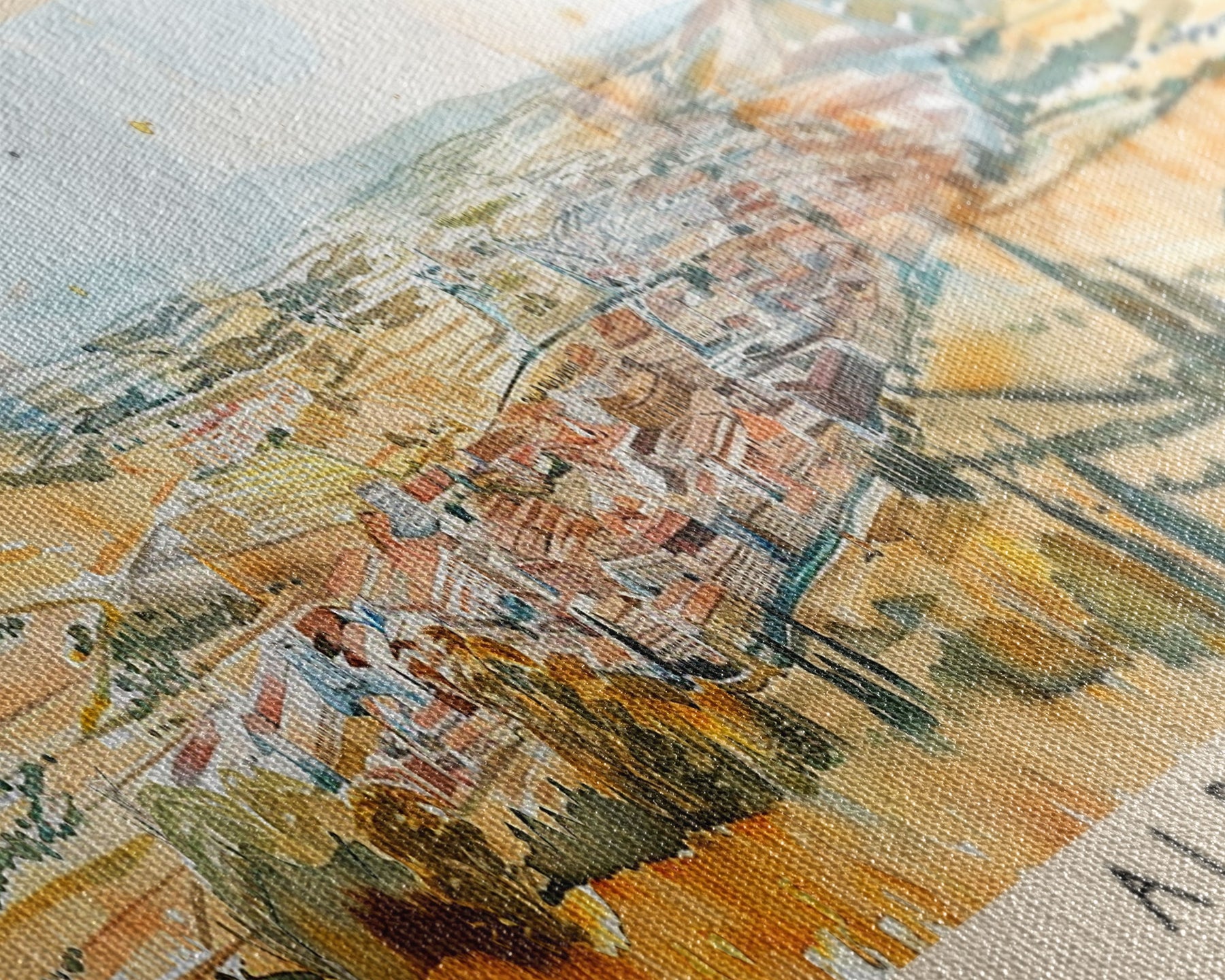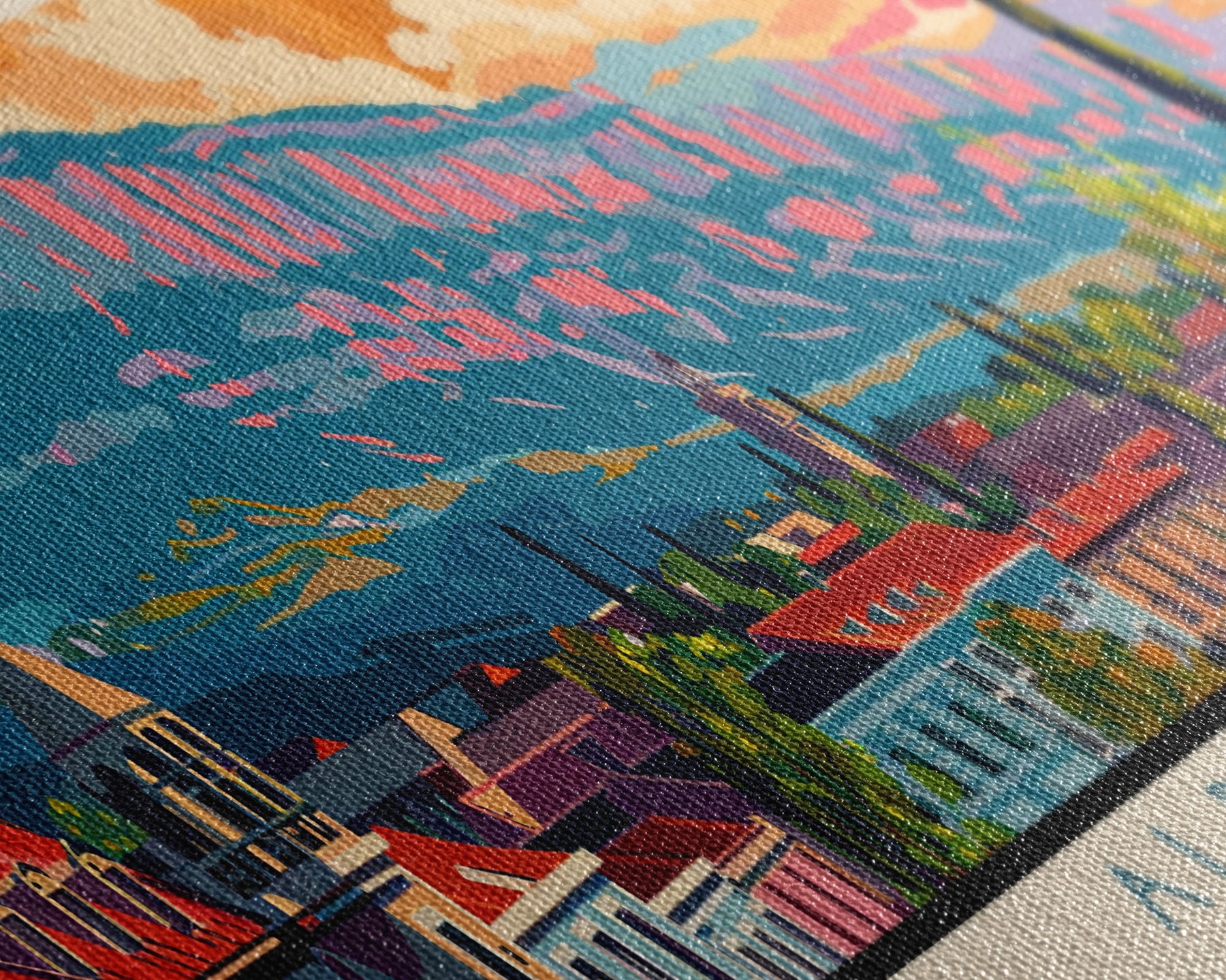 Most of our canvases are made in the USA, with the exception of canvases ordered with the light oak unstained frames, and any large canvases (24x48, 30x60, 16x48 and 20x60) ordered WITH a frame. These are temporarily made in and shipped from Europe, while we try to find a more consistent supplier in the USA.
