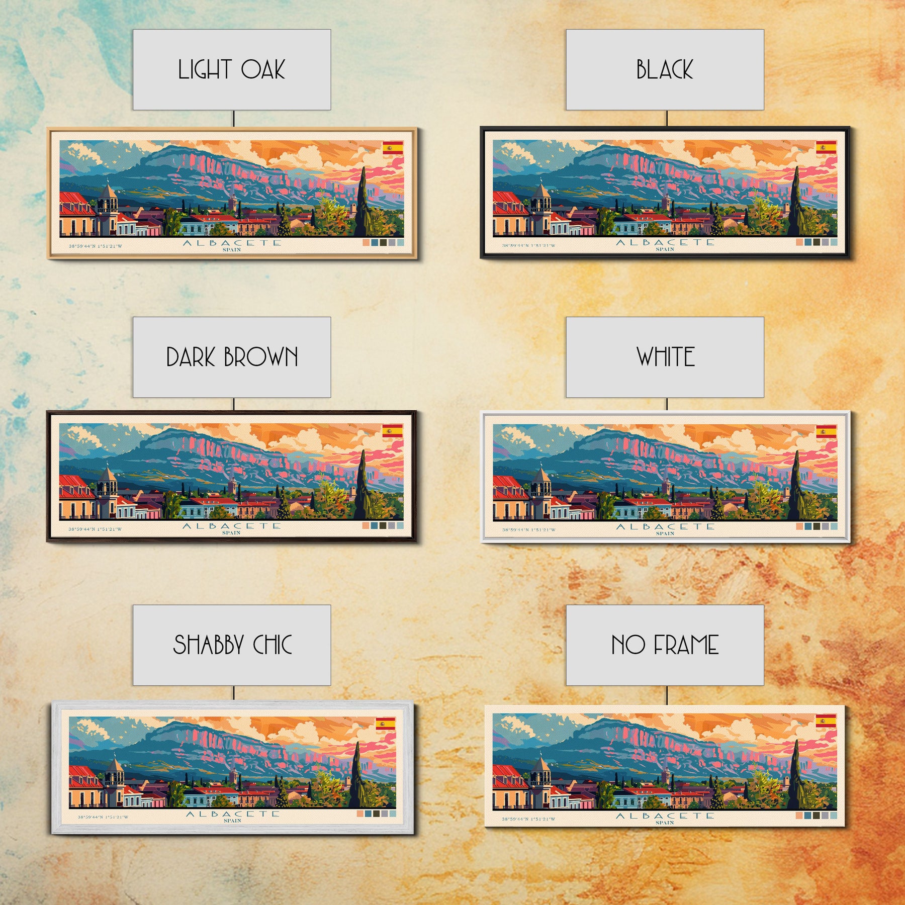 Albacete Spain Travel Print Wall Art, Panoramic City Art, Travel Art, Wall Decor, Vacation Gift, Framed Canvas Print Or Metal Art