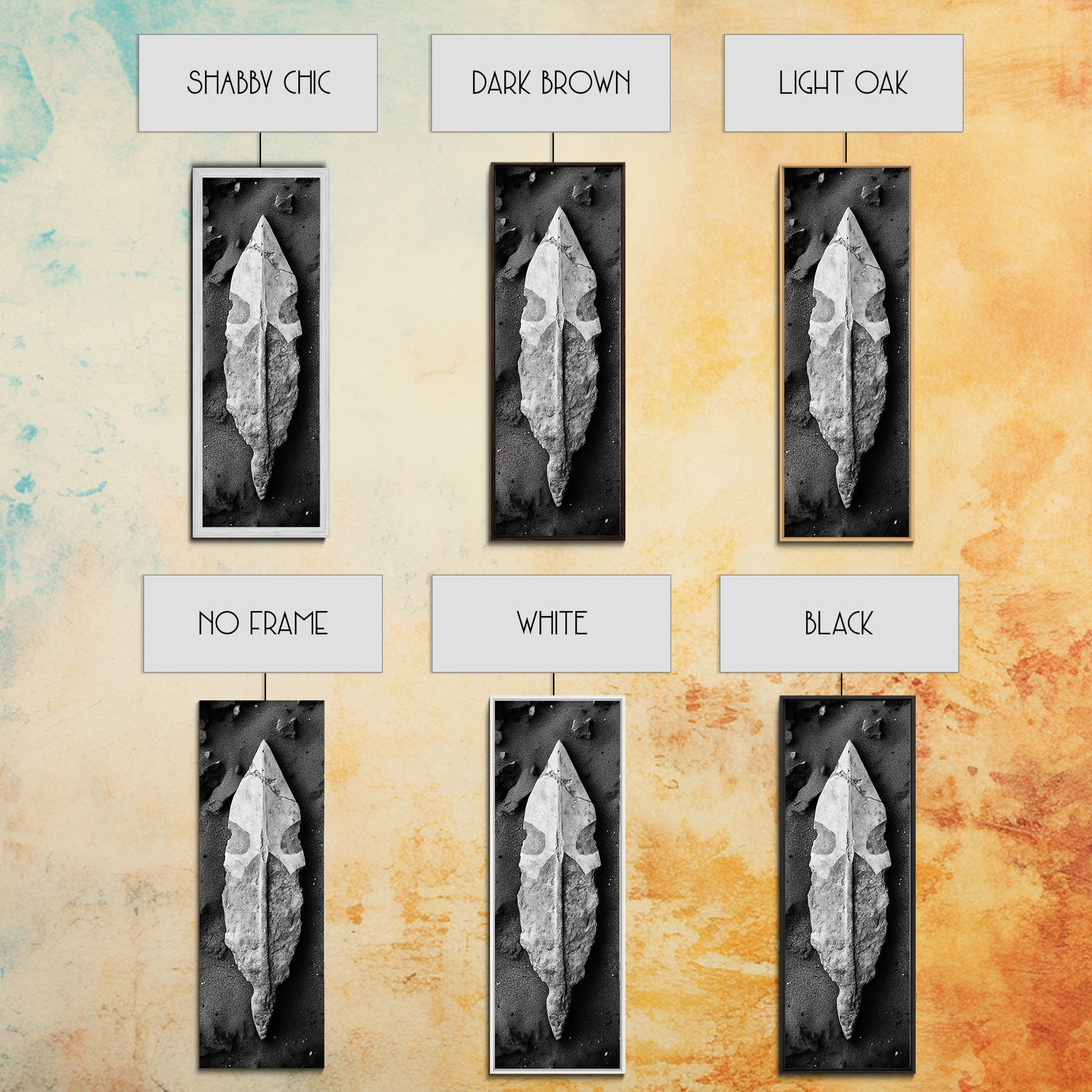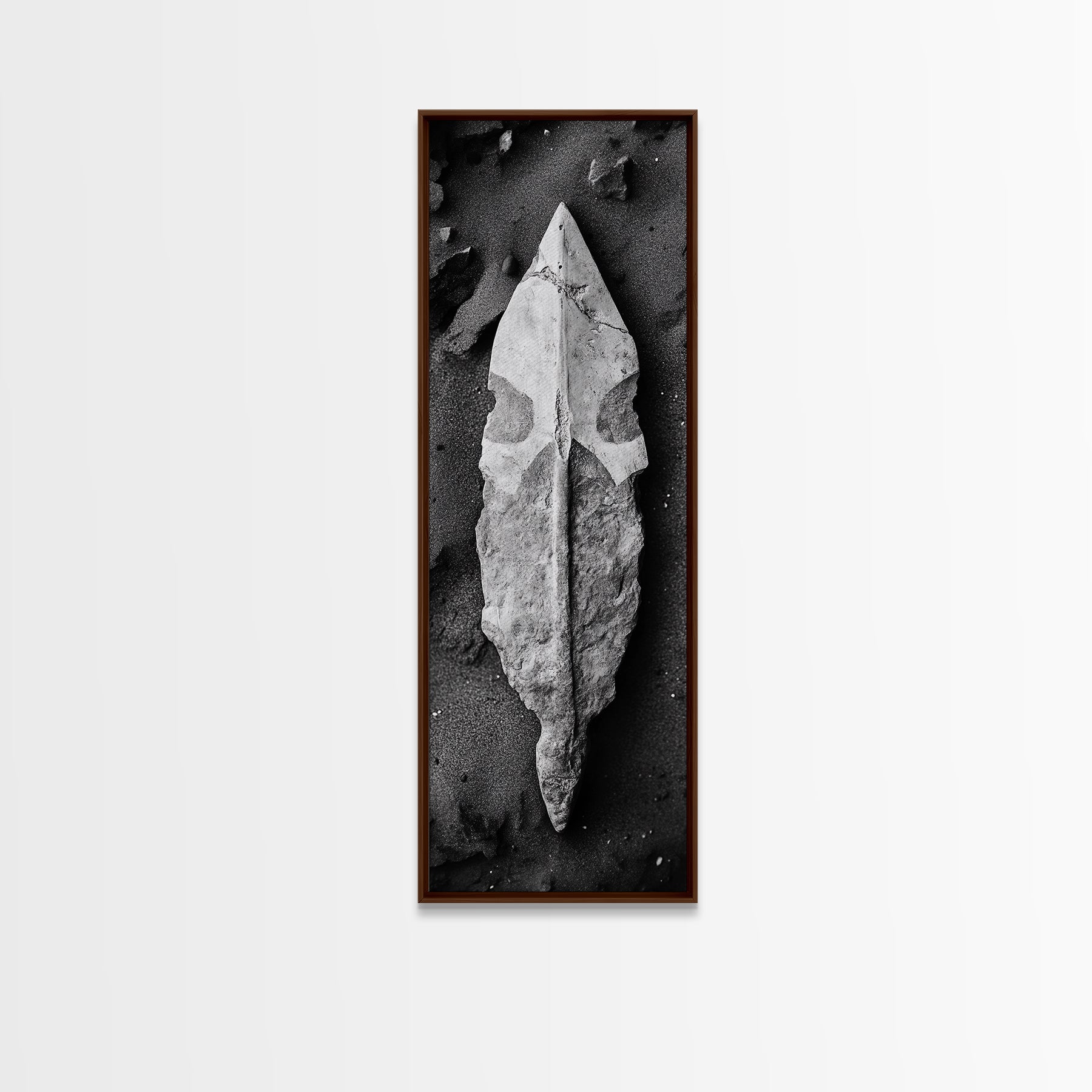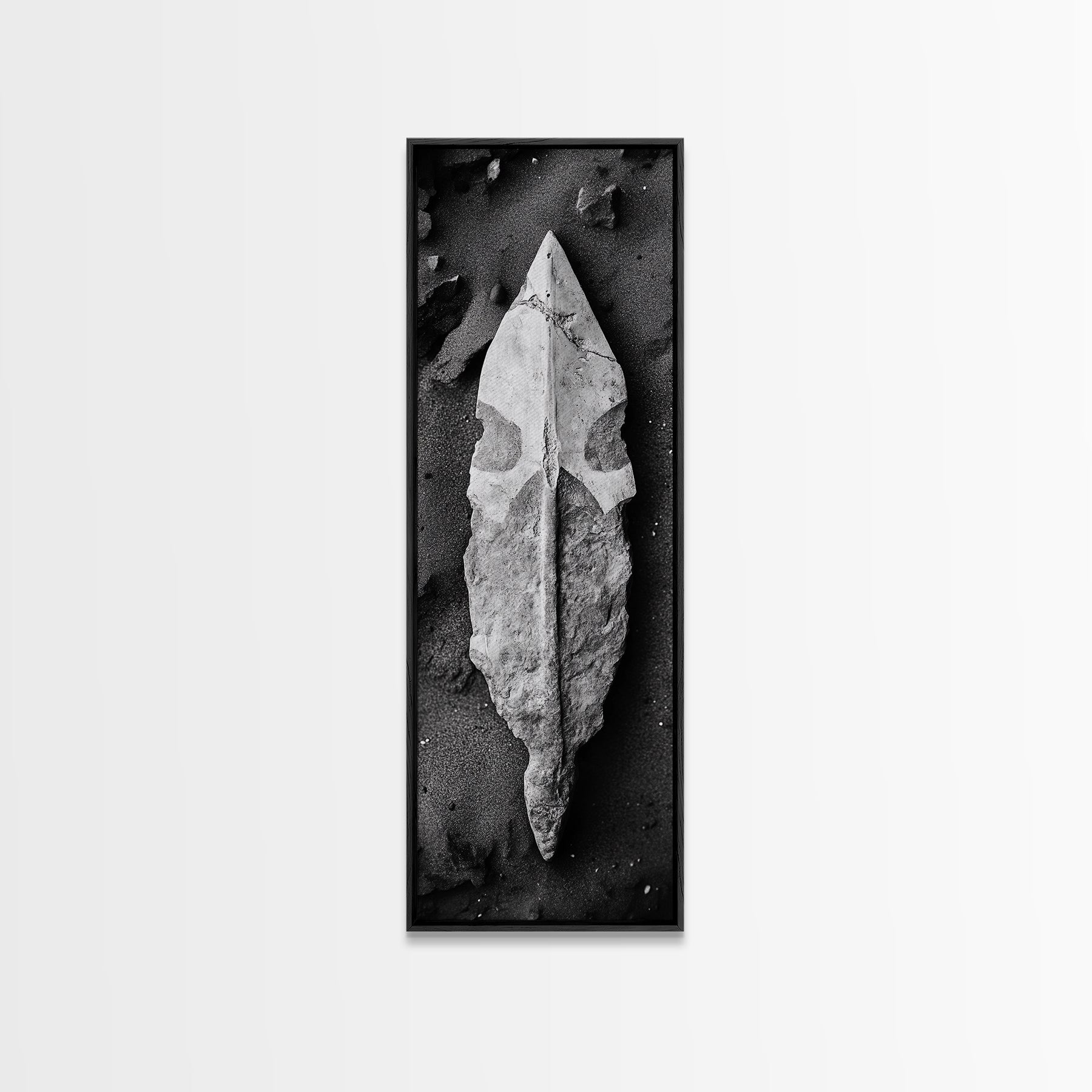 Ancient Arrowhead, Primitive Stone, Monochrome Artifact, Framed Canvas Print, Masculine Office Art, Boho Study Decor, Earthy Design