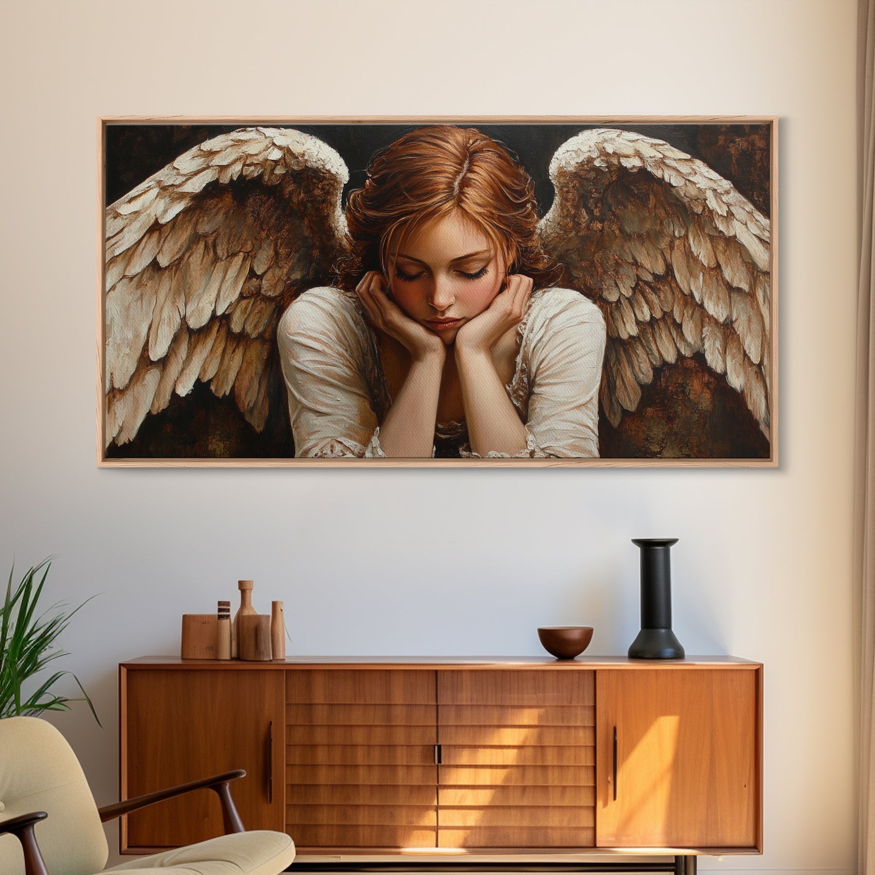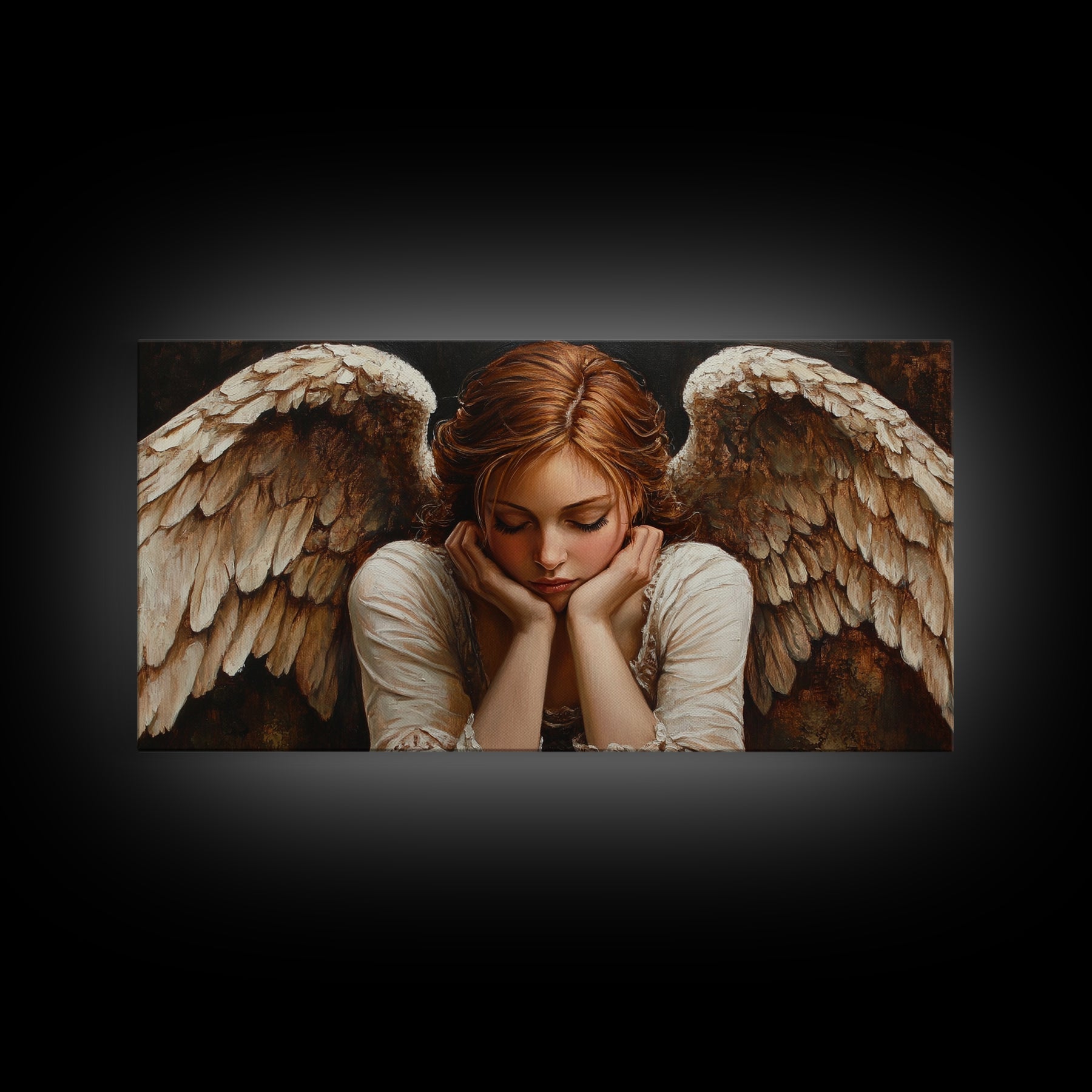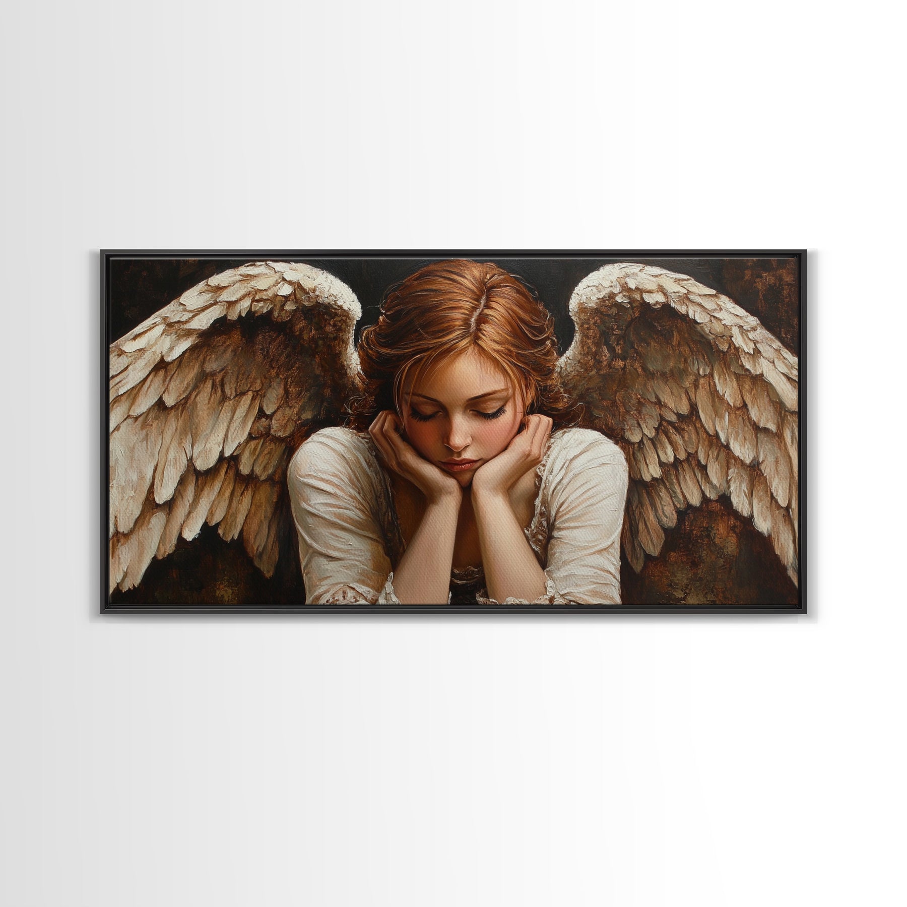 Angelic Beauty Portrait Framed Canvas Print Featuring Angel Art Prints and Moody Art Ideal Bedroom Wall Art or Guest Room Art