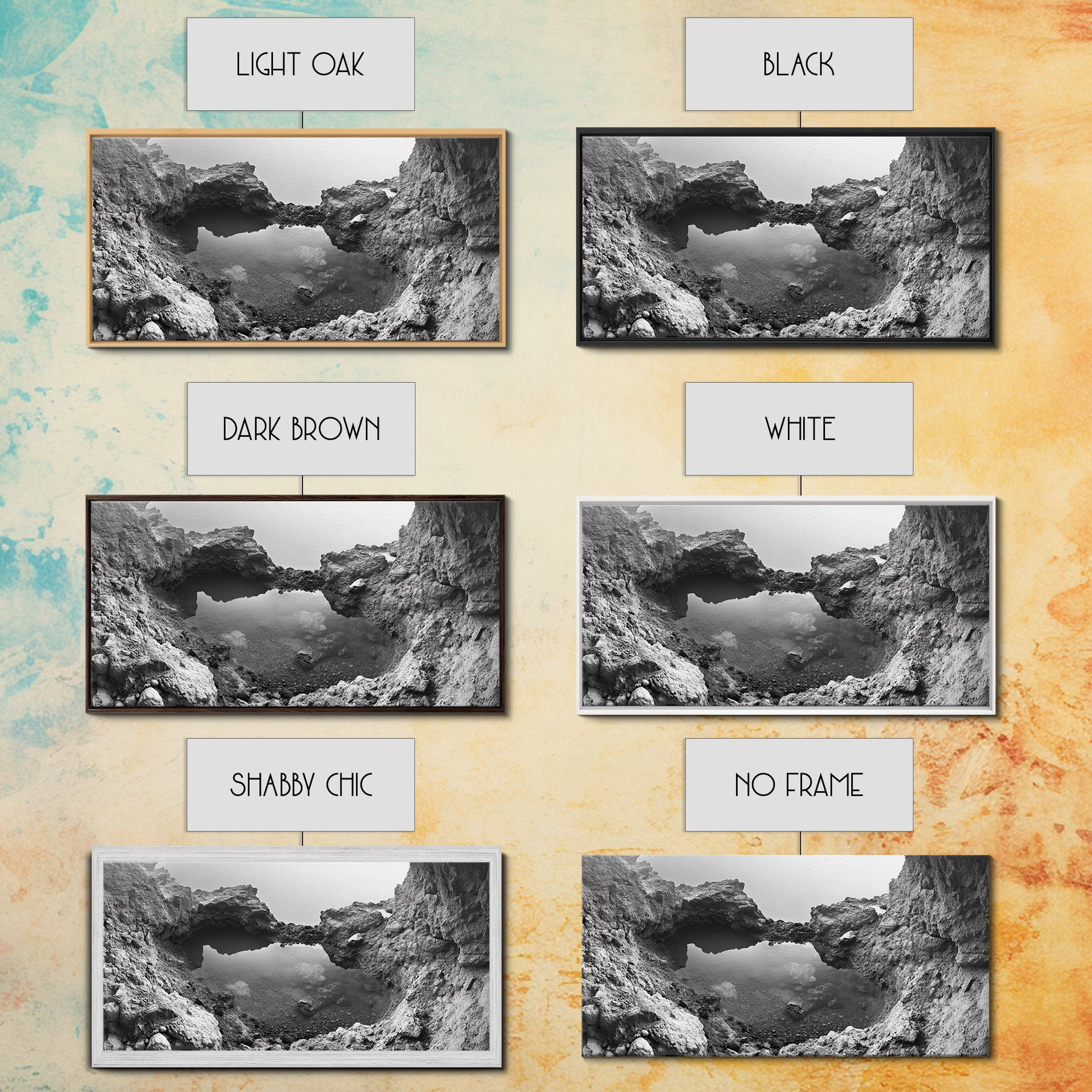 *Optional frames add a total of 1.5 inches to each dimension, for example a 10x20 canvas with a frame will be 11.5 by 21.5 inches total. All framed canvas are 1.5" total depth.