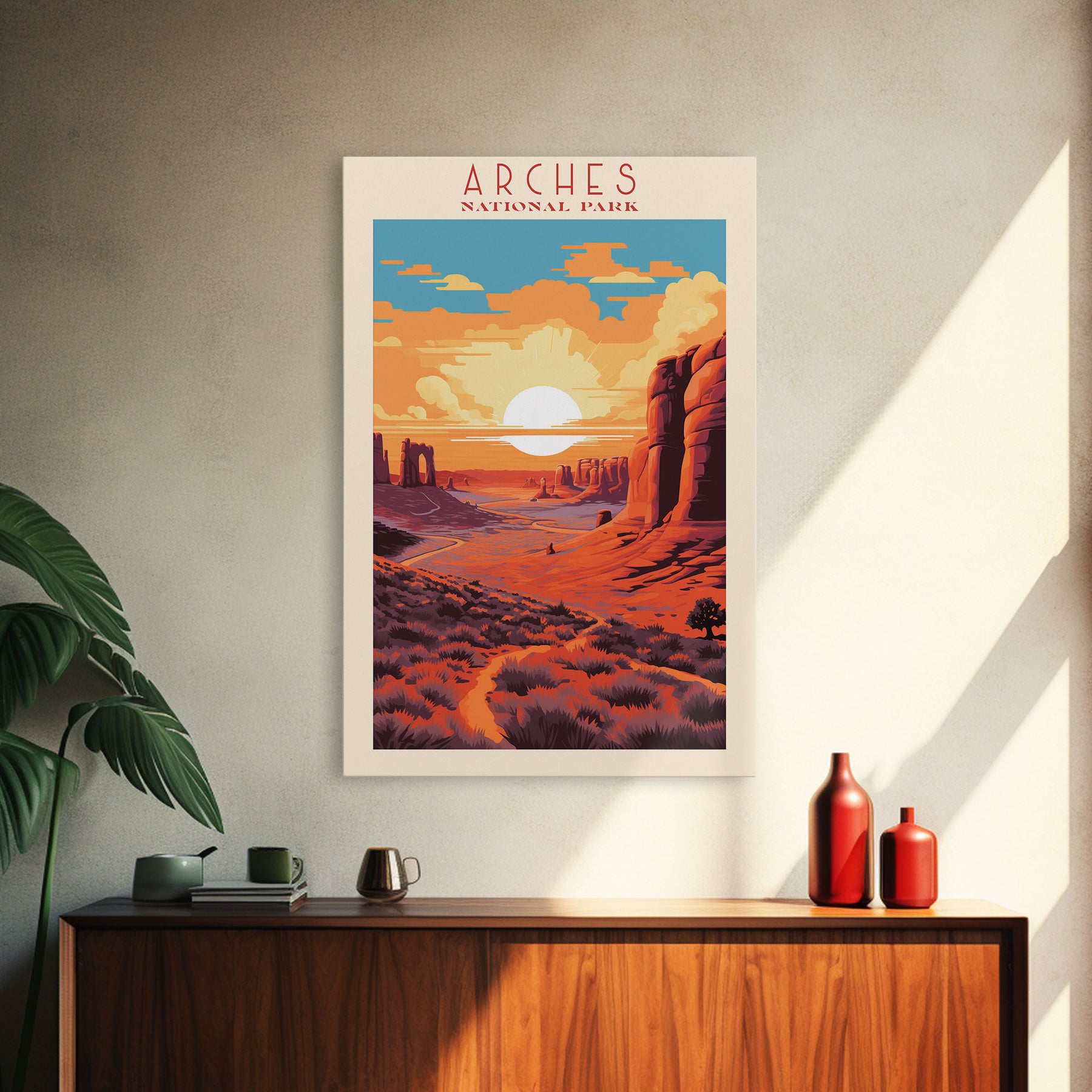 Arches National Park Utah Travel Art, National Park Print, Minimalist Travel Art, Midcentury Modern Style Landscape Painting