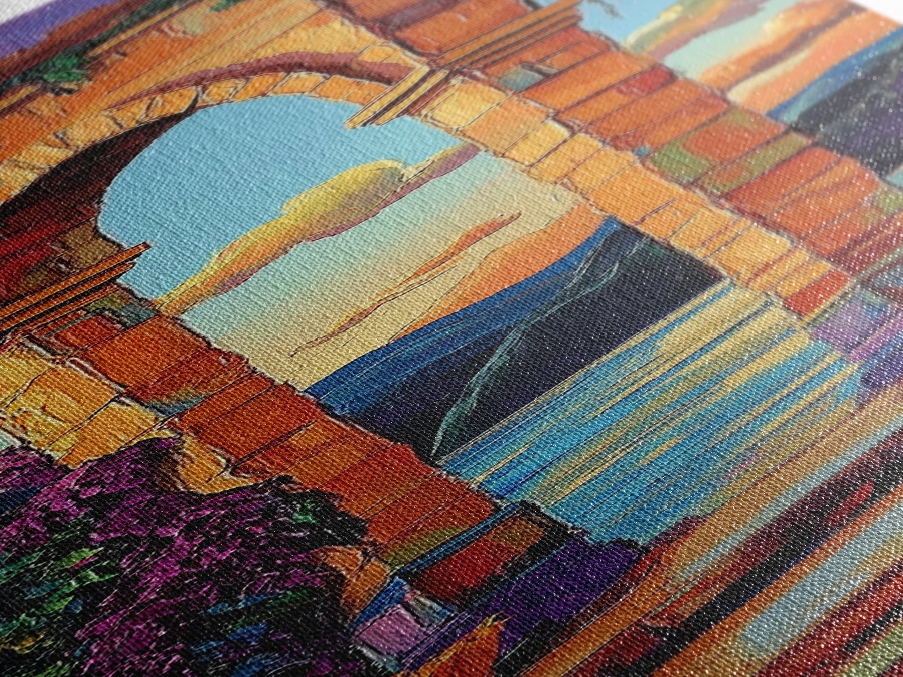 Most of our canvases are made in the USA, with the exception of canvases ordered with the light oak unstained frames, and any large canvases (24x48, 30x60, 16x48 and 20x60) ordered WITH a frame. These are temporarily made in and shipped from Europe, while we try to find a more consistent supplier in the USA.