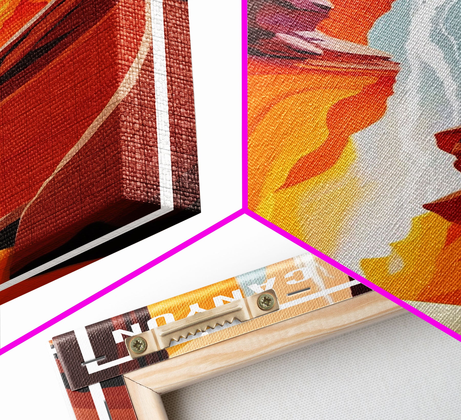 Hello and thank you for taking the time to view our modern high quality giclée artwork! We offer both posters and stretched canvas prints. Our posters are printed on Ultra Matte 60 lb / 230 GSM high quality photo paper, with a thickness of 10 mil. Our canvases are printed on museum grade 350 GSM canvas material with ECO friendly archival grade ink, then hand stretched and stapled over premium, FSC certified and shrink resistant frames. Designed and built to last a lifetime.