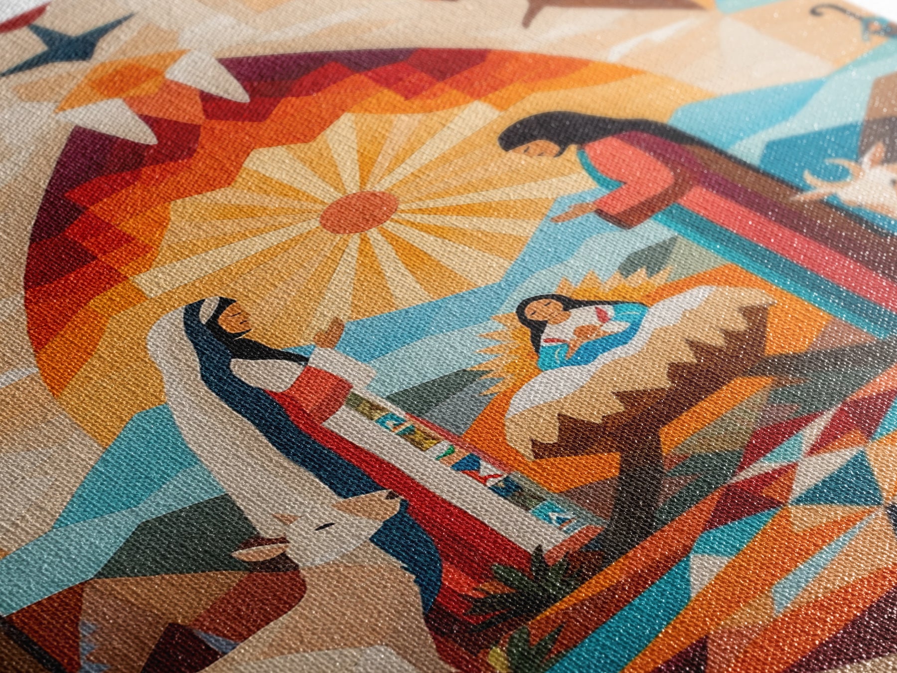 Most of our canvases are made in the USA, with the exception of canvases ordered with the light oak unstained frames, and any large canvases (24x48, 30x60, 16x48 and 20x60) ordered WITH a frame. These are temporarily made in and shipped from Europe, while we try to find a more consistent supplier in the USA.