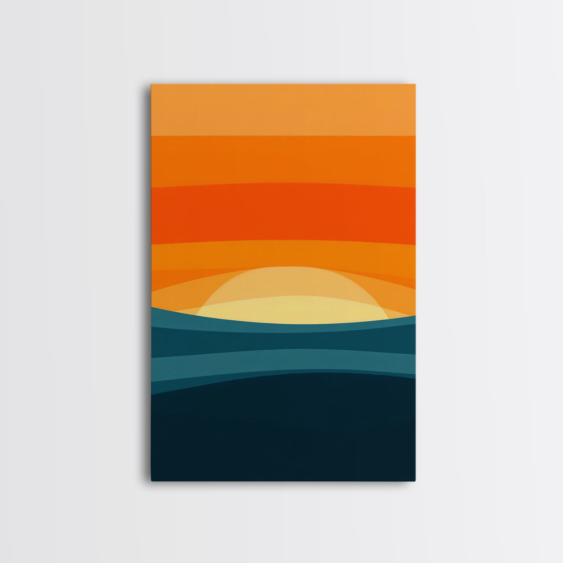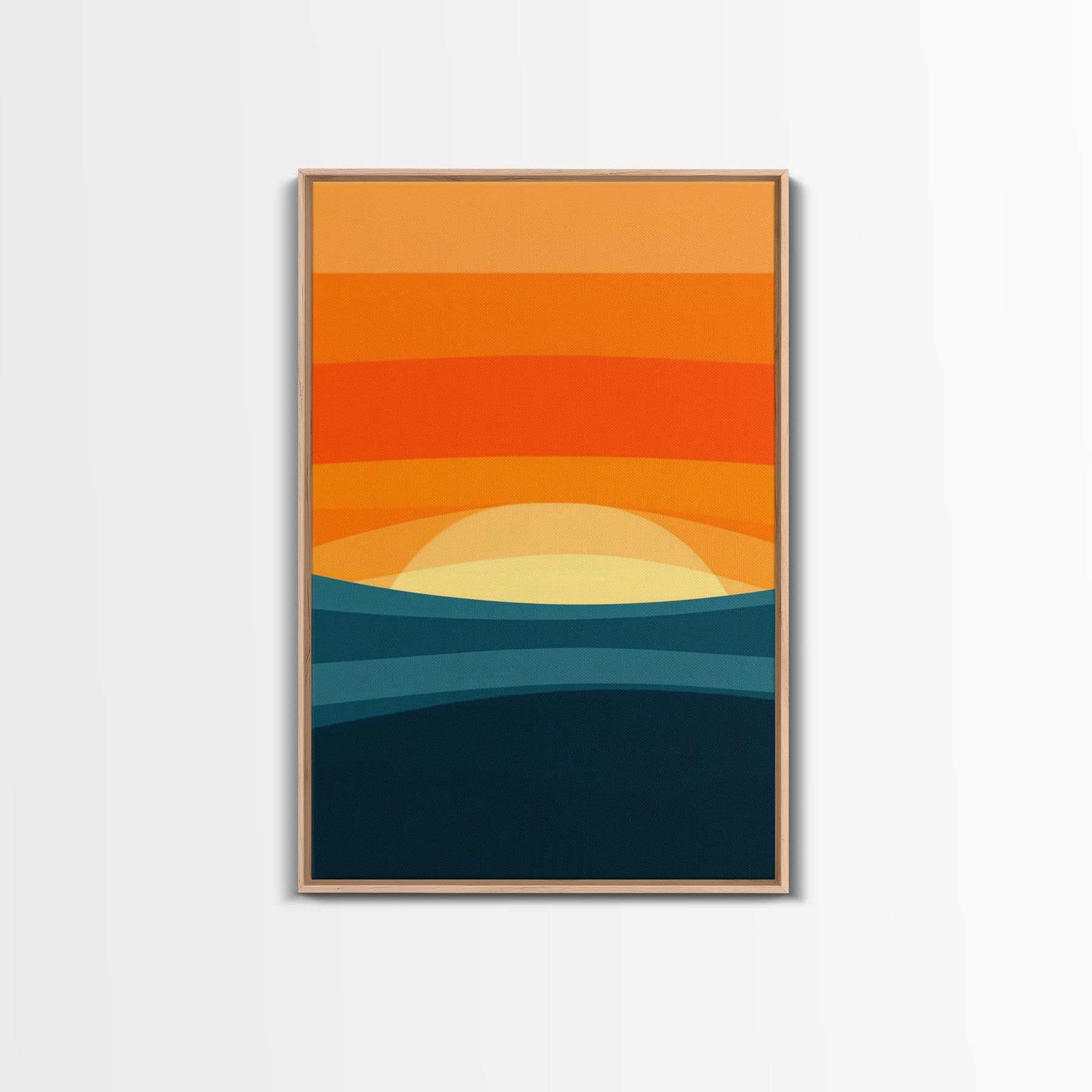 Art Deco Sunset Framed Canvas Print, MCM Style Wall Art Living Room Decor, Abstract Modern Art