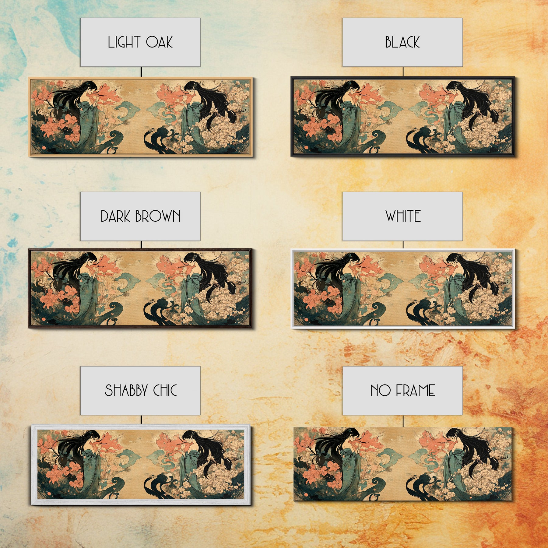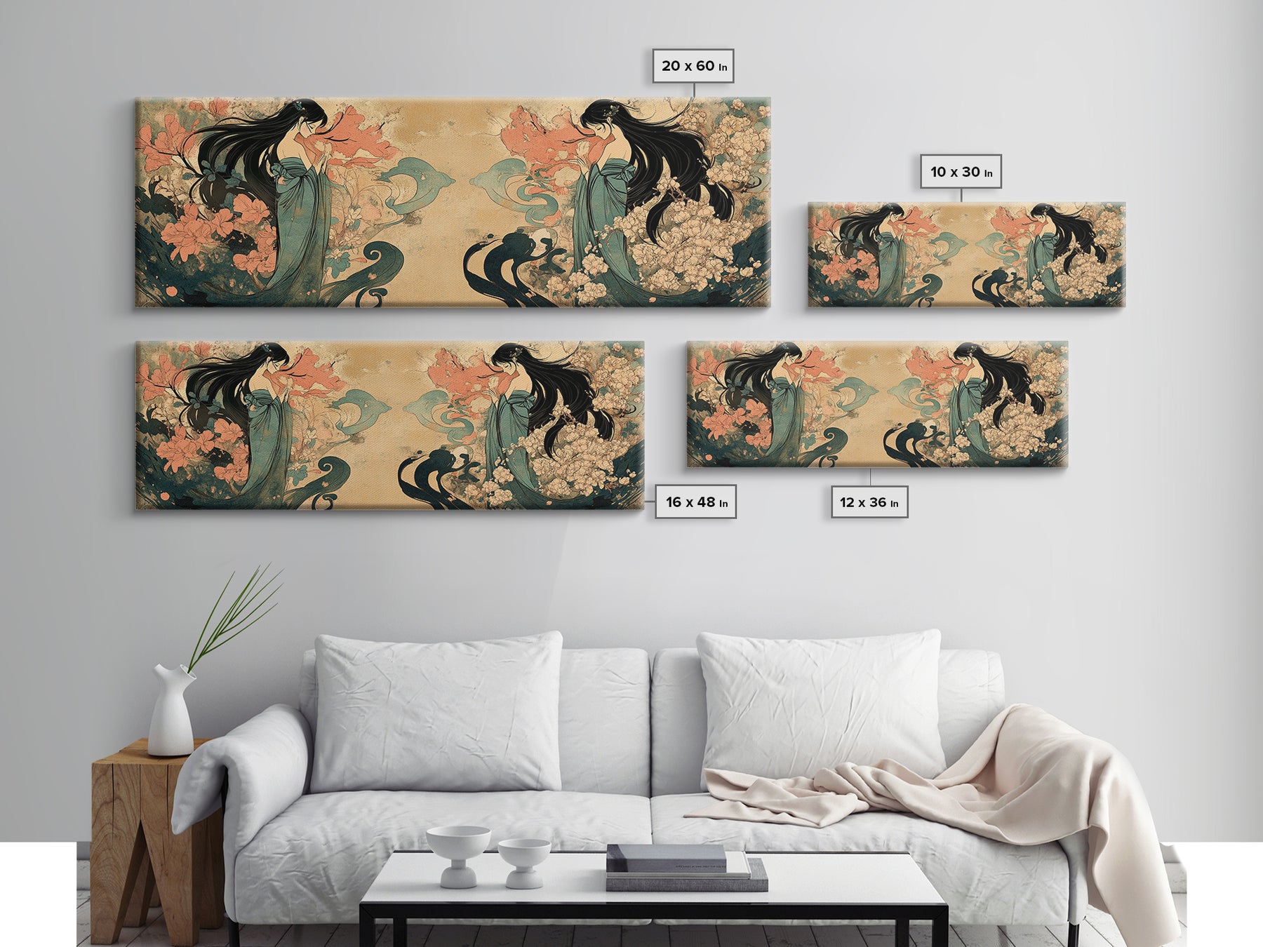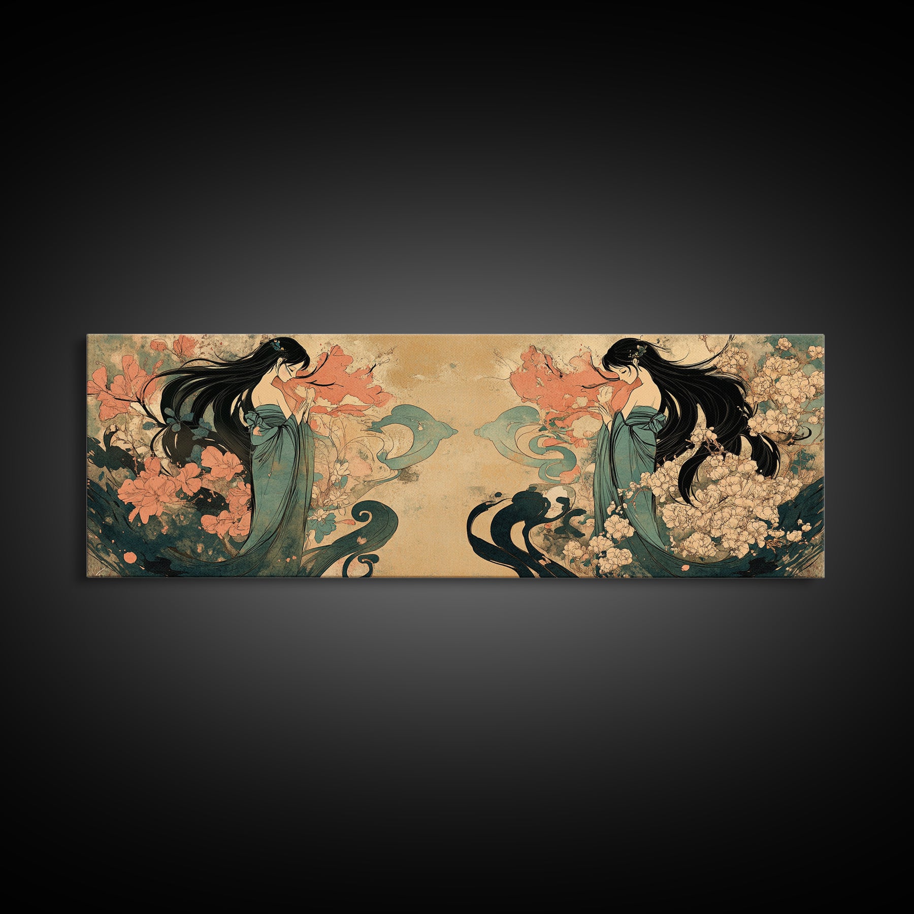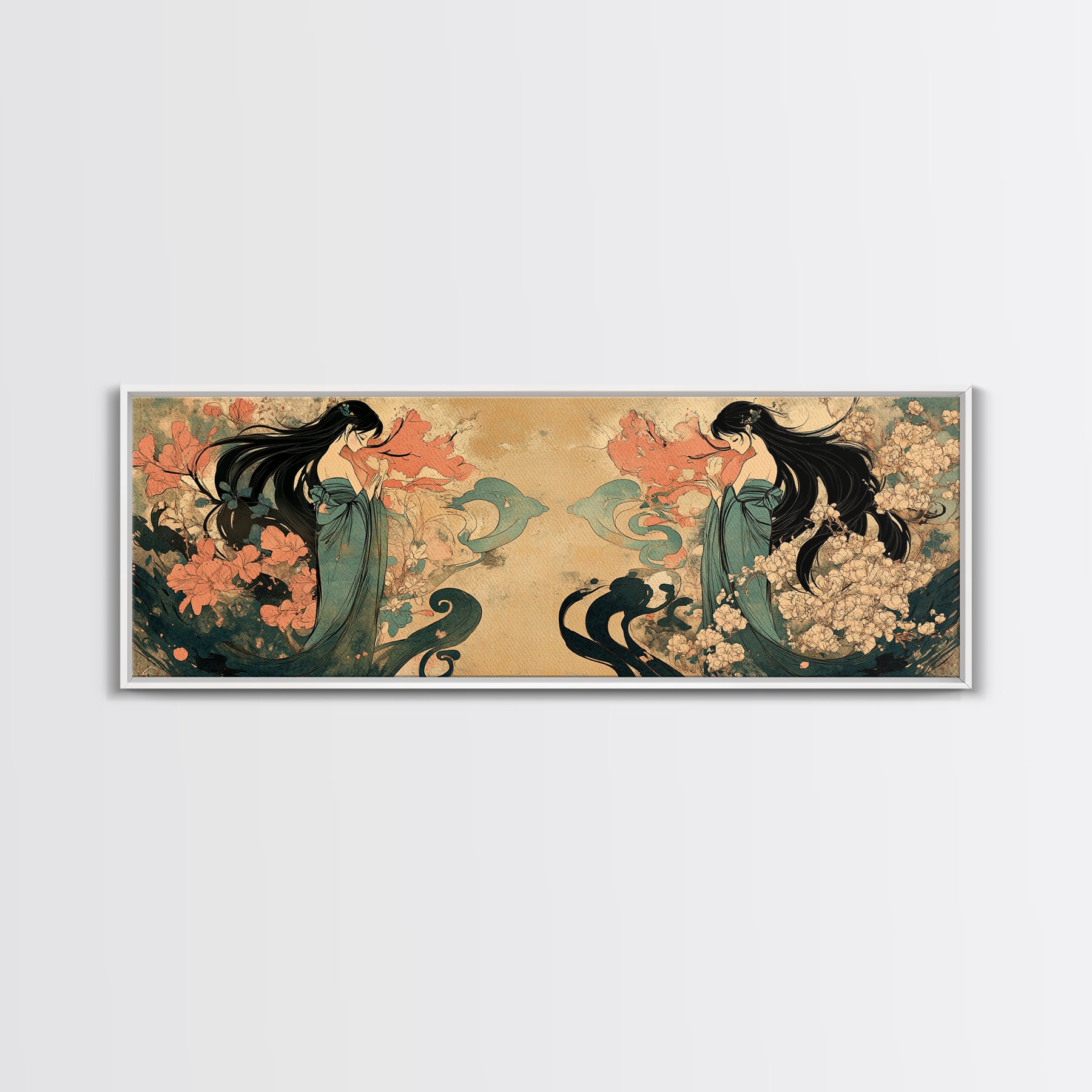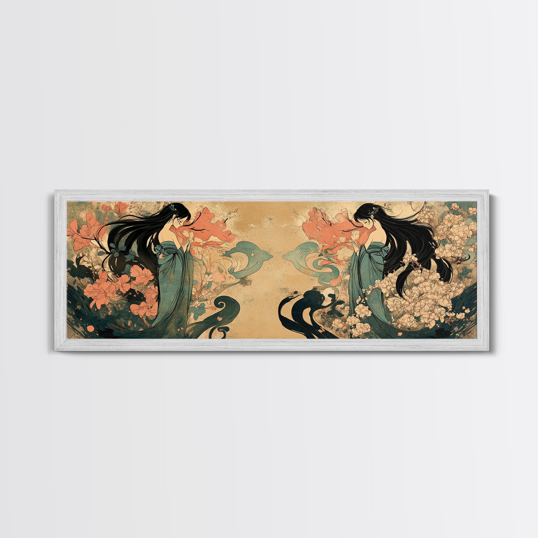 Art Nouveau Framed Canvas Print Goddess Art Print Feminine Boho Artwork Wildflower Wall Art Bedroom Artwork Guest Room Decor