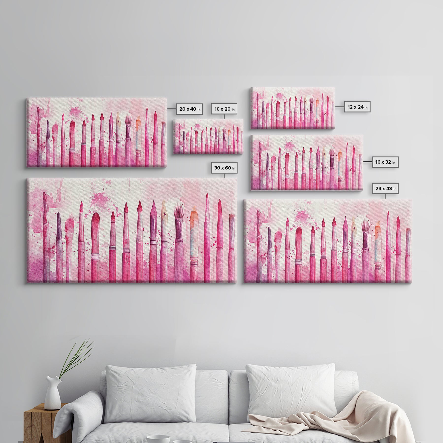 Artistic Brushes Canvas Print Pink Abstract Art Tools Studio Decor Light Pink Wall Art Boho Minimalist Wabi Sabi Artist Gift Idea
