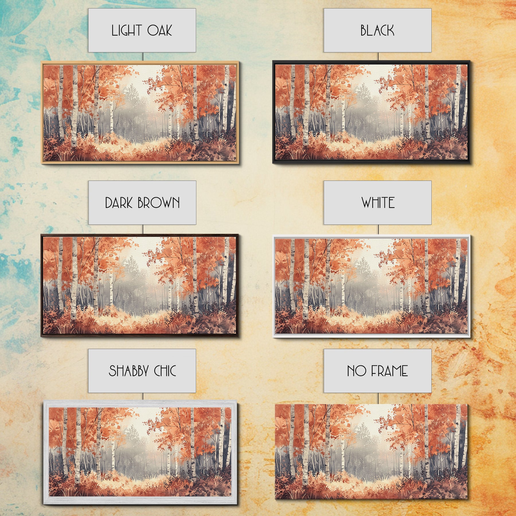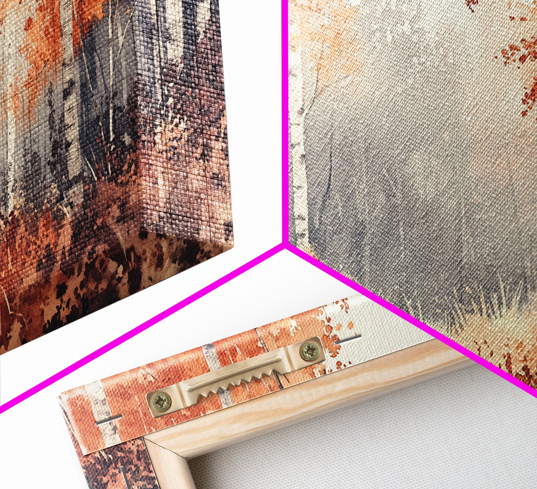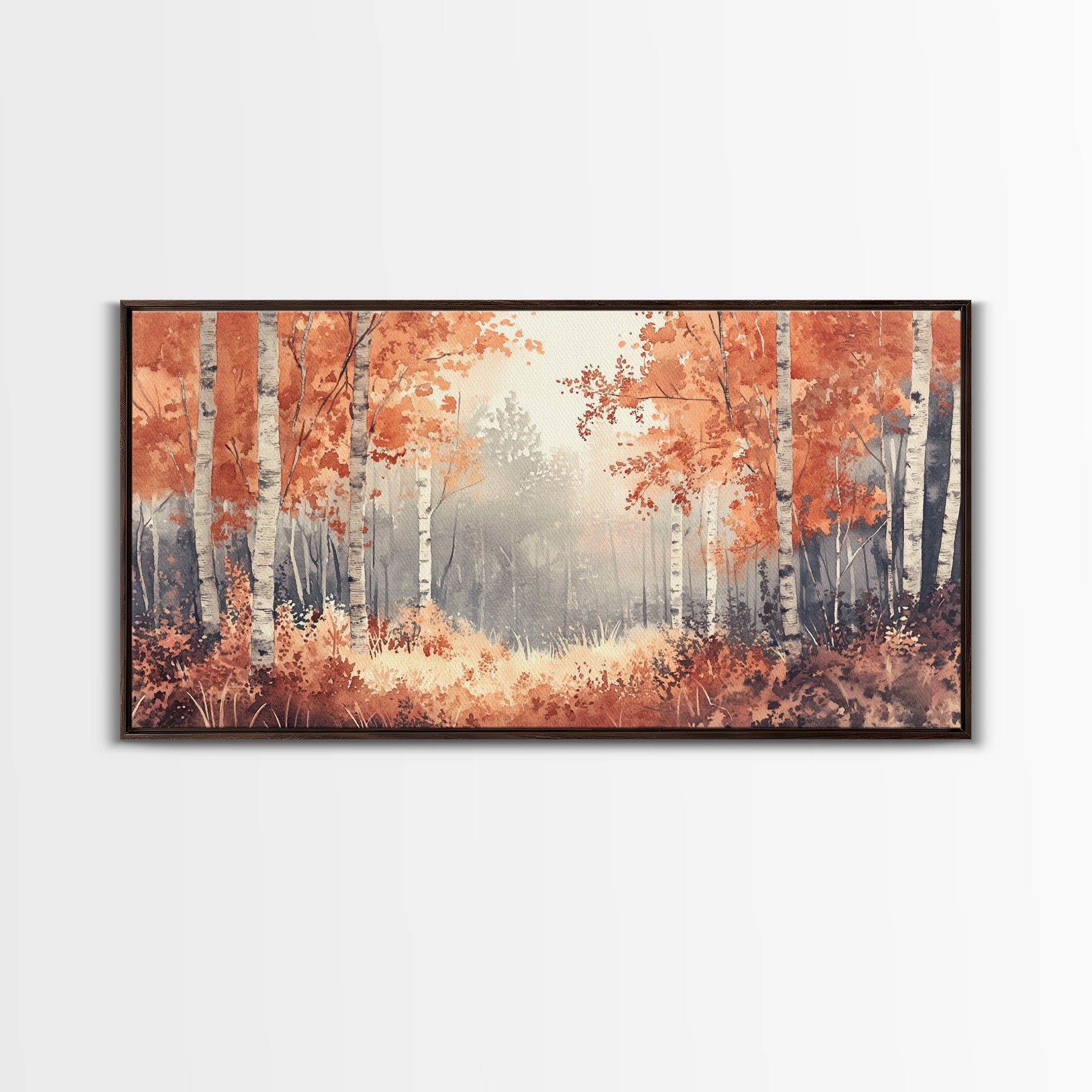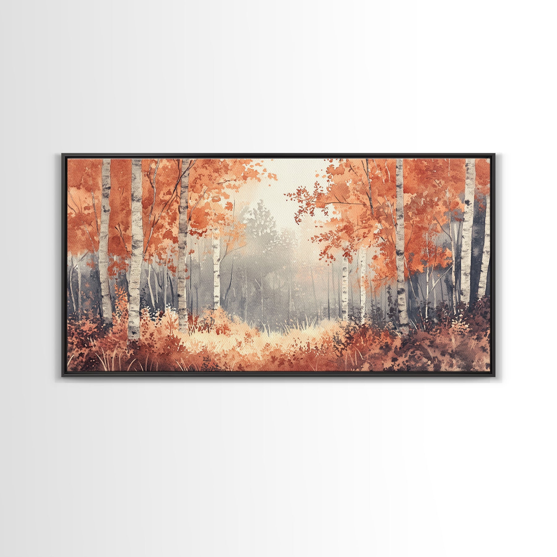 Aspen Landscape, Autumn Forest Print, Birch Tree Painting Framed Canvas Print, Ready To Hang Wall Art, Modern Abstract Nature Wall Art