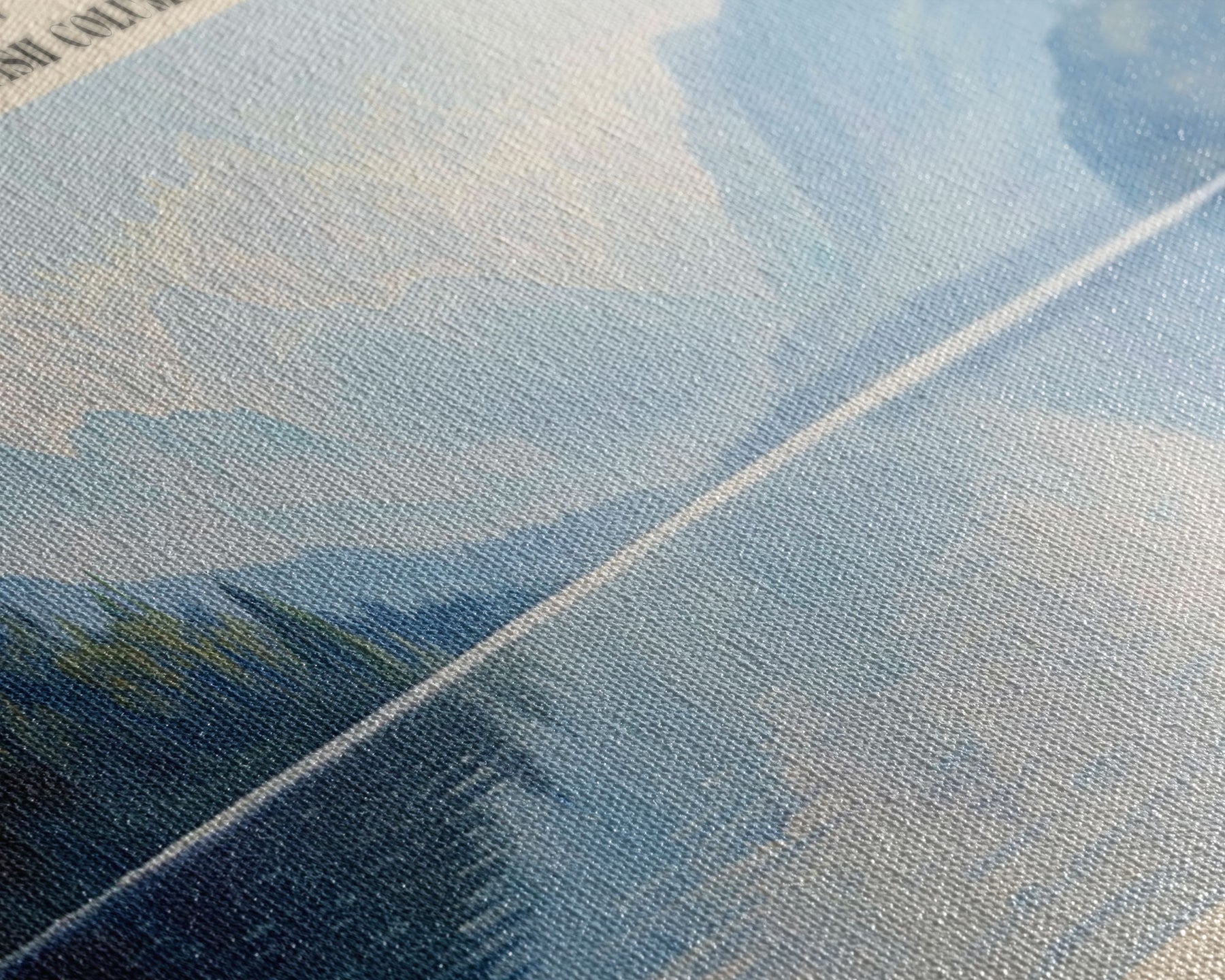 Most of our canvases are made in the USA, with the exception of canvases ordered with the light oak unstained frames, and any large canvases (24x48, 30x60, 16x48 and 20x60) ordered WITH a frame. These are temporarily made in and shipped from Europe, while we try to find a more consistent supplier in the USA.