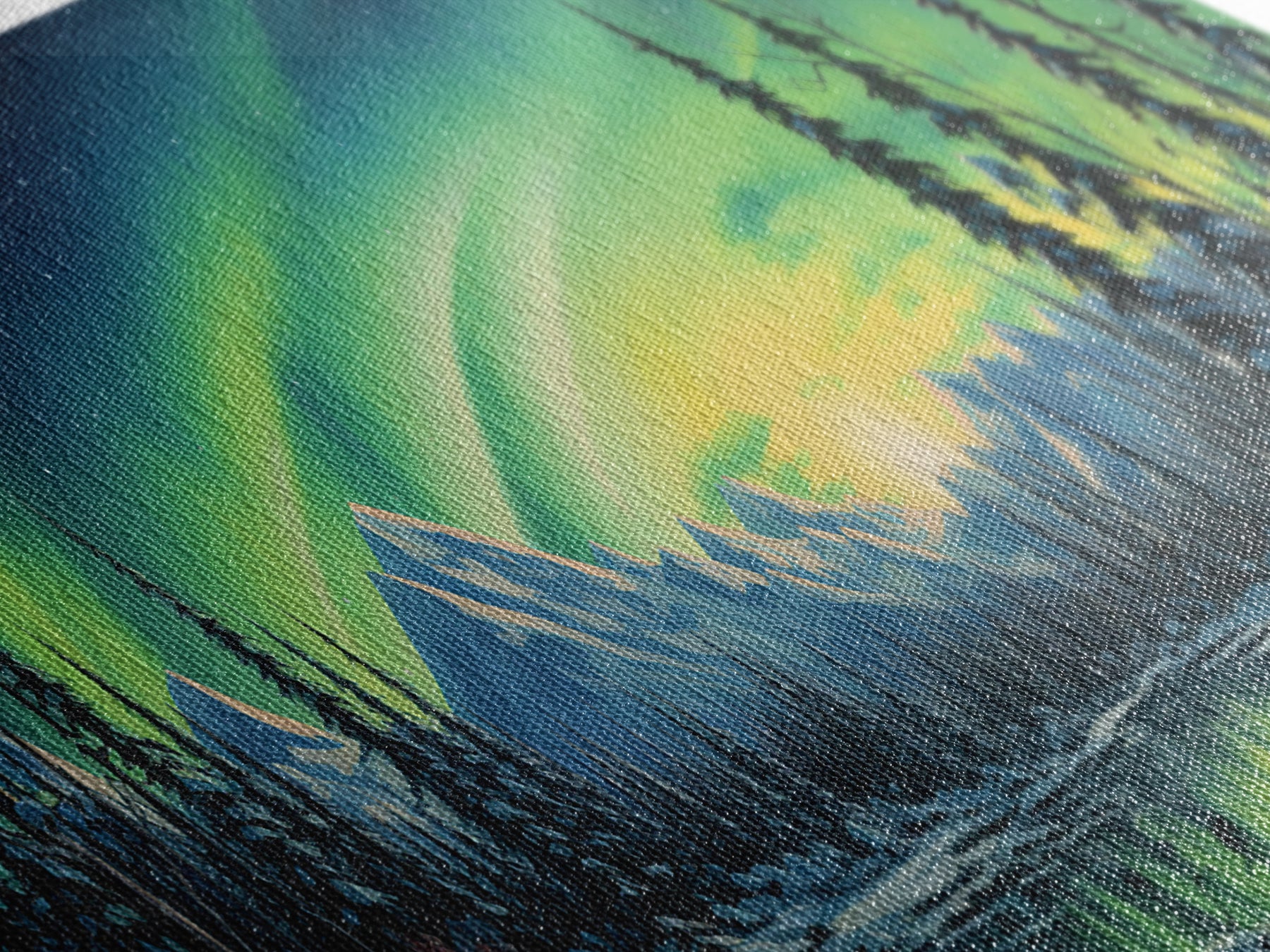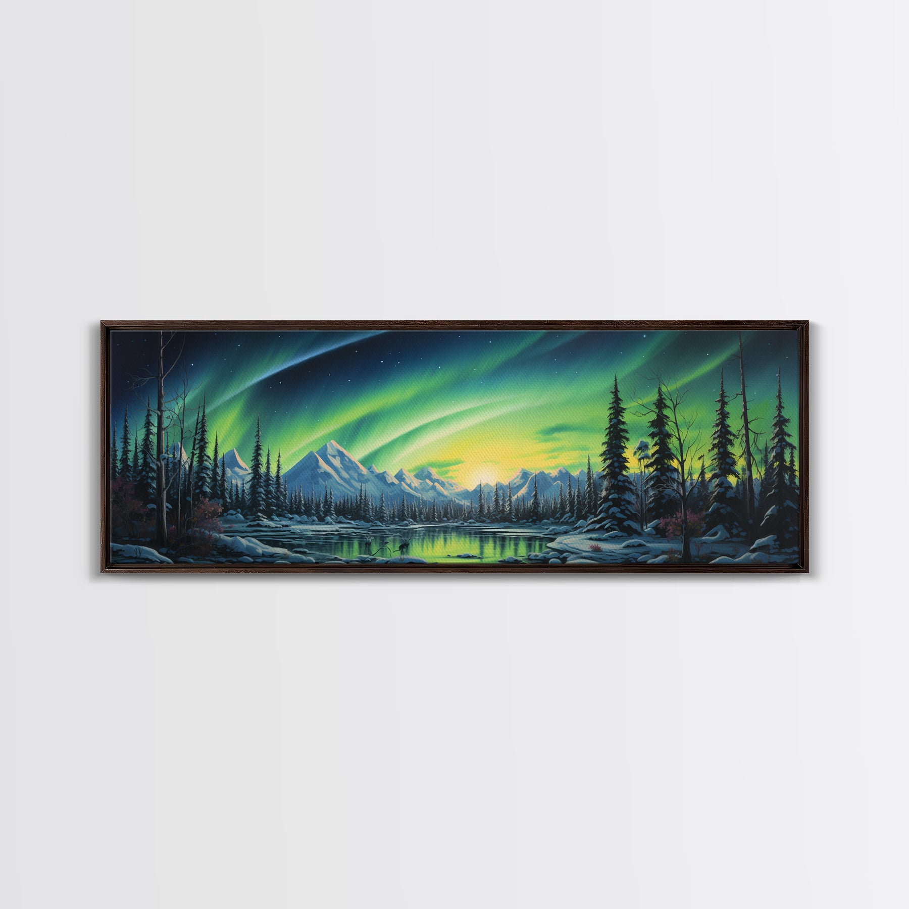Aurora Borealis, Framed Canvas Print, Beautiful Alaskan Winter Landscape Painting, Moody Art, Unique Wall Art