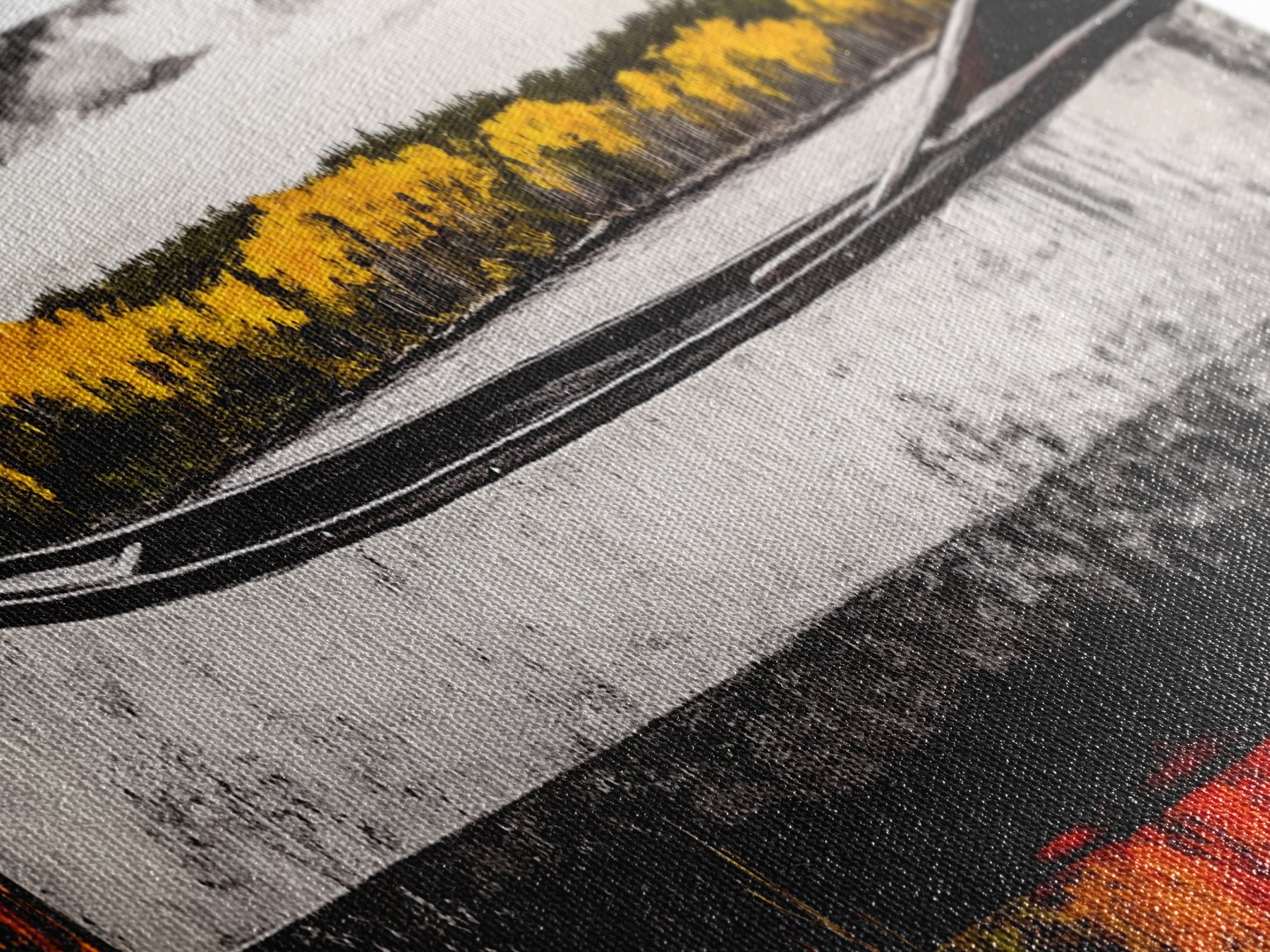Most of our canvases are made in the USA, with the exception of canvases ordered with the light oak unstained frames, and any large canvases (24x48, 30x60, 16x48 and 20x60) ordered WITH a frame. These are temporarily made in and shipped from Europe, while we try to find a more consistent supplier in the USA.