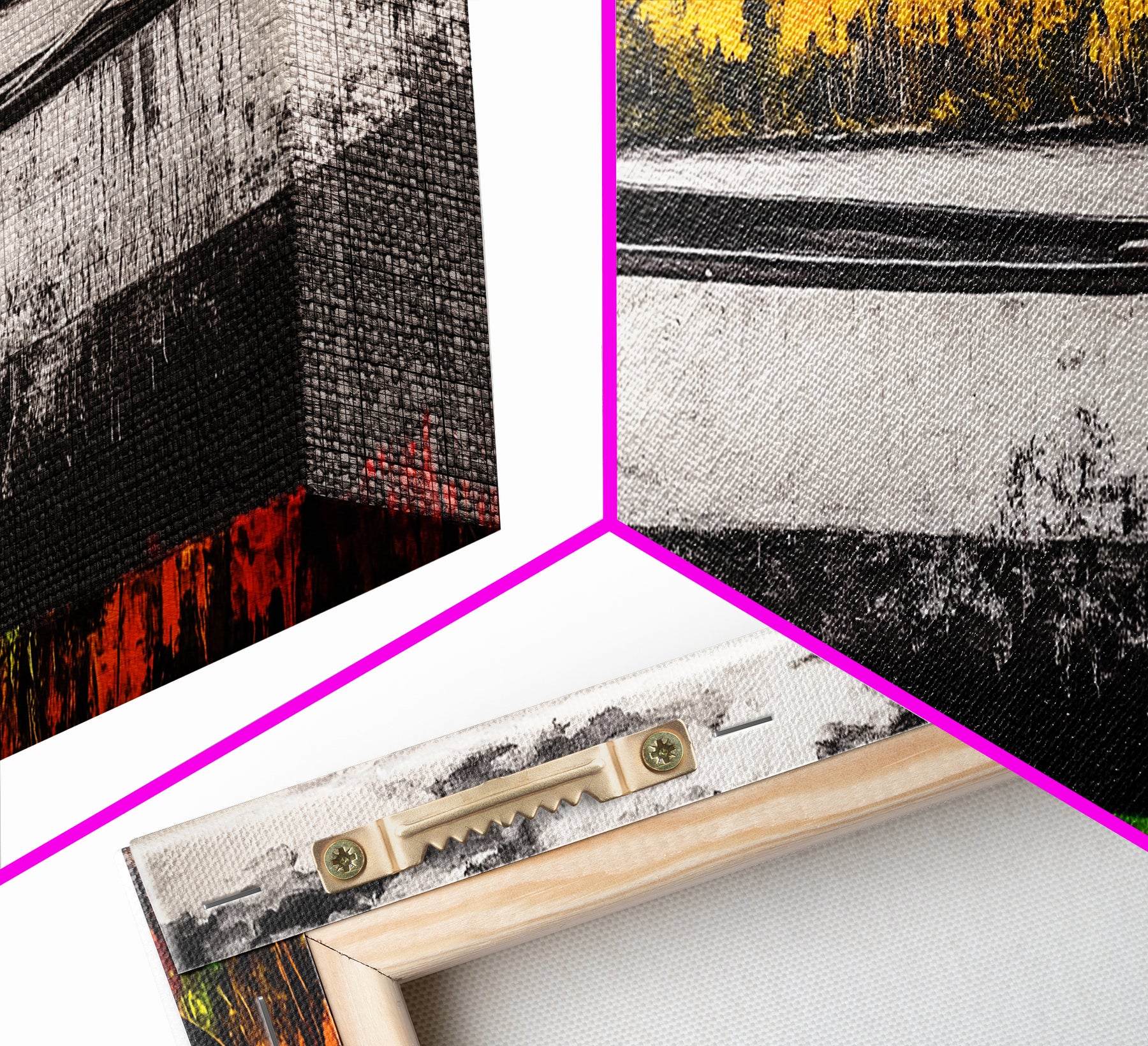 *SHIPPING: Every canvas is carefully wrapped in bubble wrap and foam corner protectors, and shipped fully assembled and ready to hang with sawtooth hangers in a flat box. All you need is a hammer!