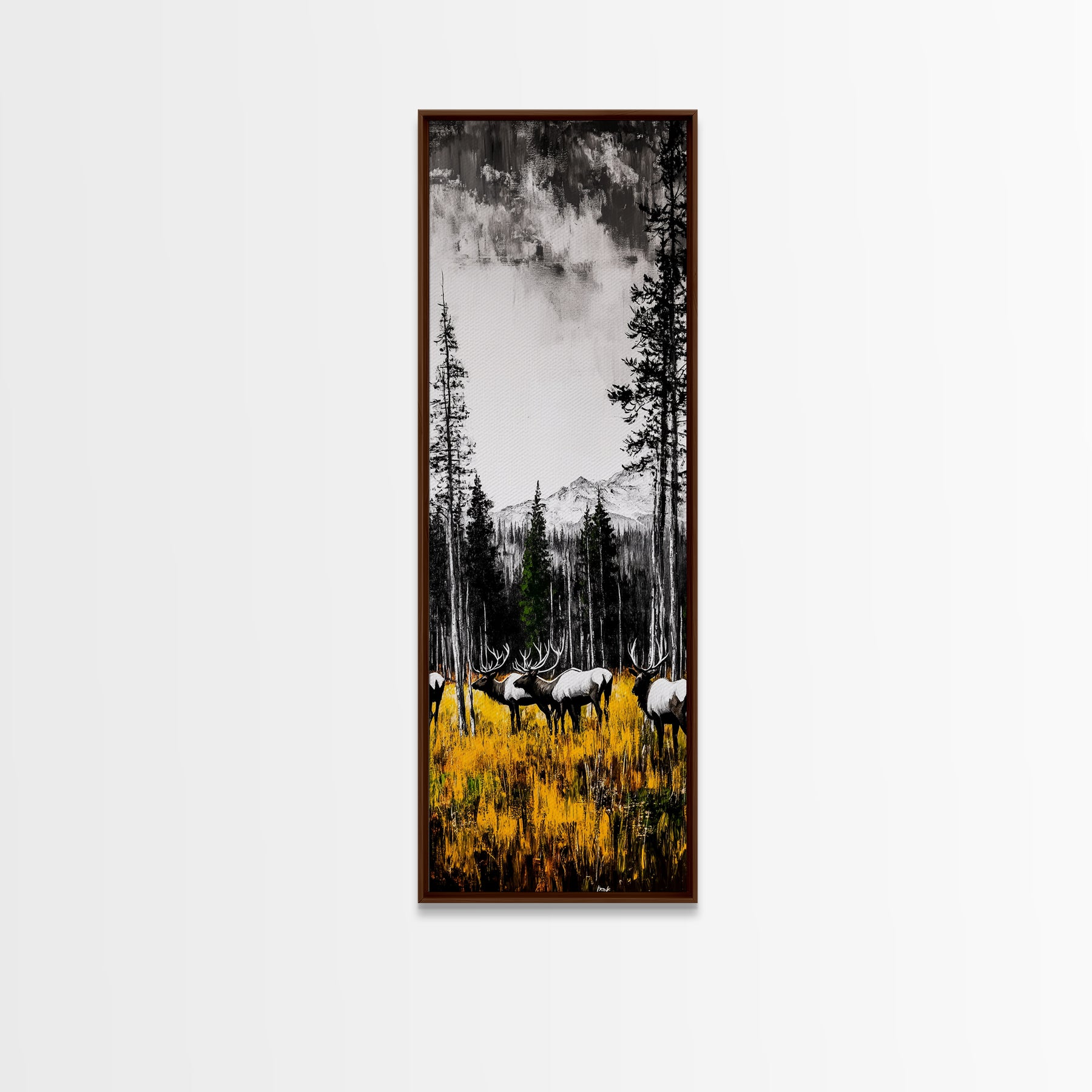 Autumn Elk, Wildlife Painting, Rustic Lodge Decor, Mountain Scene Art, Framed Canvas Print, Cabin Wall Art, Fall Art, Western Decor