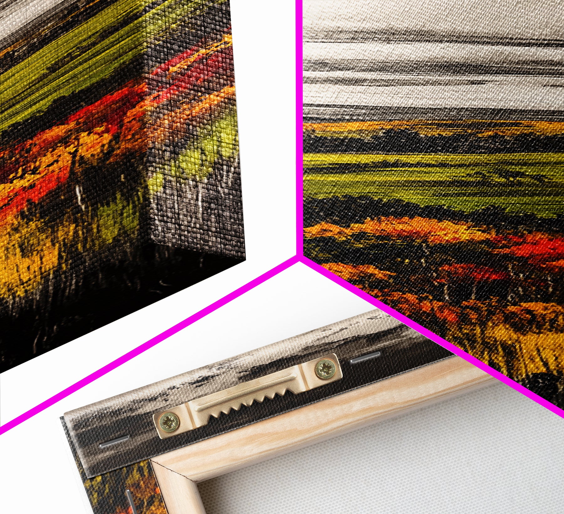 Hello and thank you for taking the time to view our modern high quality giclée artwork! We offer both posters and stretched canvas prints. Our posters are printed on Ultra Matte 60 lb / 230 GSM high quality photo paper, with a thickness of 10 mil. Our canvases are printed on museum grade 350 GSM canvas material with ECO friendly archival grade ink, then hand stretched and stapled over premium, FSC certified and shrink resistant frames. Designed and built to last a lifetime.