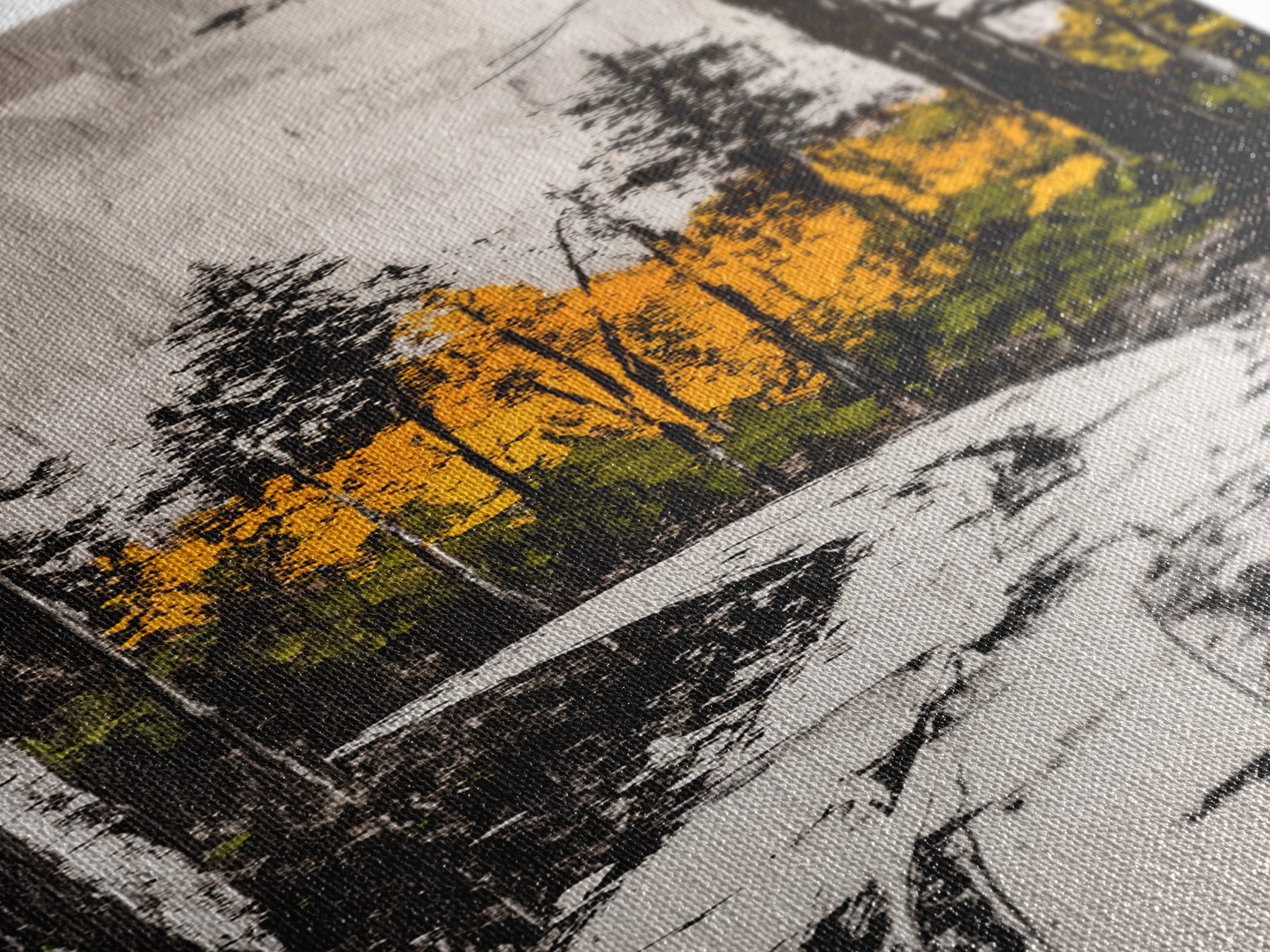 Most of our canvases are made in the USA, with the exception of canvases ordered with the light oak unstained frames, and any large canvases (24x48, 30x60, 16x48 and 20x60) ordered WITH a frame. These are temporarily made in and shipped from Europe, while we try to find a more consistent supplier in the USA.