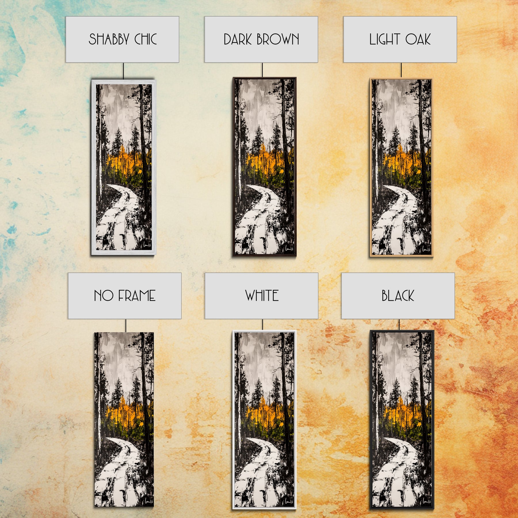 *Optional frames add a total of 1.5 inches to each dimension, for example a 10x20 canvas with a frame will be 11.5 by 21.5 inches total. All framed canvas are 1.5" total depth.